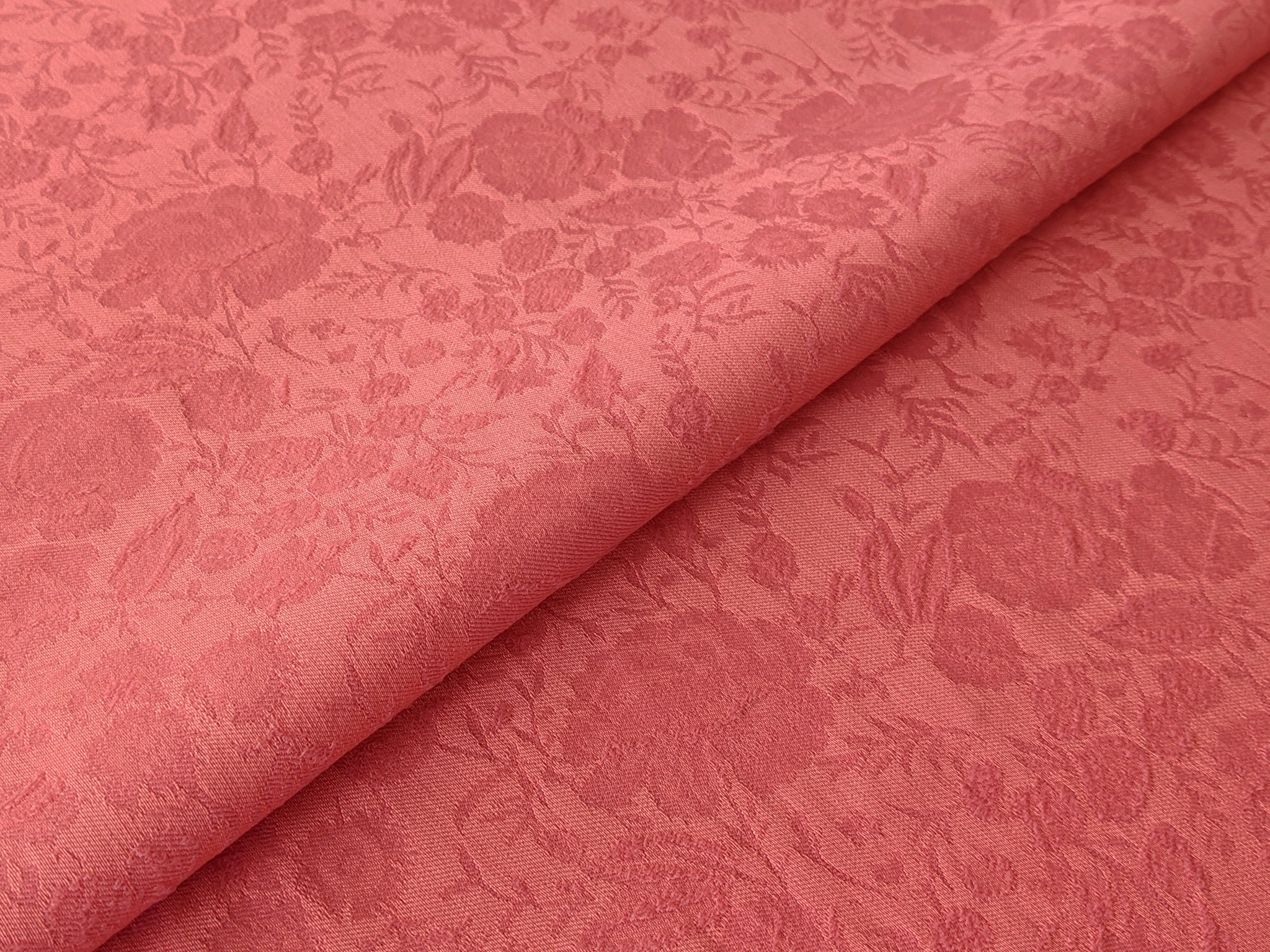Тканина виконана в квітковому жаккардовому дизайні, який формує на полотні рельєфний візерунок.