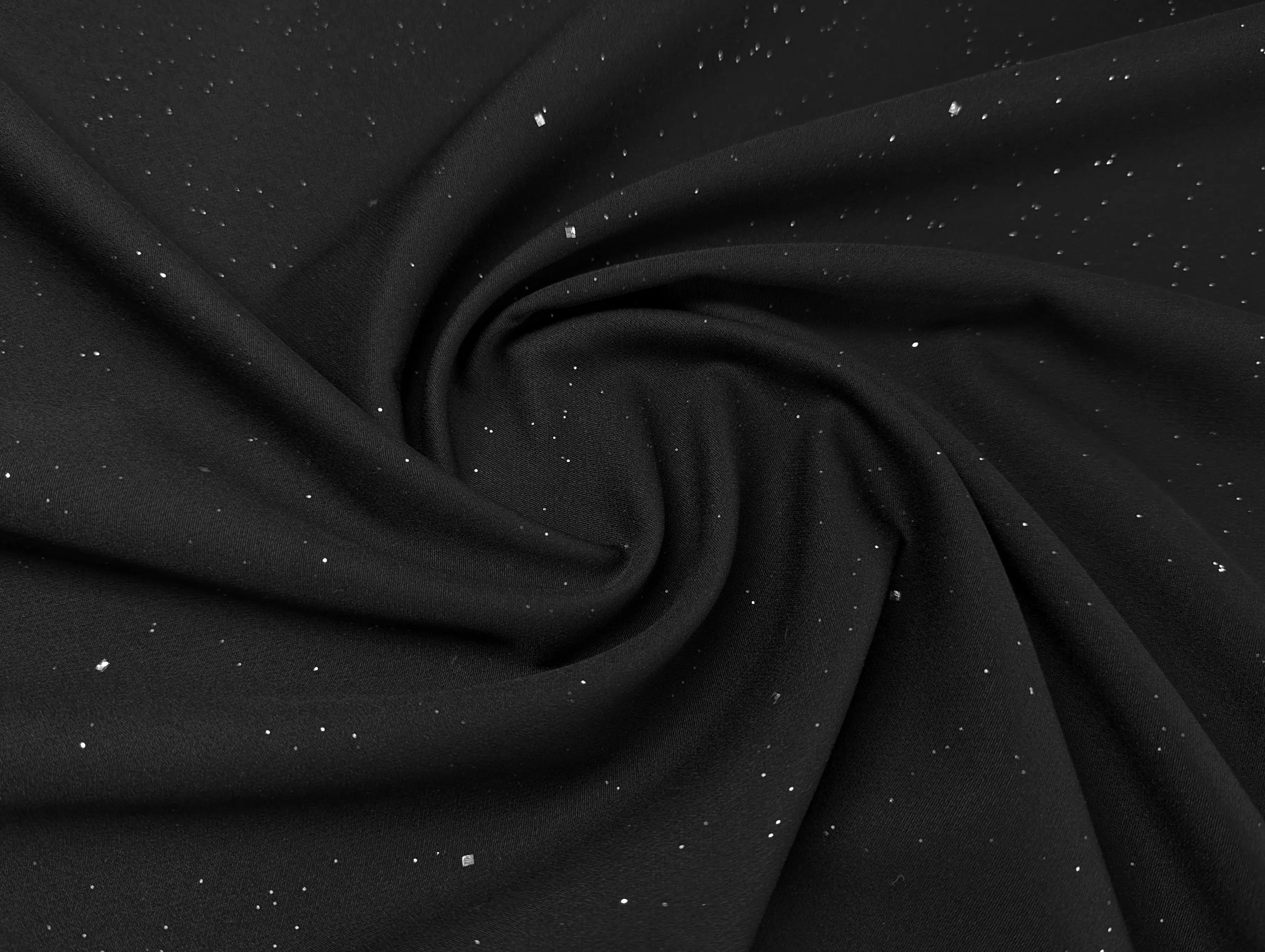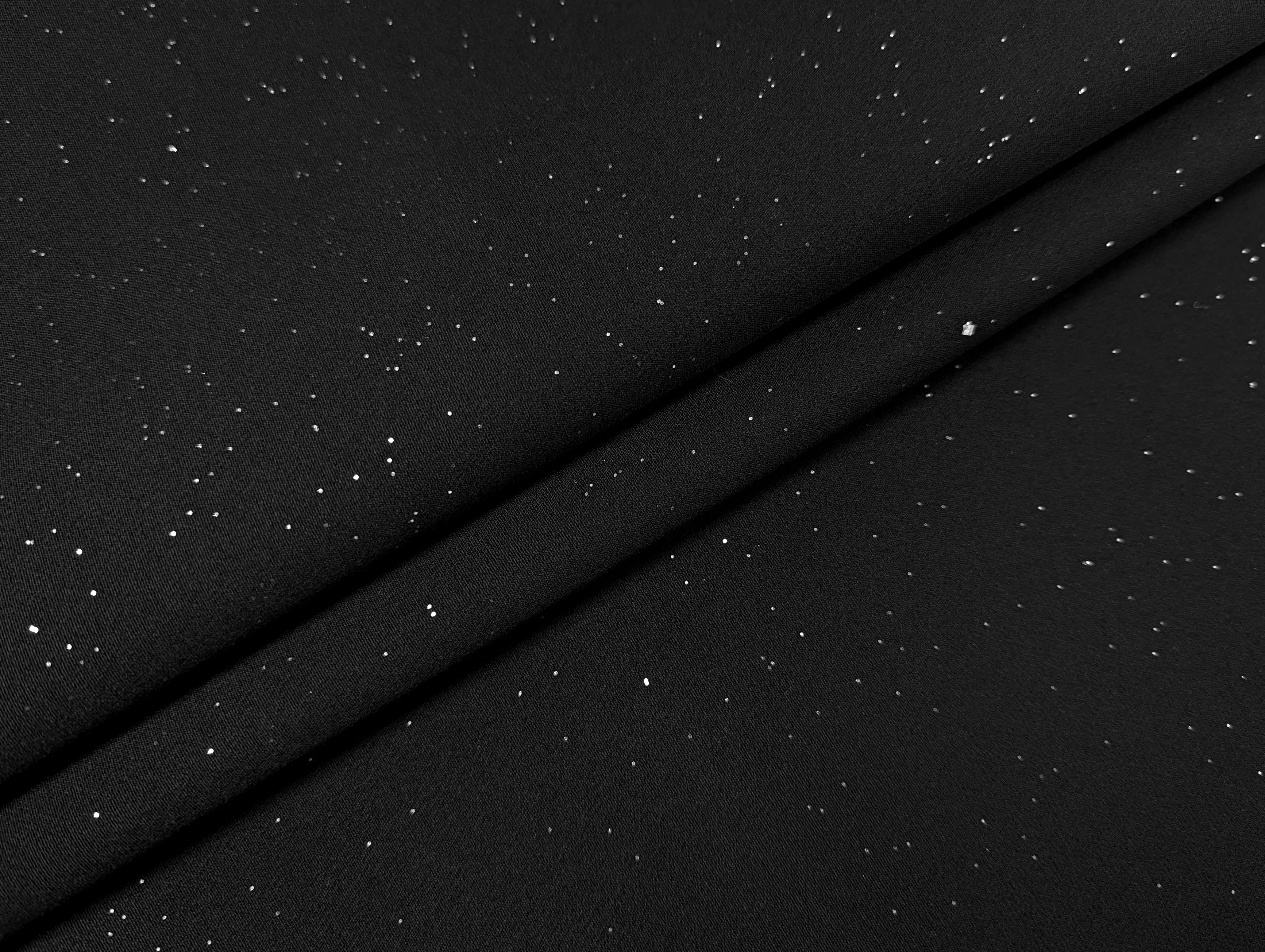 Додатково тканина прикрашена дрібним глітером у вигляді зоряного неба, що надає їй витонченого мерехтіння. Блискітки надійно закріплені в матеріалі й не осипаються, що робить її не лише ефектною, а й практичною у використанні.