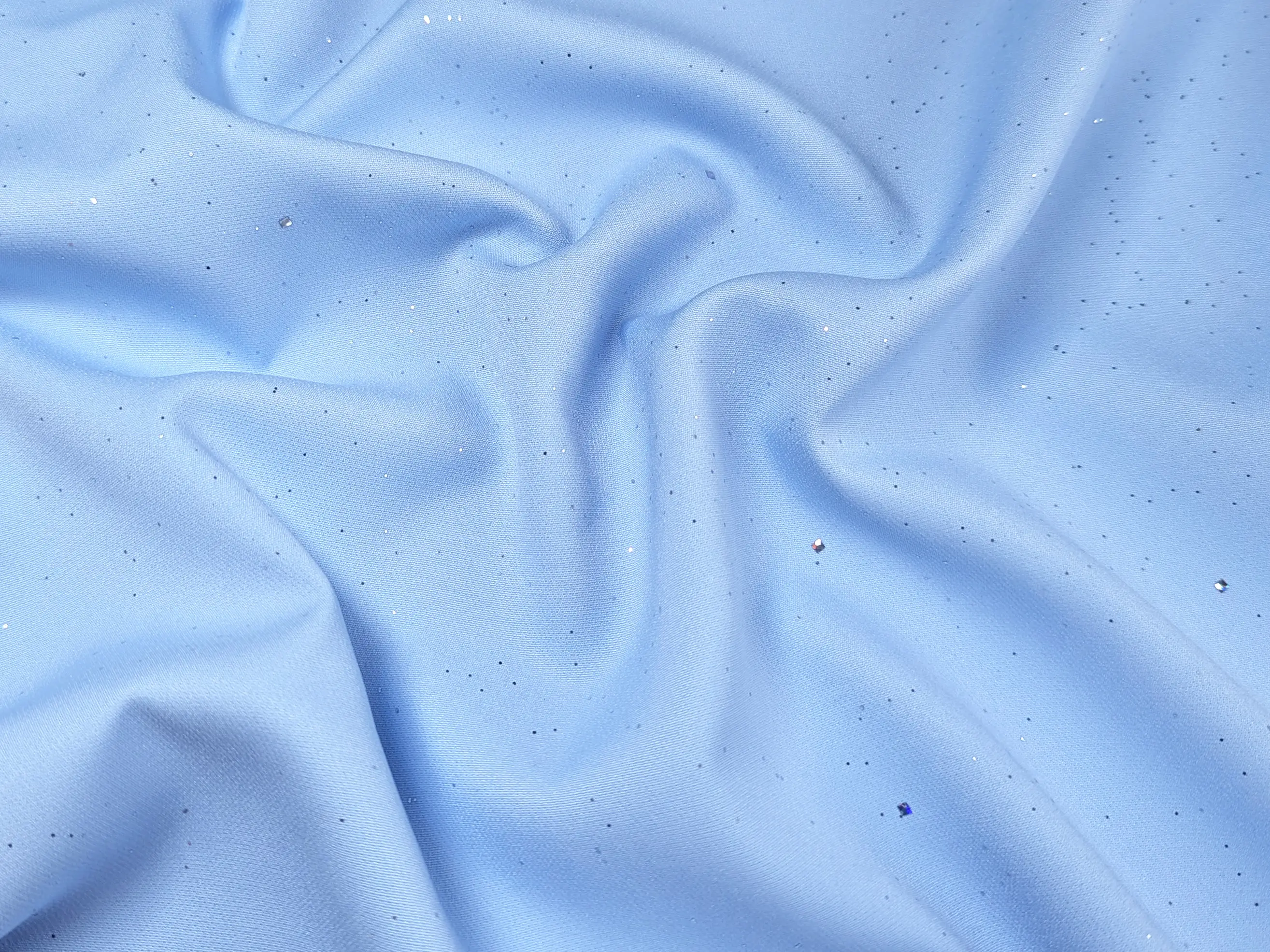 Додатково тканина прикрашена дрібним глітером у вигляді зоряного неба, що надає їй витонченого мерехтіння. Блискітки надійно закріплені в матеріалі й не осипаються, що робить її не лише ефектною, а й практичною у використанні.