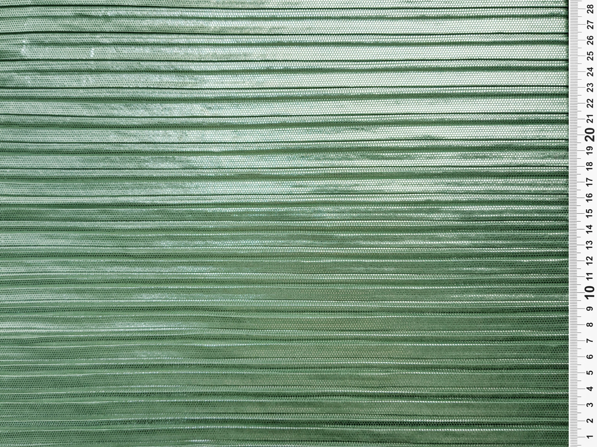 Диско плісе - це трикотажне полотно з блиском, виконане у вигляді складок поперек кромки. Розмір складки приблизно 7 мм та глубина 2 мм. Полотно має стрейч поперек рулону, що потрібно врахувати під час шиття. Тканина пліссе виглядає дуже ефектно, вишукано, жіночно, повітряно і має струмливий ефект. Вертикальні складки тканини витягають фігуру, підкреслюючи ваші переваги.
