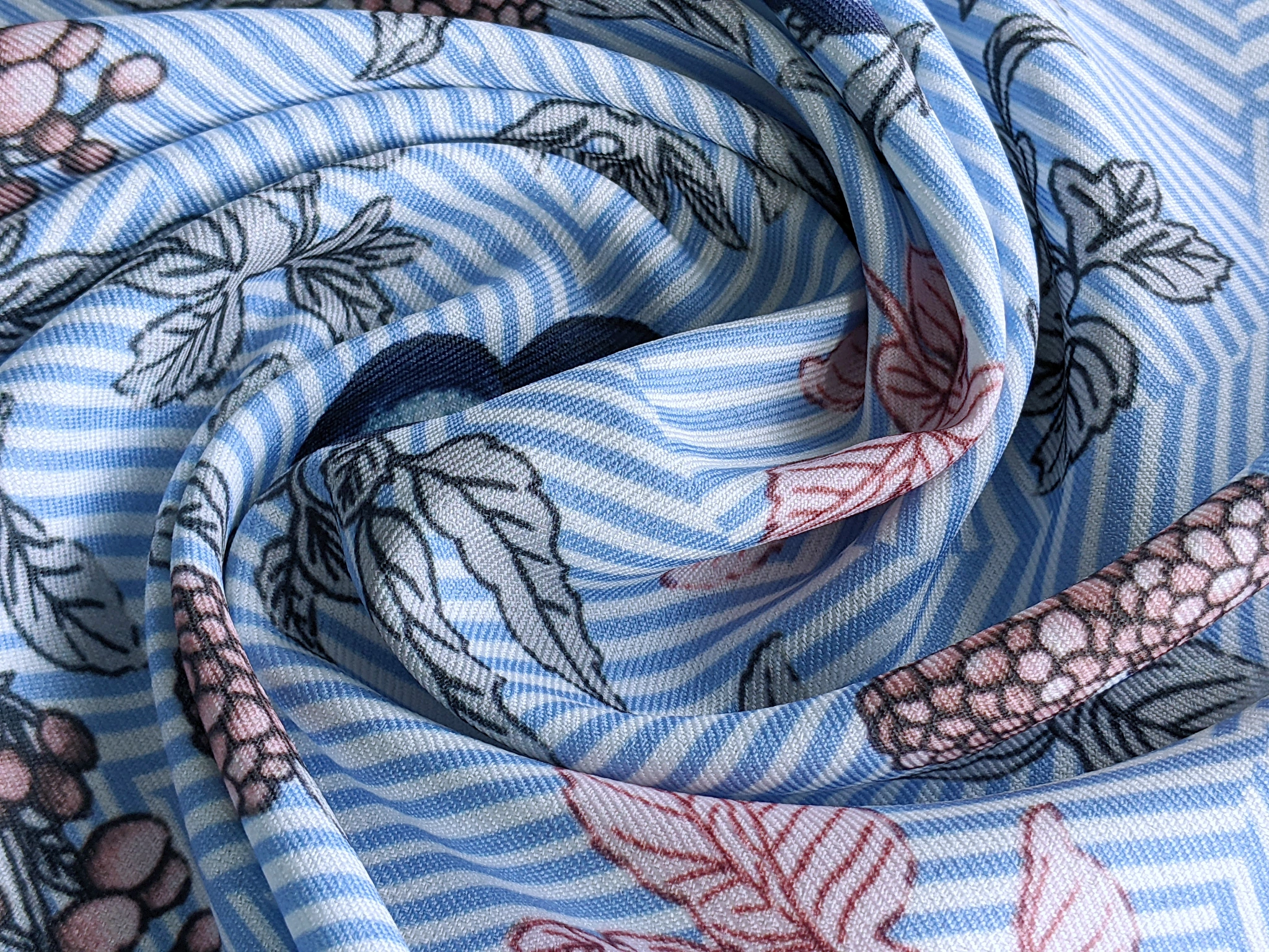 Дона креп квіти на смужці, блакитний з білим