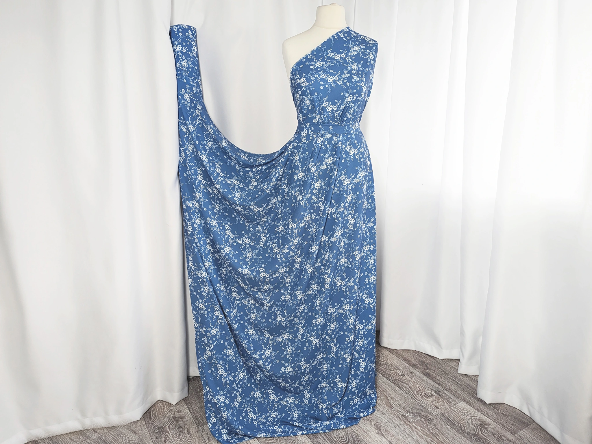 Дона креп - це легке полотно середньої щільності з креповою структурою. Тканина майже не мнеться, у виробі гарно лягає хвилями або складками. Відмінно підійде для пошиття суконь, сарафанів, блузок, комбінезонів та інших видів одягу сезону весна-літо.