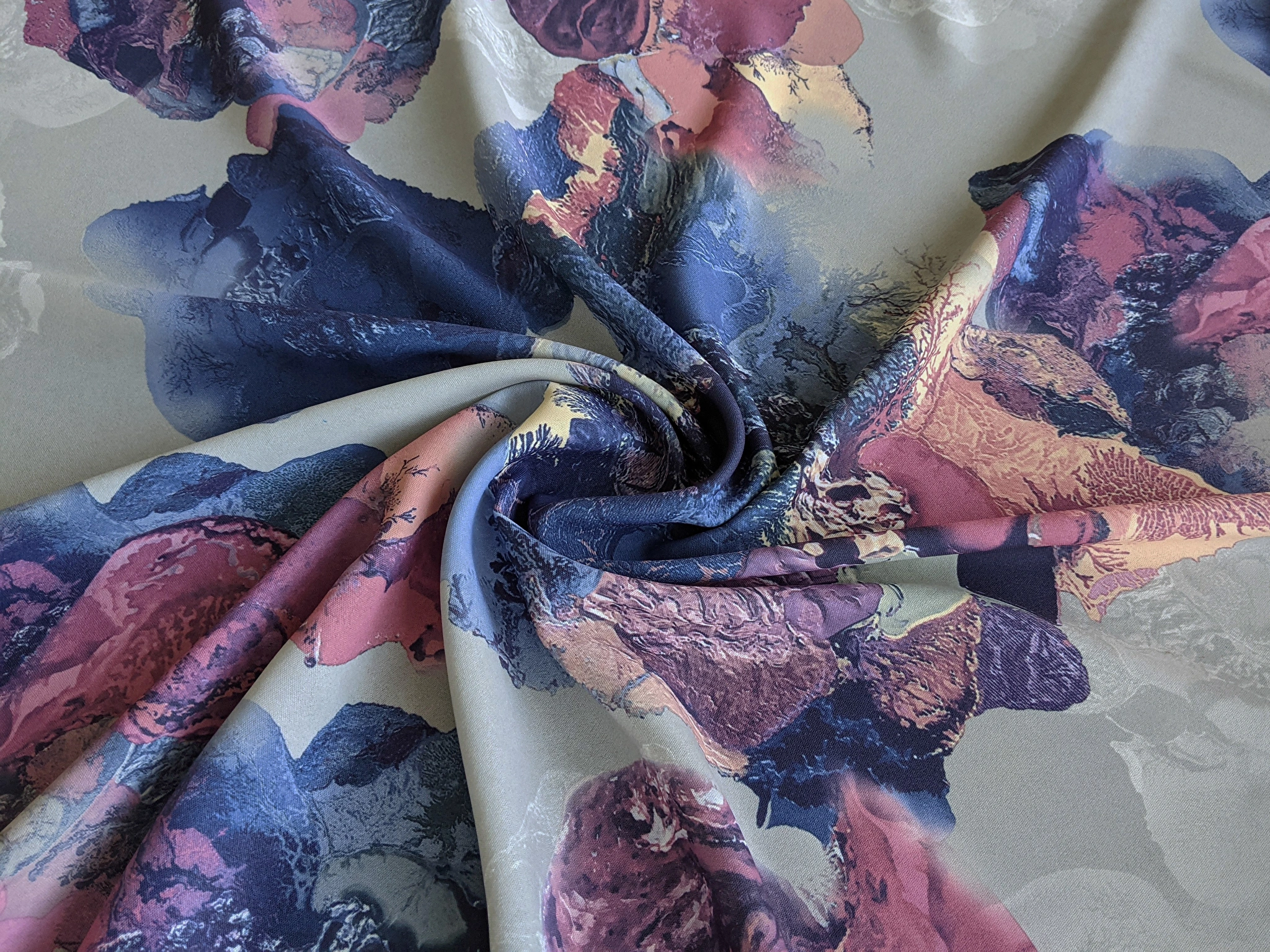 Дона креп великі квіти, блакитний з рожевим