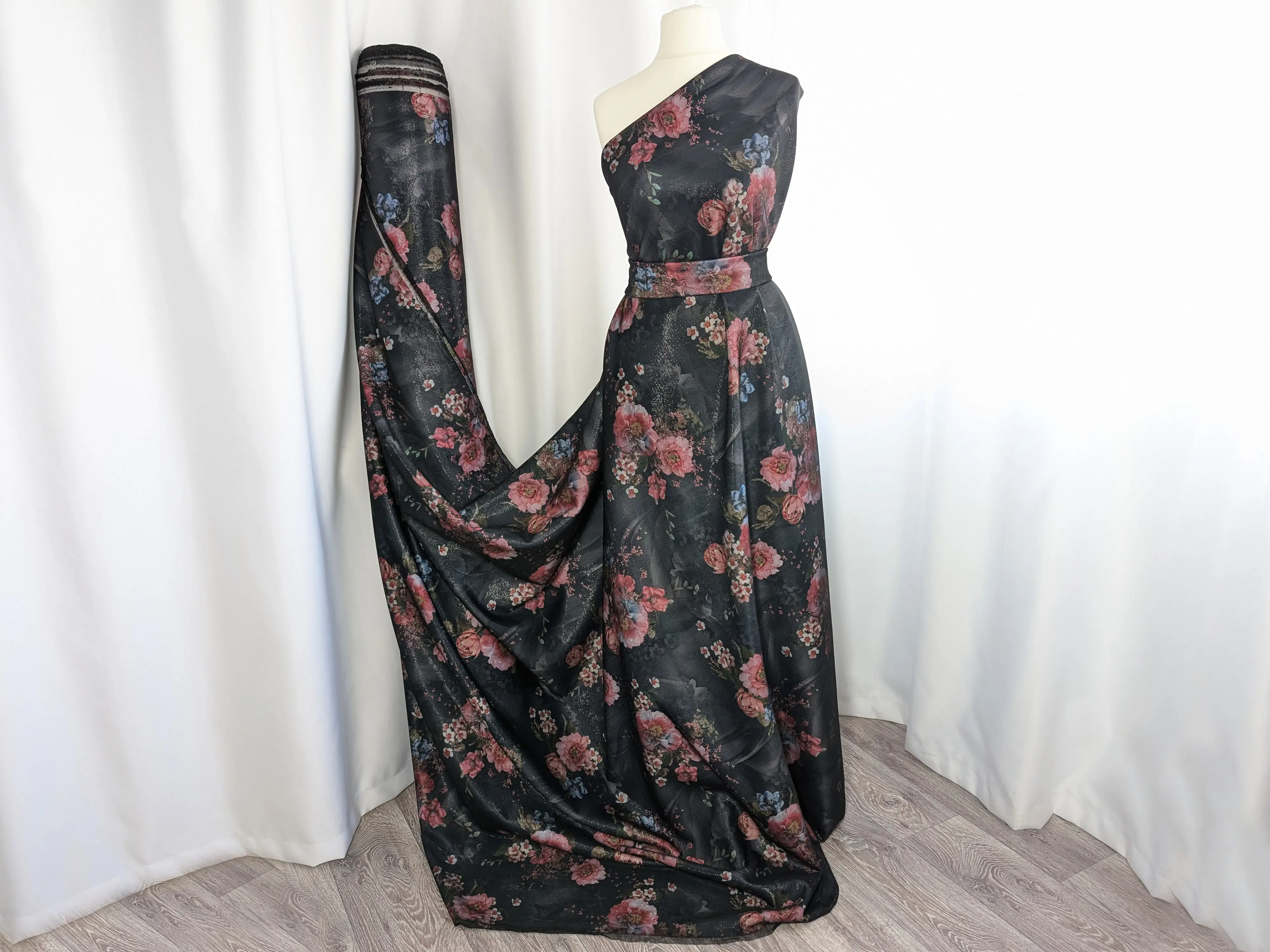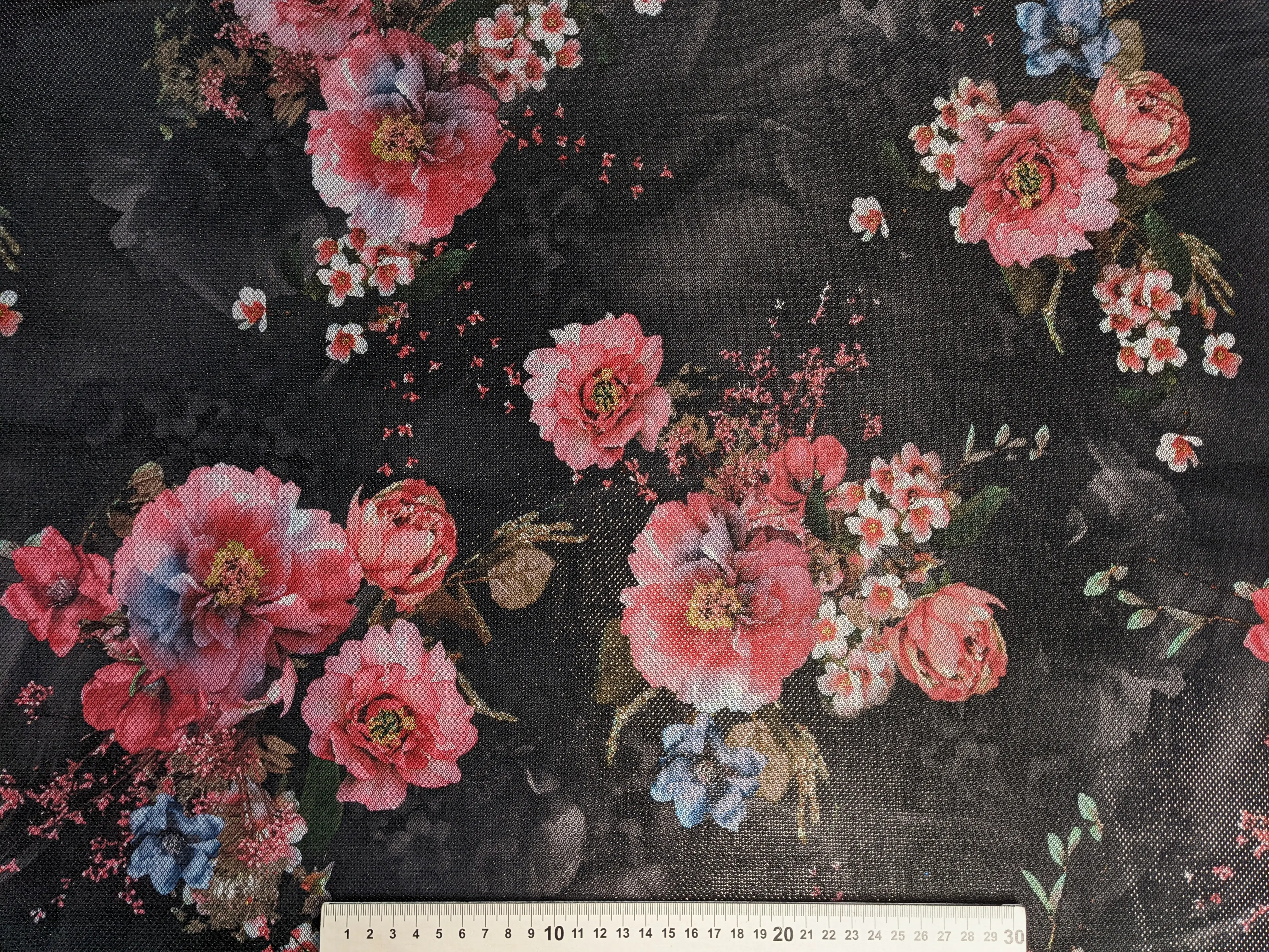 Диско чешуя квіткова композиція, чорний (відріз 2 м)