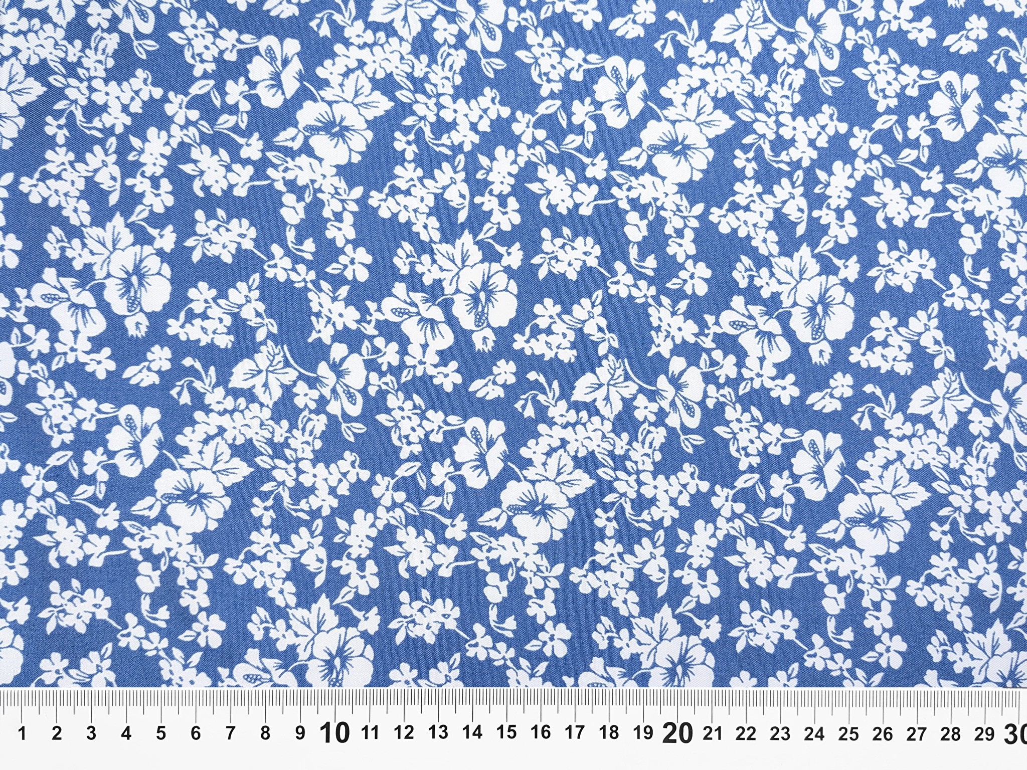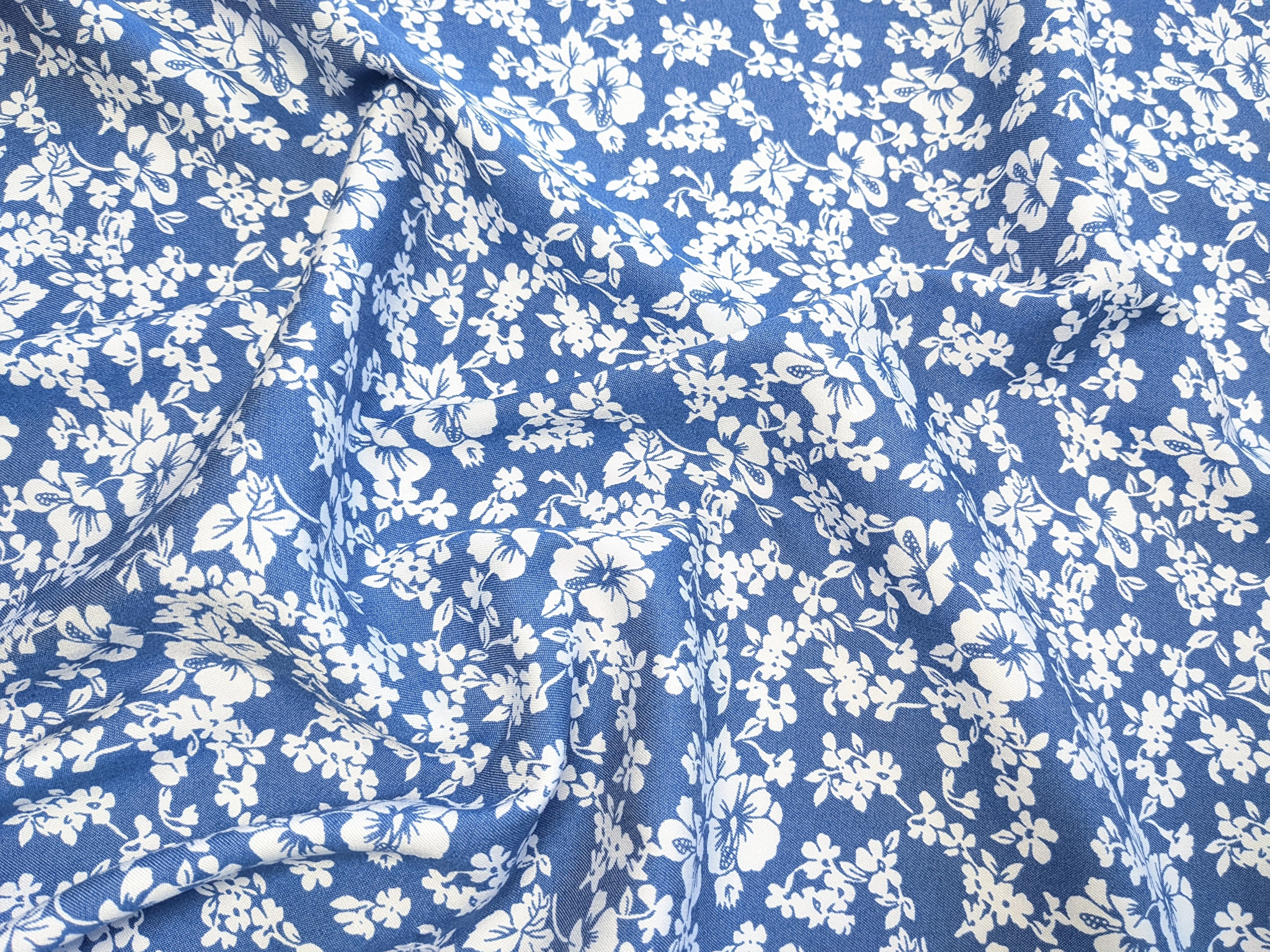 Джинс тенсел дрібні квіточки, блакитний джинсовий