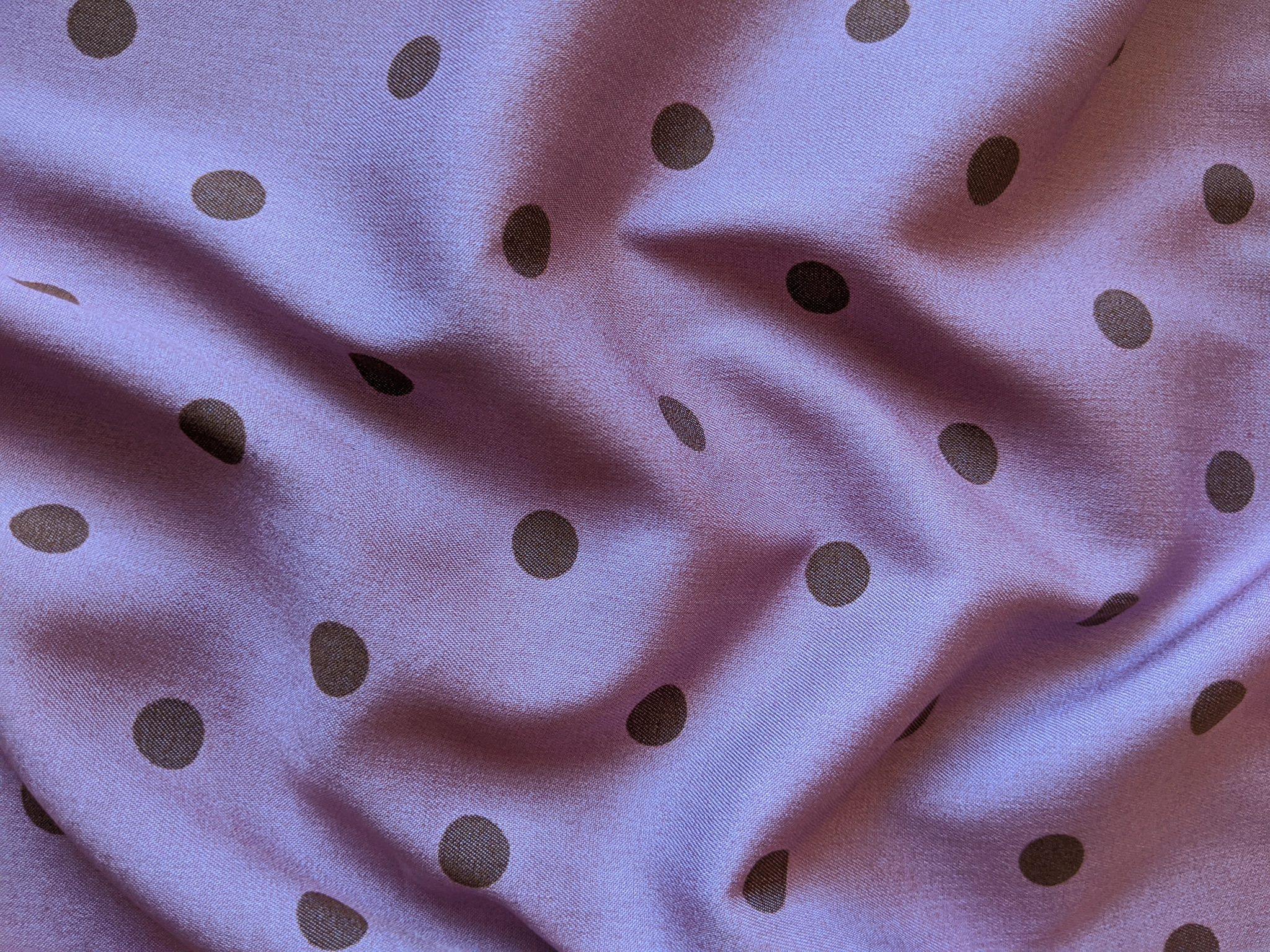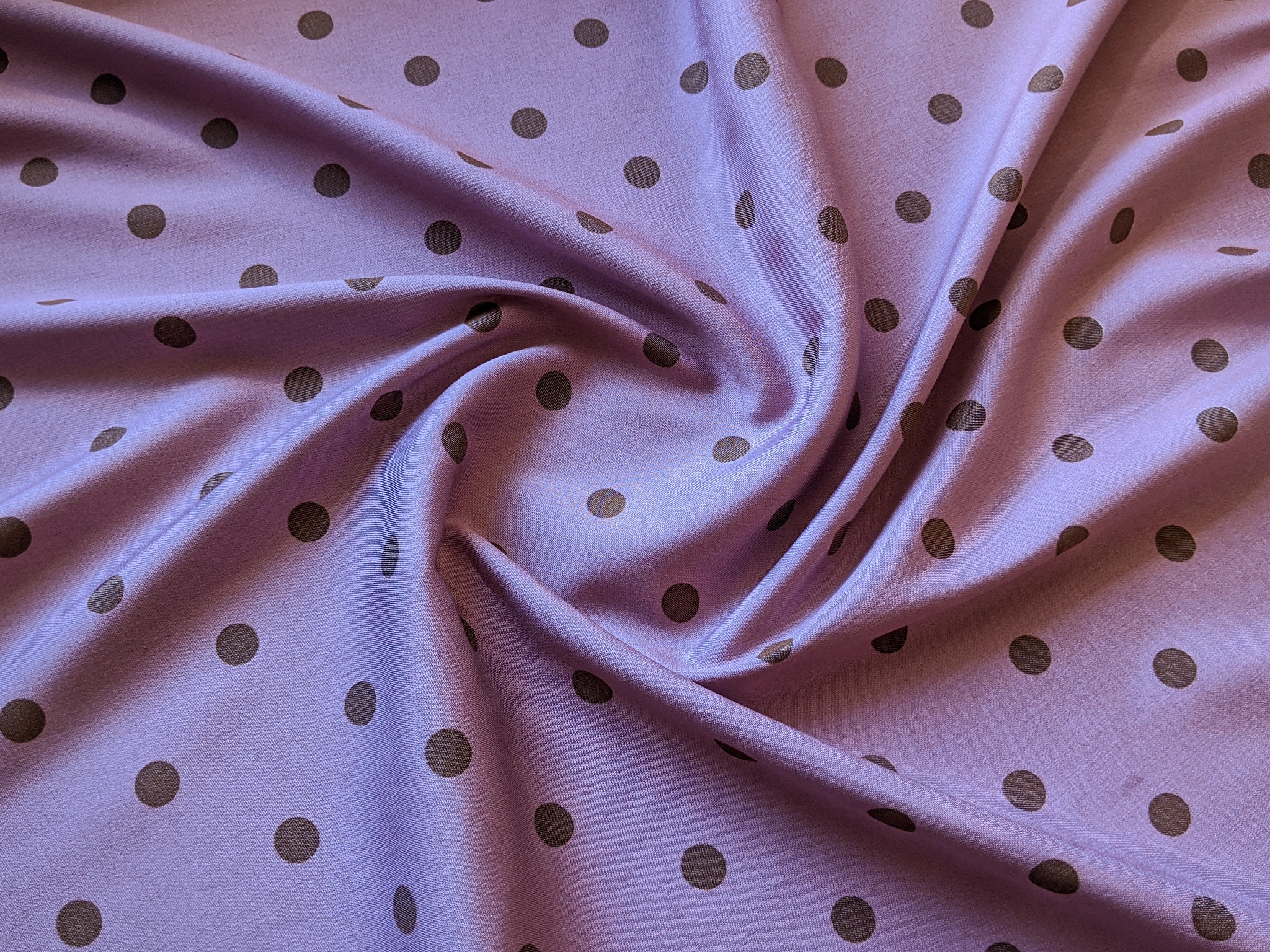 Джинс тенсел горох 10 мм, коричневий на рожевому (відріз 1,5 м) (д72, 1911041, д2 цв1)