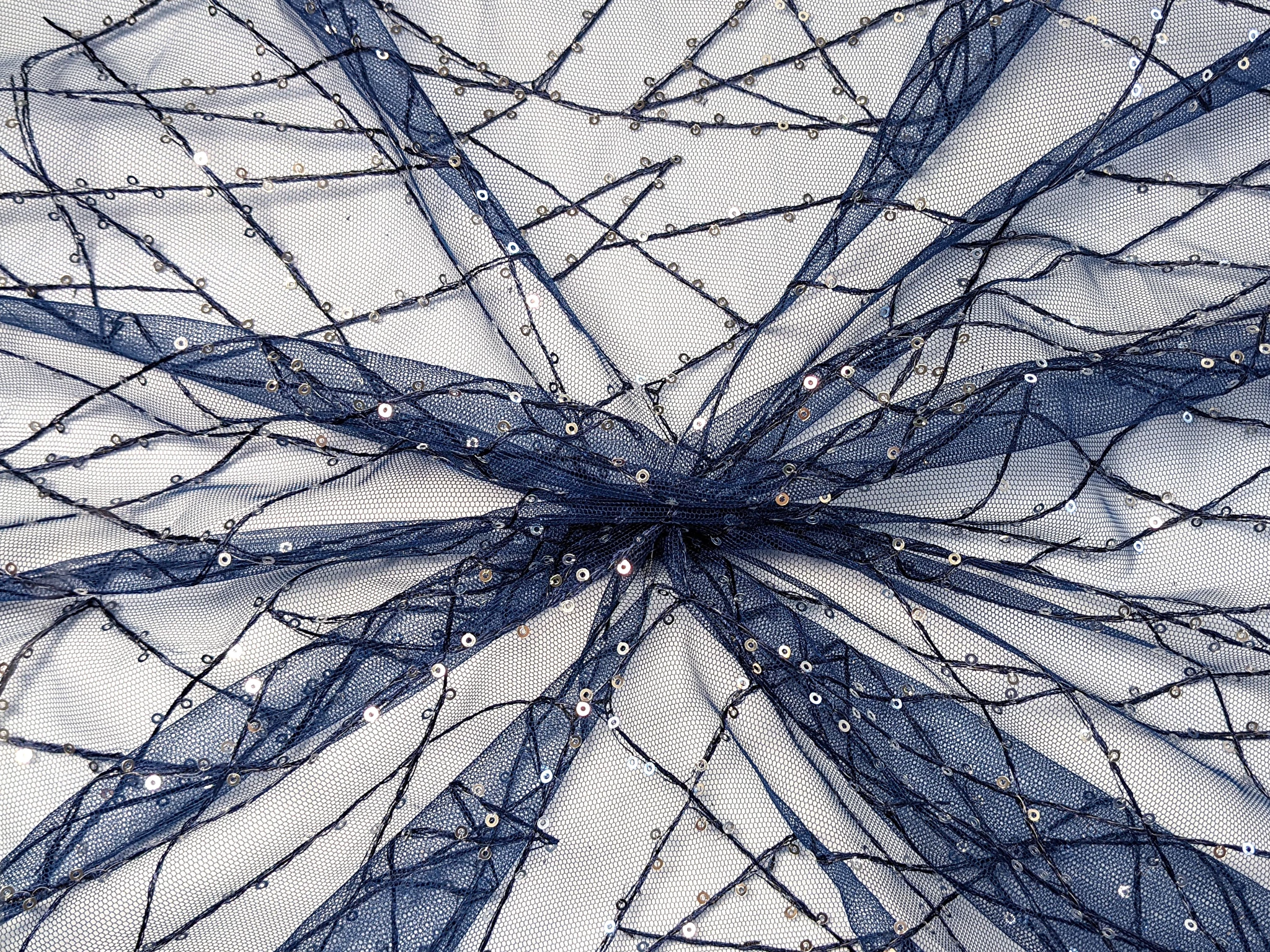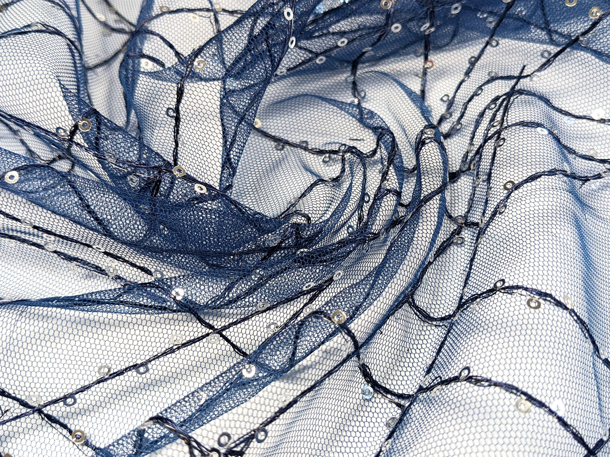 Фатин паєтка - це ажурне, тонке полотно, яке злегка жорстке і завдяки цьому тримає форму. З лицьового боку тканини хаотично нашиті дрібні паєтки, які надають ніжності та створюють святковий настрій.