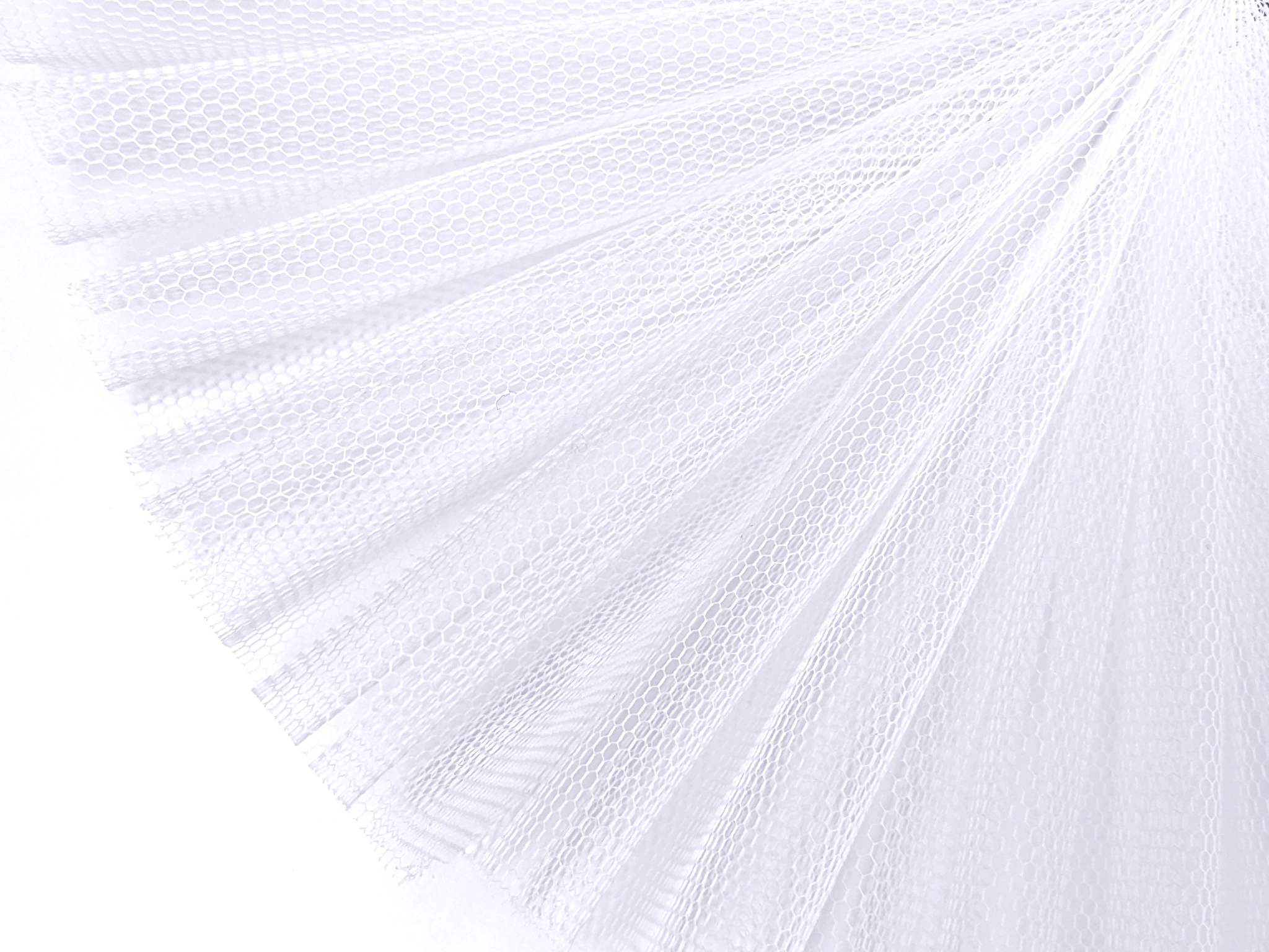 Фатин жорсткий – сітчастий, з однотонною матовою поверхнею та високою жорсткістю матеріал. Фатин завдяки своїй структурі злегка пружинить по ширині полотна. У не розтягнутому положенні осередок має 1*2мм. При викладанні дуже добре тримає форму.