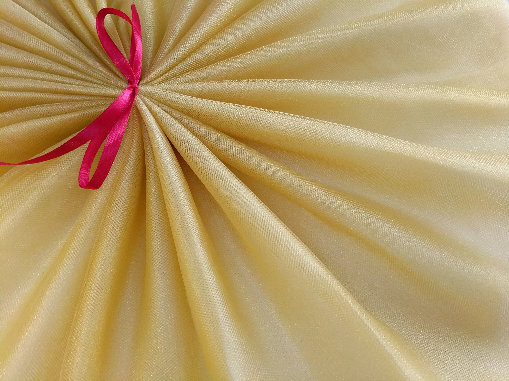 З фатину легко втілити всі свої творчі ідеї, адже полотно не примхливе, не обсипається, не вимагає додаткової обробки краю. Ширина полотна 3 м, завдяки чому без особливих зусиль і витрат ви з легкістю зможете зшити пишну спідницю для дівчинки всього з 2-3 метрів полотна.