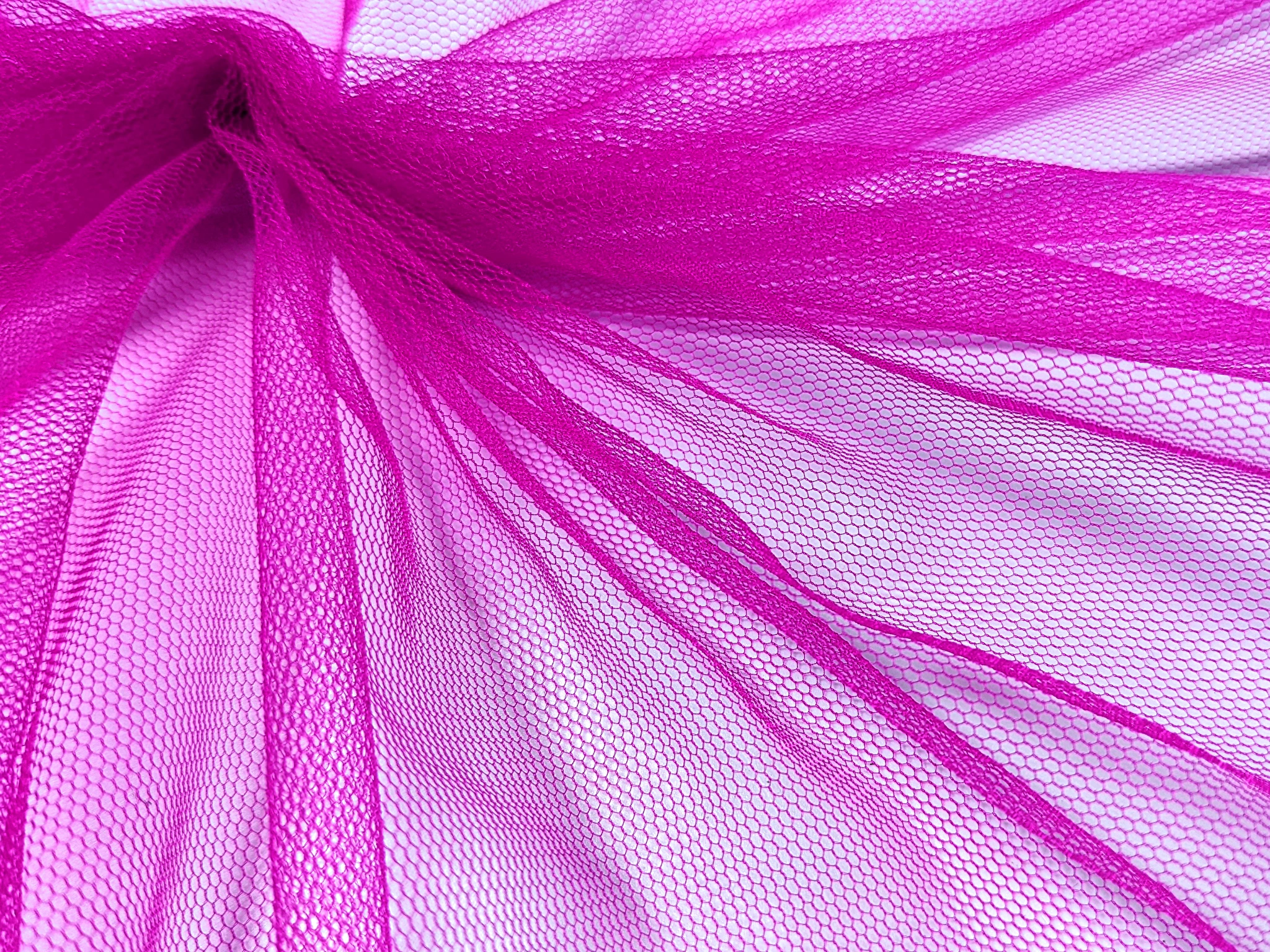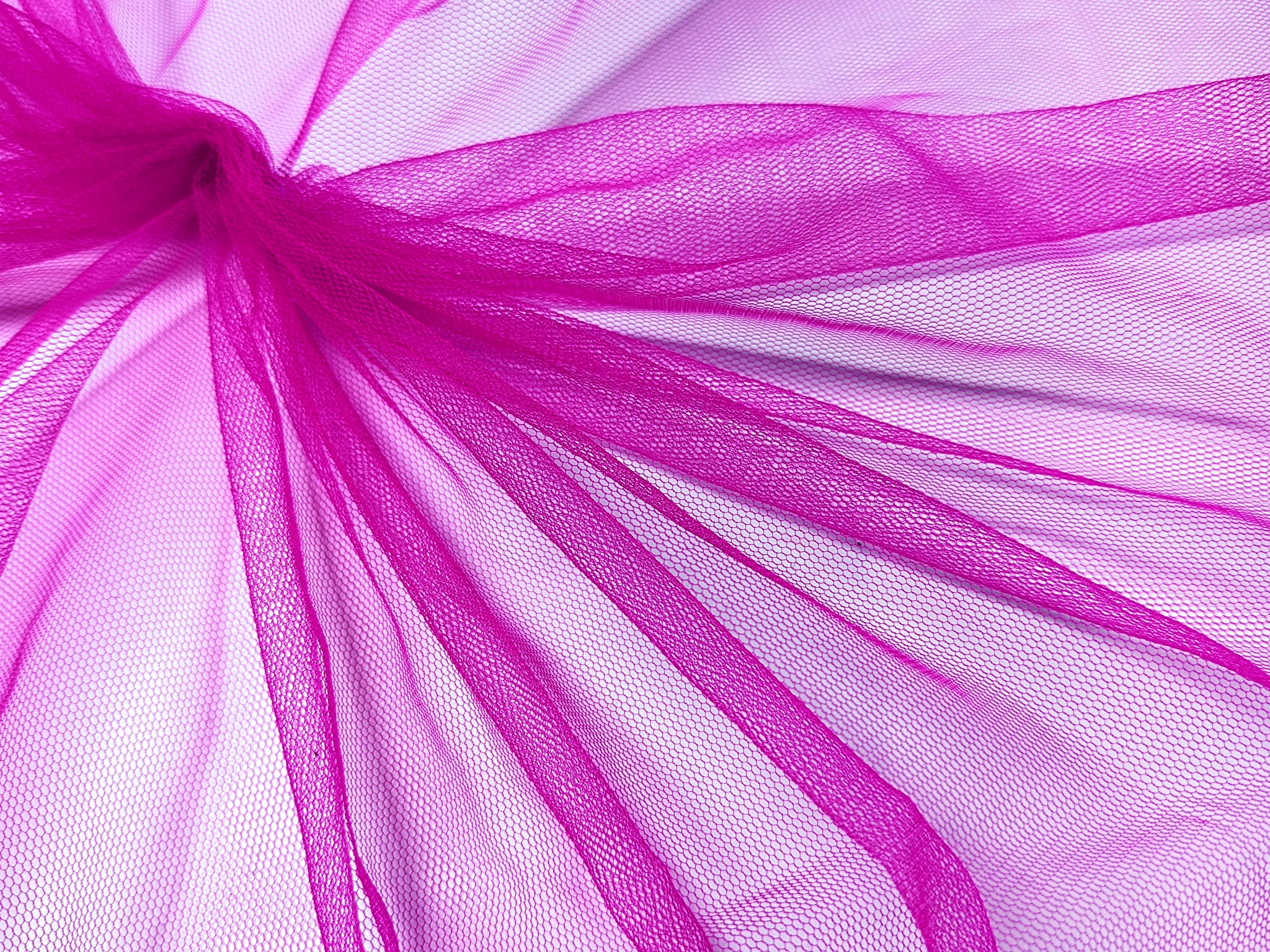 Код: ф13, б/а, бузковийФатин м'який входить до групи сітчастих тканин. Це м'яке, повітряне, легке, вуалеве полотно, виткане наскрізними осередками. Матеріал еластичний по ширині полотна, не жорсткий, зріз не колкий, тактильно приємний.