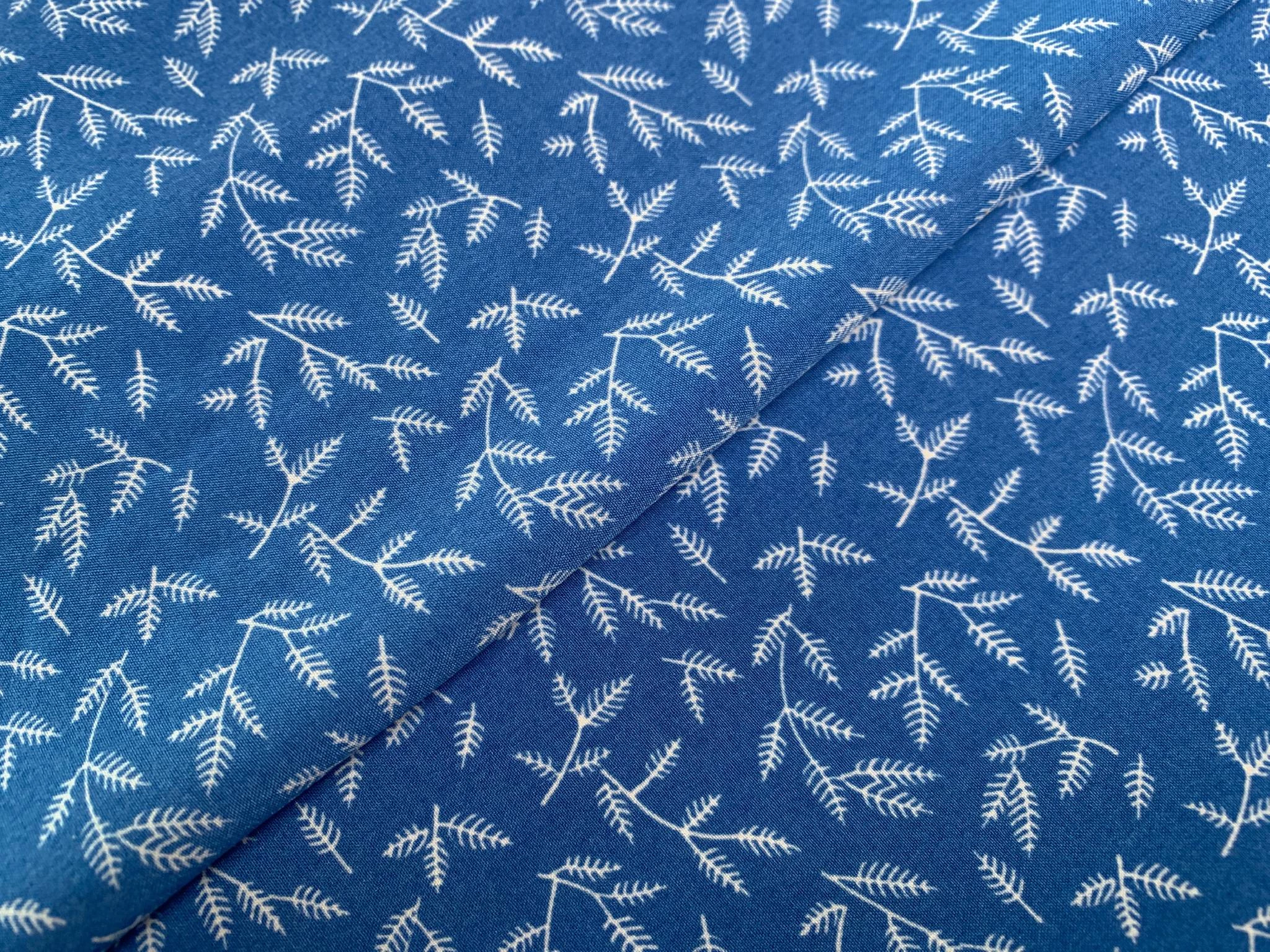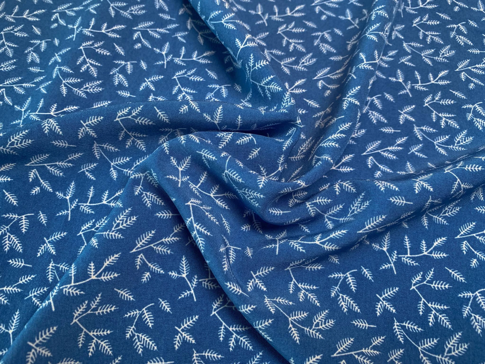 Супер софт принт листя, джинсовий синій (ф52, 1910078, д14 цв1)