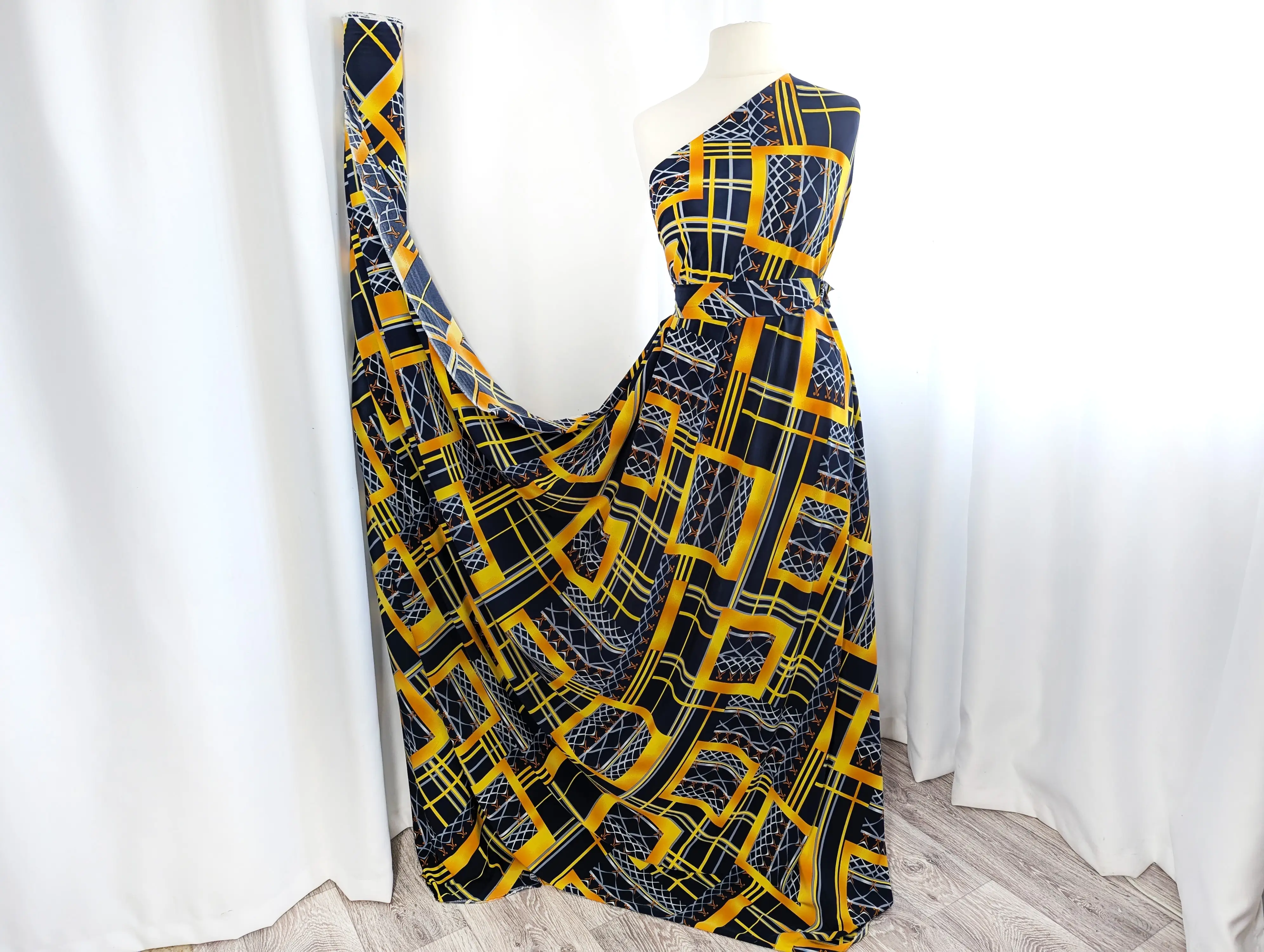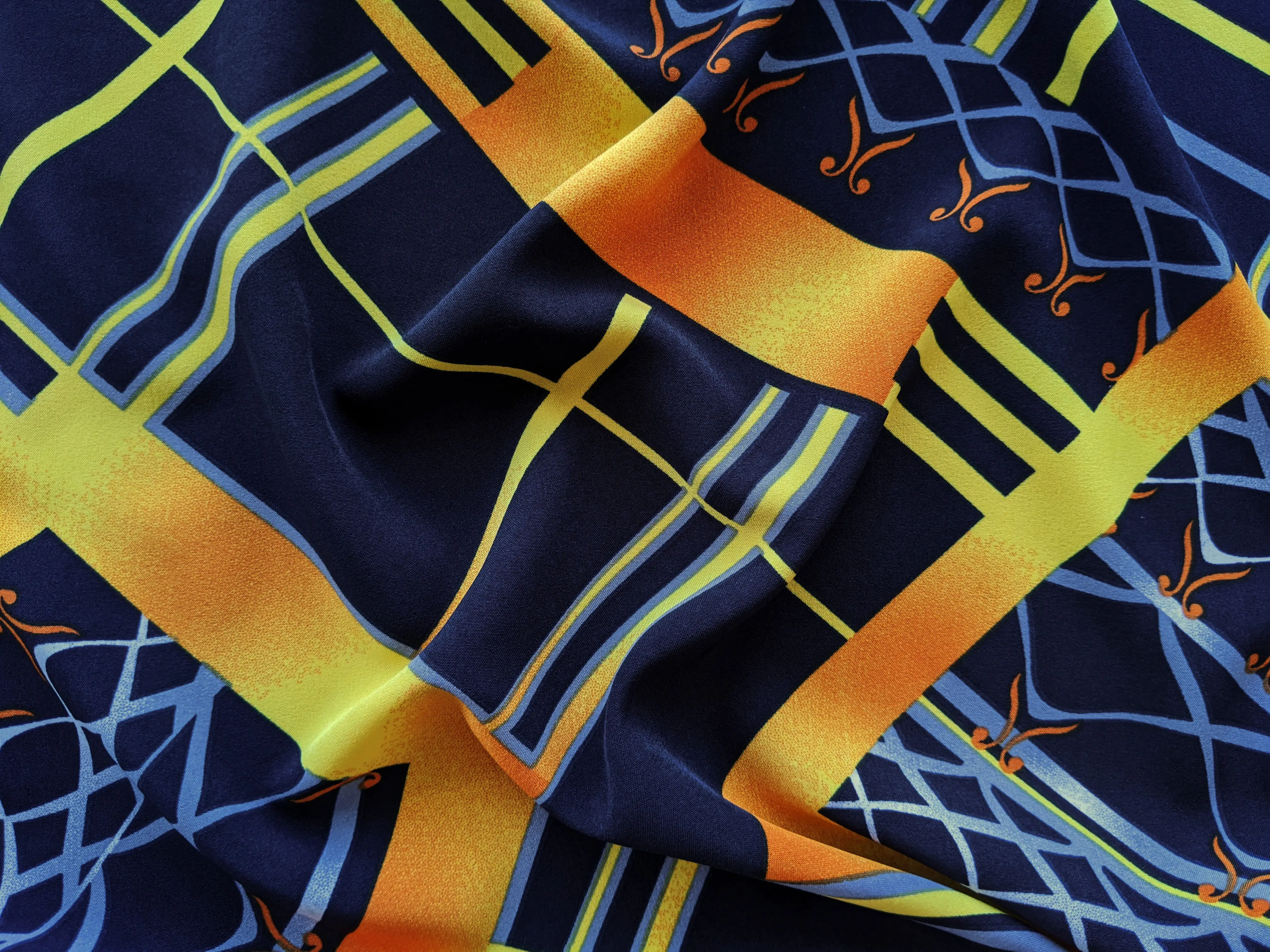 Віскоза софт легка, приємна до тіла, легко розгладжується, майже не мнеться. Структура тканини гладка, щільна. Світлі тони злегка просвічуються на світлі. Трохи тягнеться по одній стороні. Полотно гарно драпірується. Застосовується при пошитті блуз і літніх суконь.
