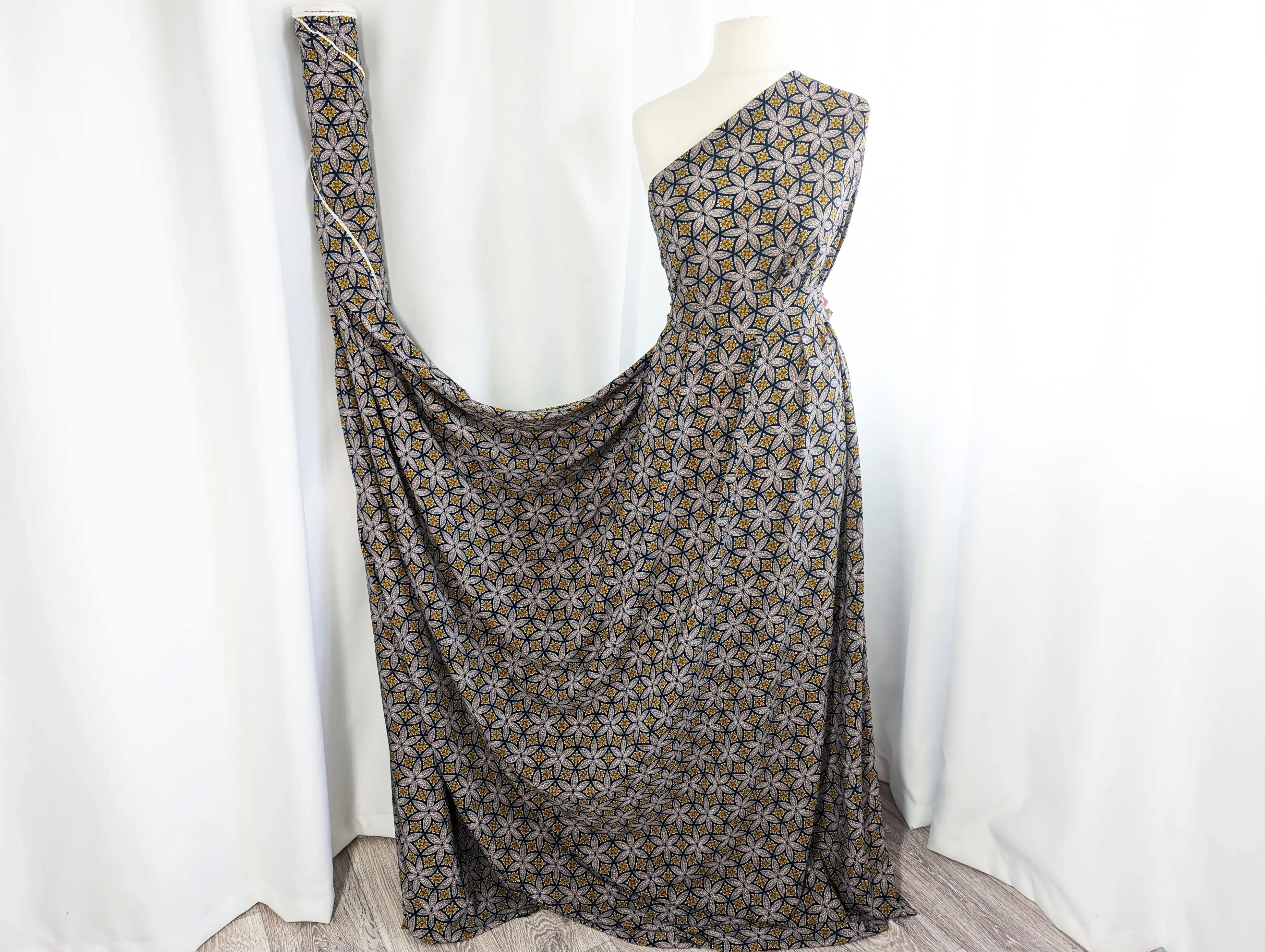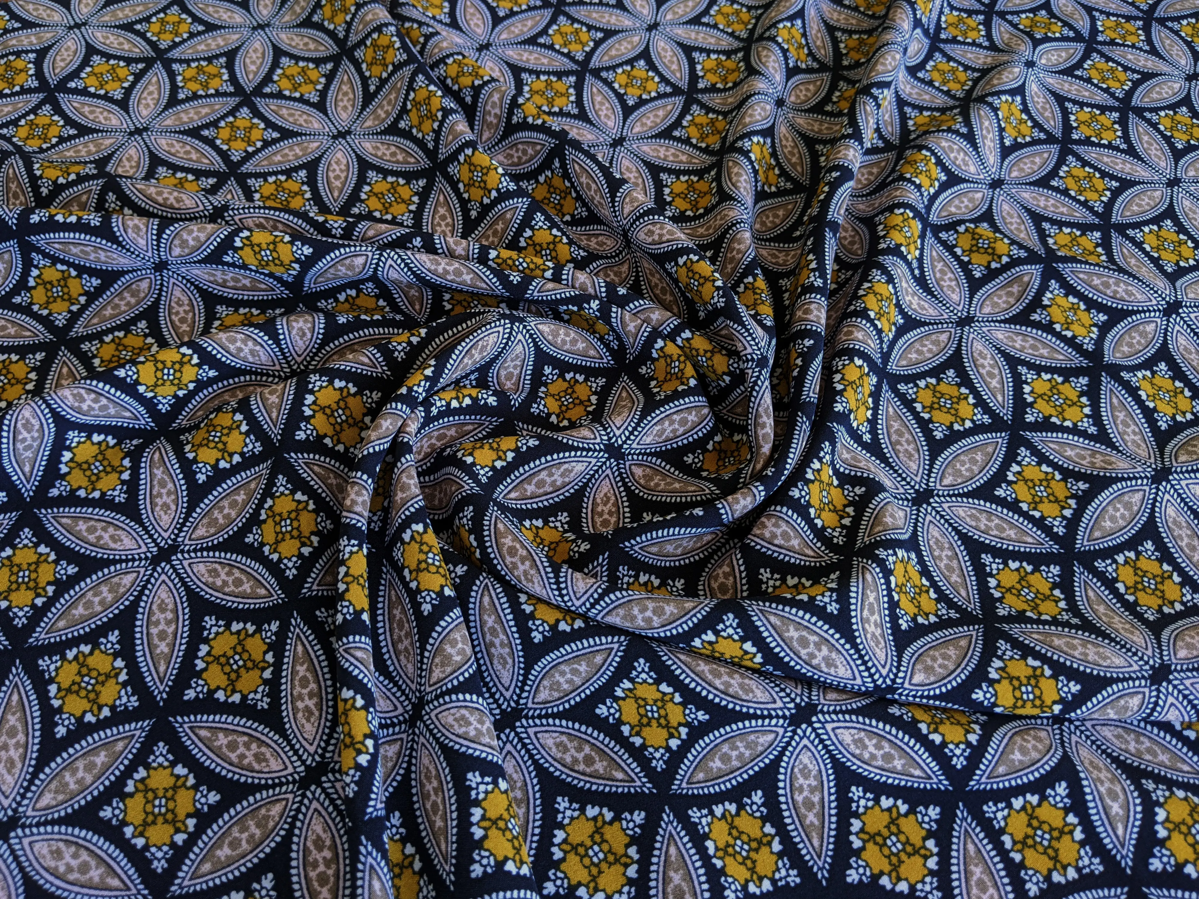 Віскоза софт легка, приємна до тіла, легко розгладжується, майже не мнеться. Структура тканини гладка, щільна. Світлі тони злегка просвічуються на світлі. Трохи тягнеться по одній стороні. Полотно гарно драпірується. Застосовується при пошитті блуз і літніх суконь.
