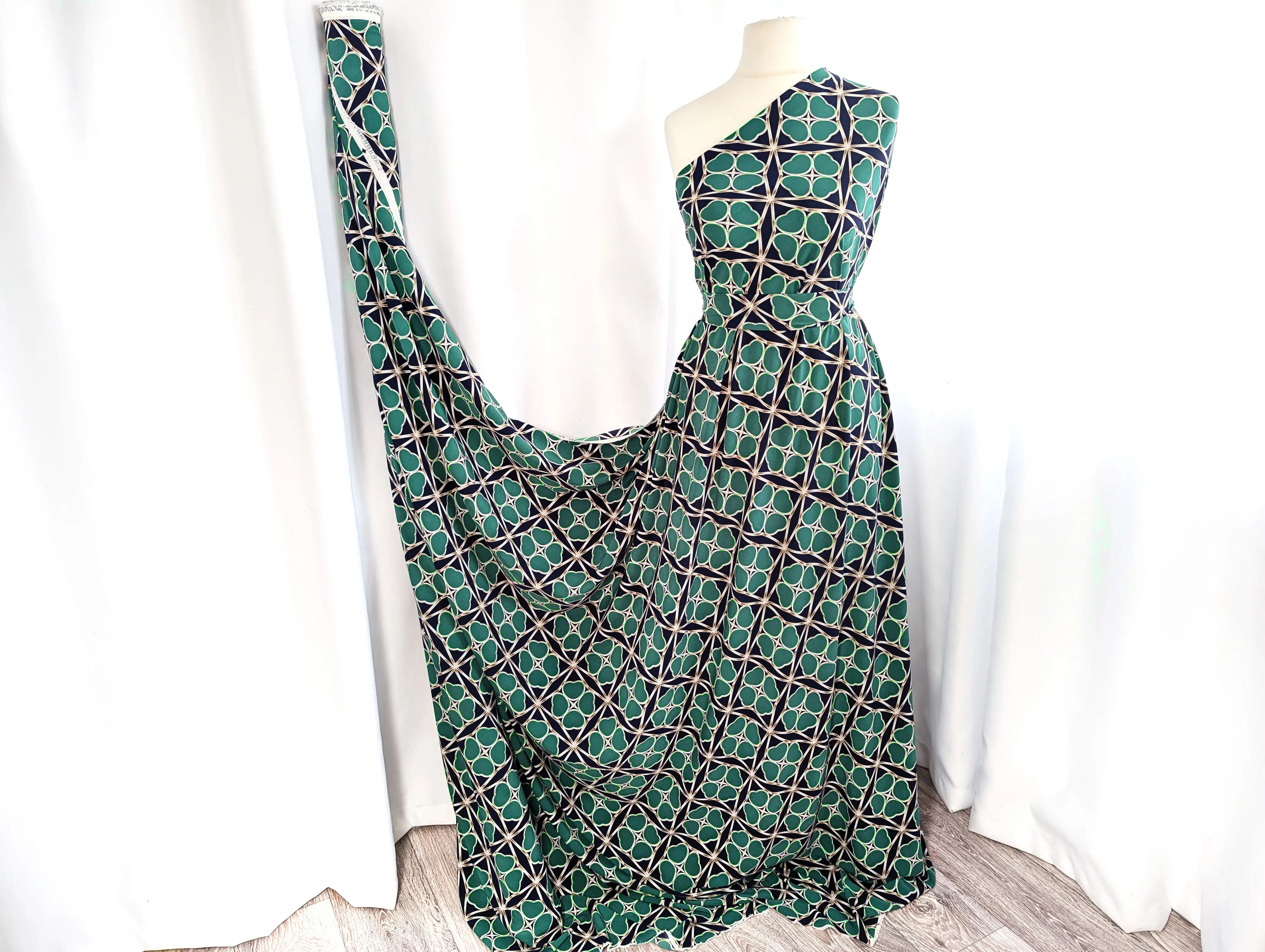 Віскоза софт легка, приємна до тіла, легко розгладжується, майже не мнеться. Структура тканини гладка, щільна. Світлі тони злегка просвічуються на світлі. Трохи тягнеться по одній стороні. Полотно гарно драпірується. Застосовується при пошитті блуз і літніх суконь.