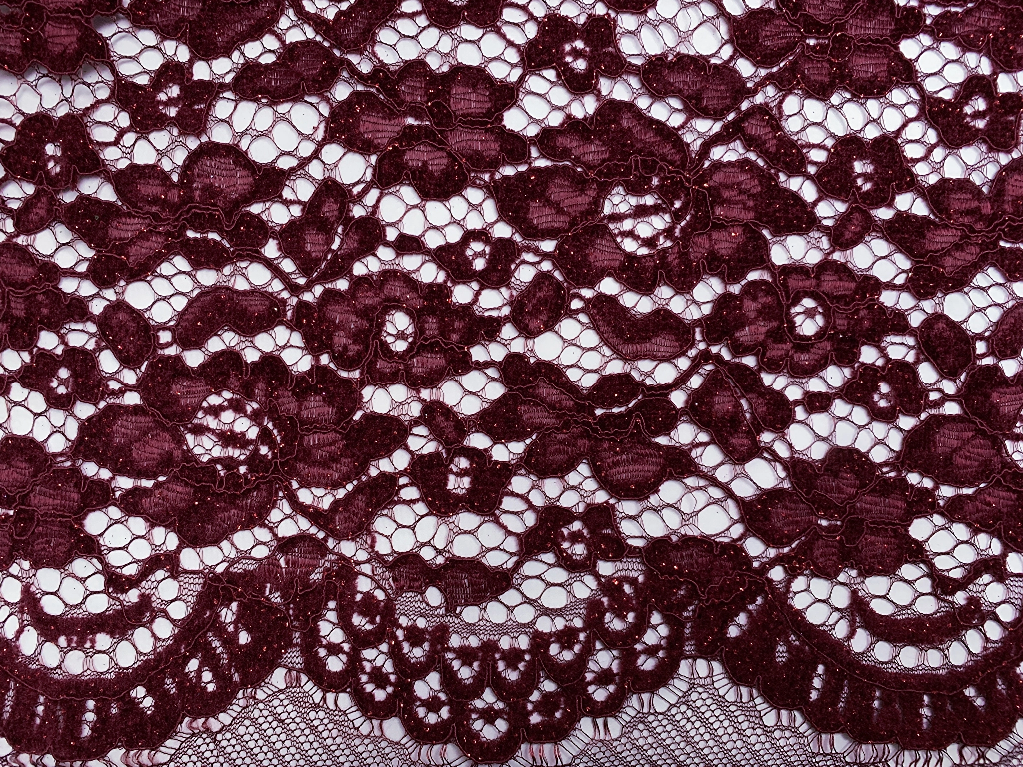 Гіпюр оксамитовий з блиском двосторонній фестон, бордовий