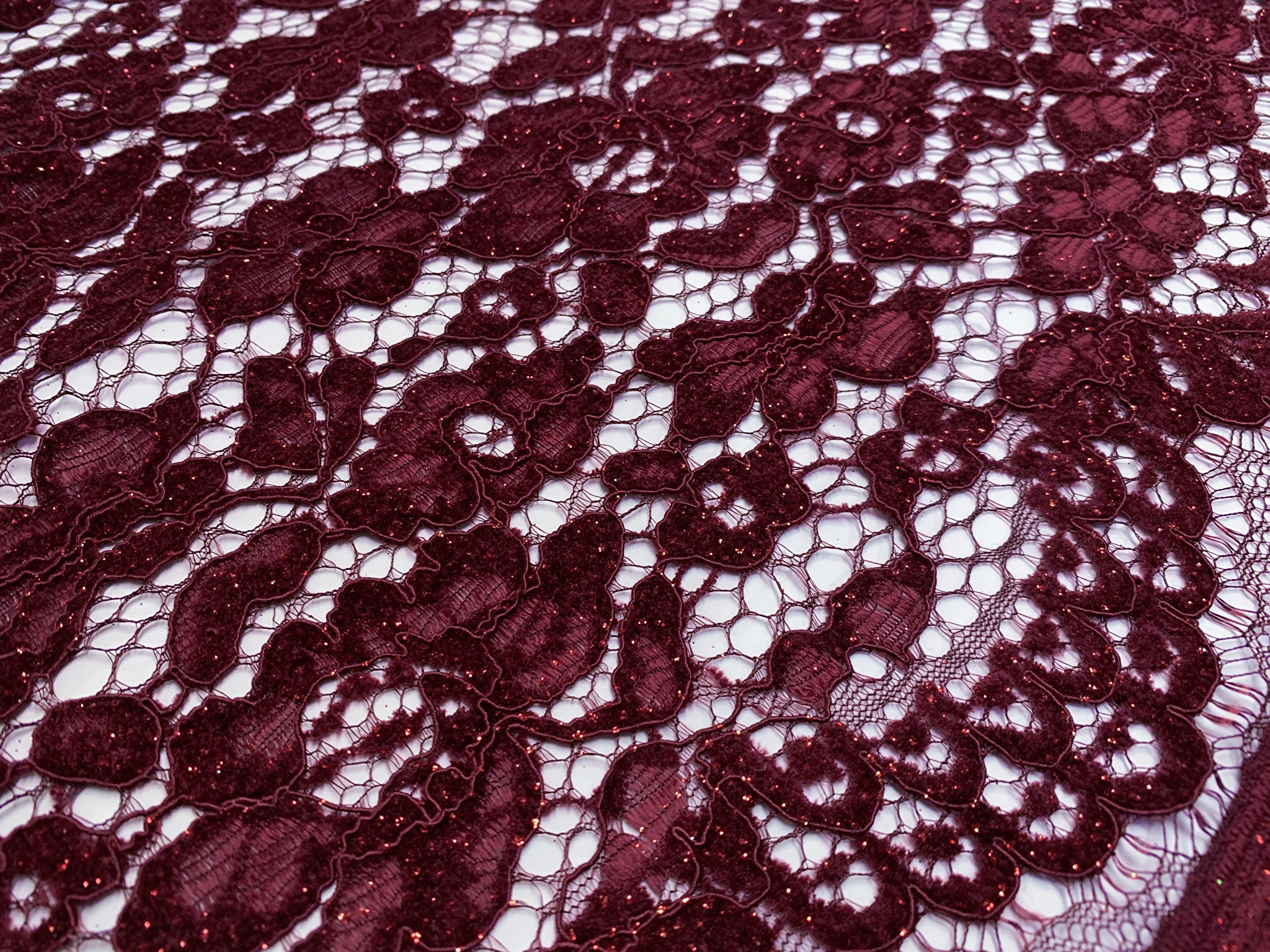 Гіпюр оксамитовий з блиском двосторонній фестон, бордовий (г45, 1907049B, цв2)