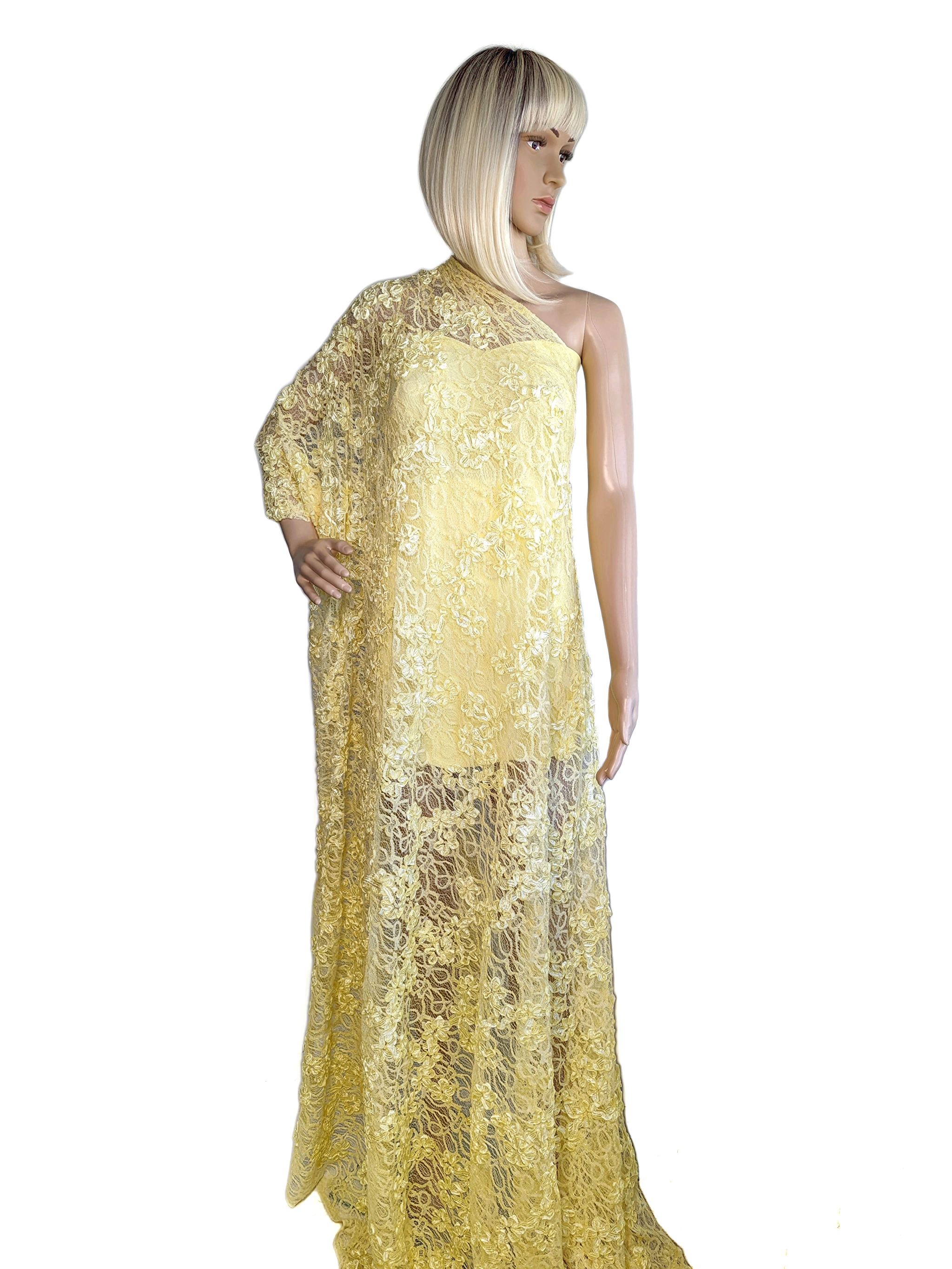 Гіпюр нарядний квітковий ансамбль 3д, лимонний