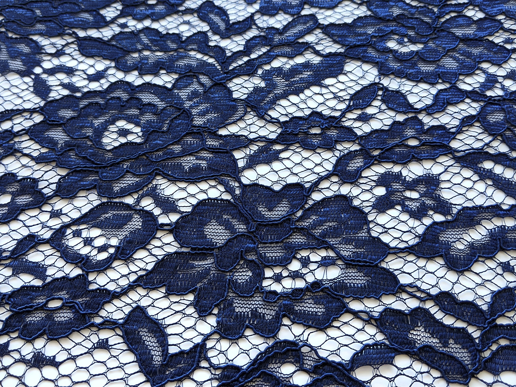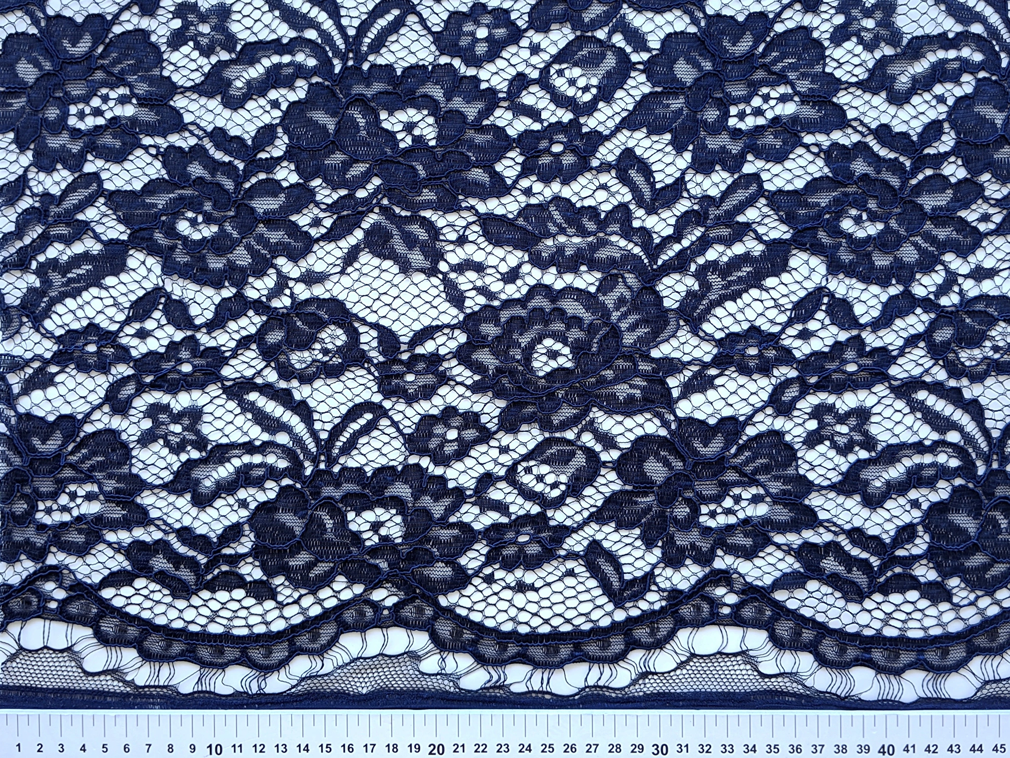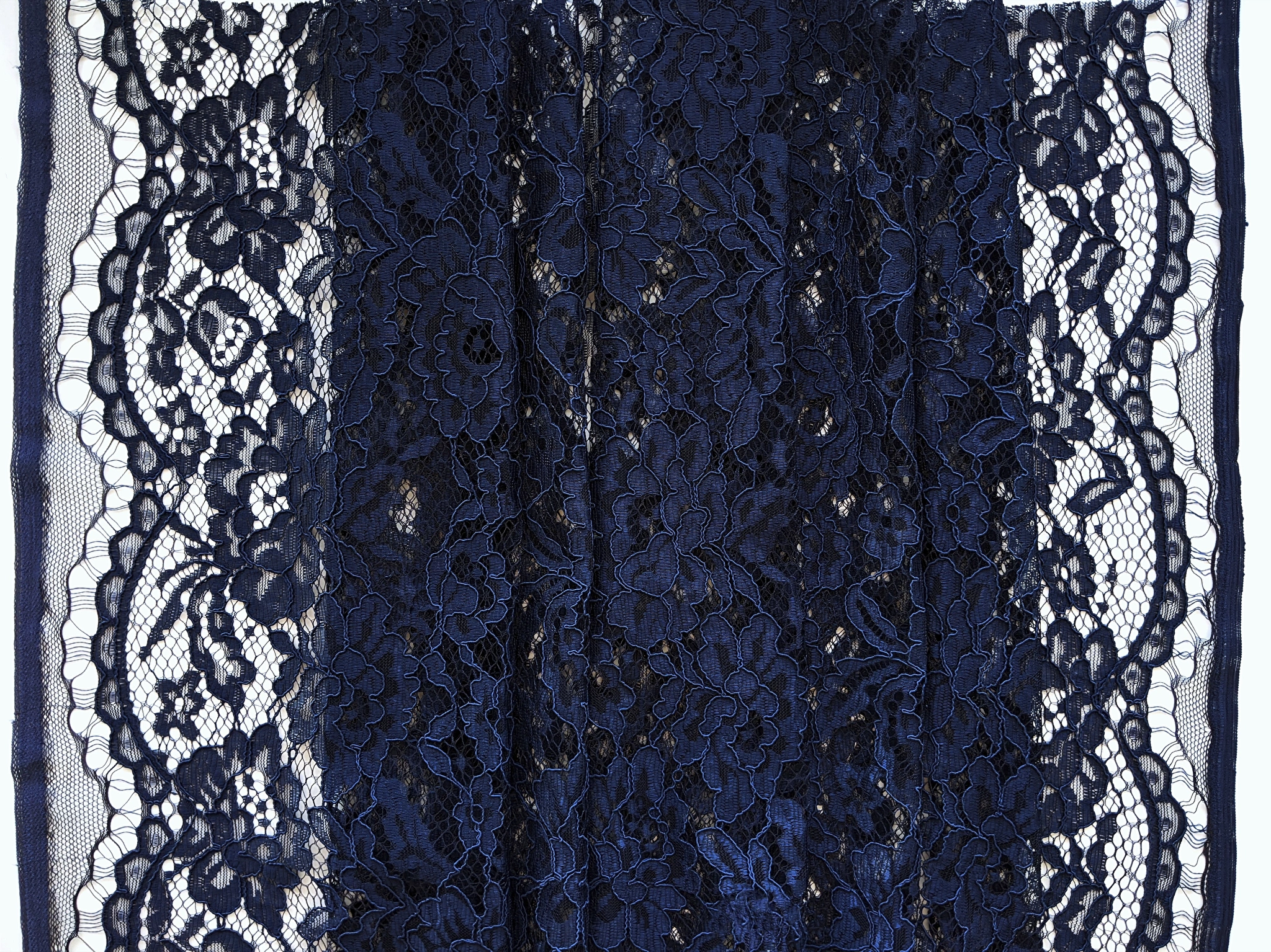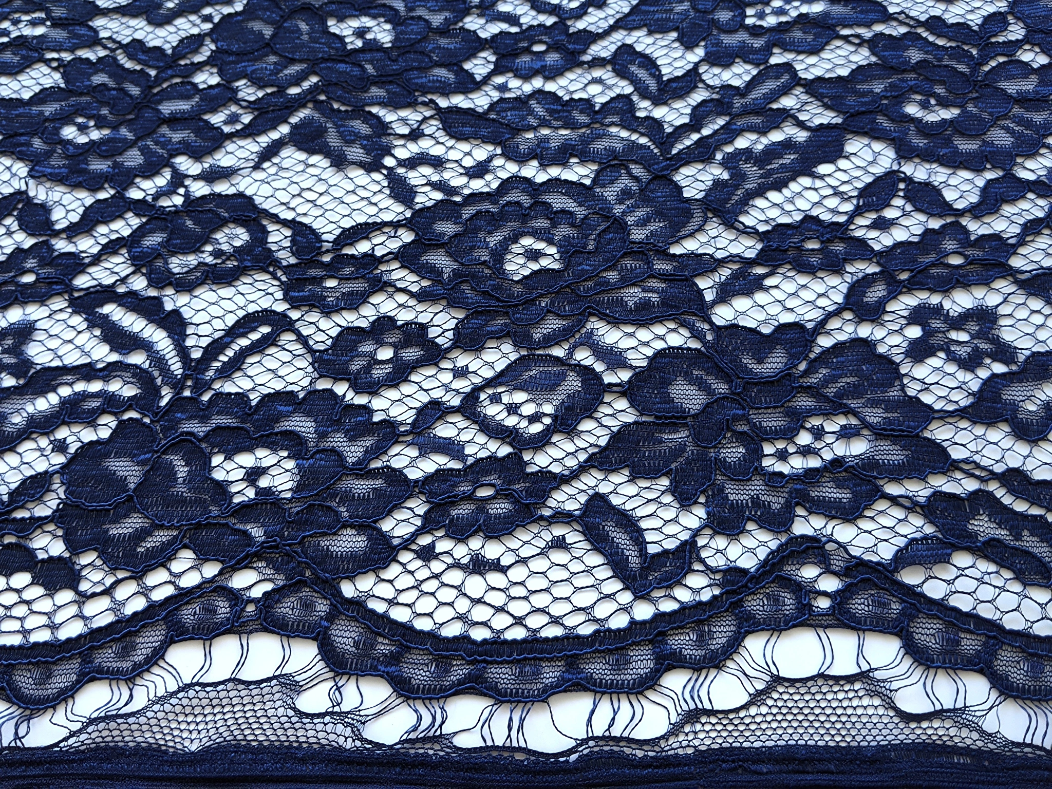 Гіпюр з фестоном квітковий, темно-синій