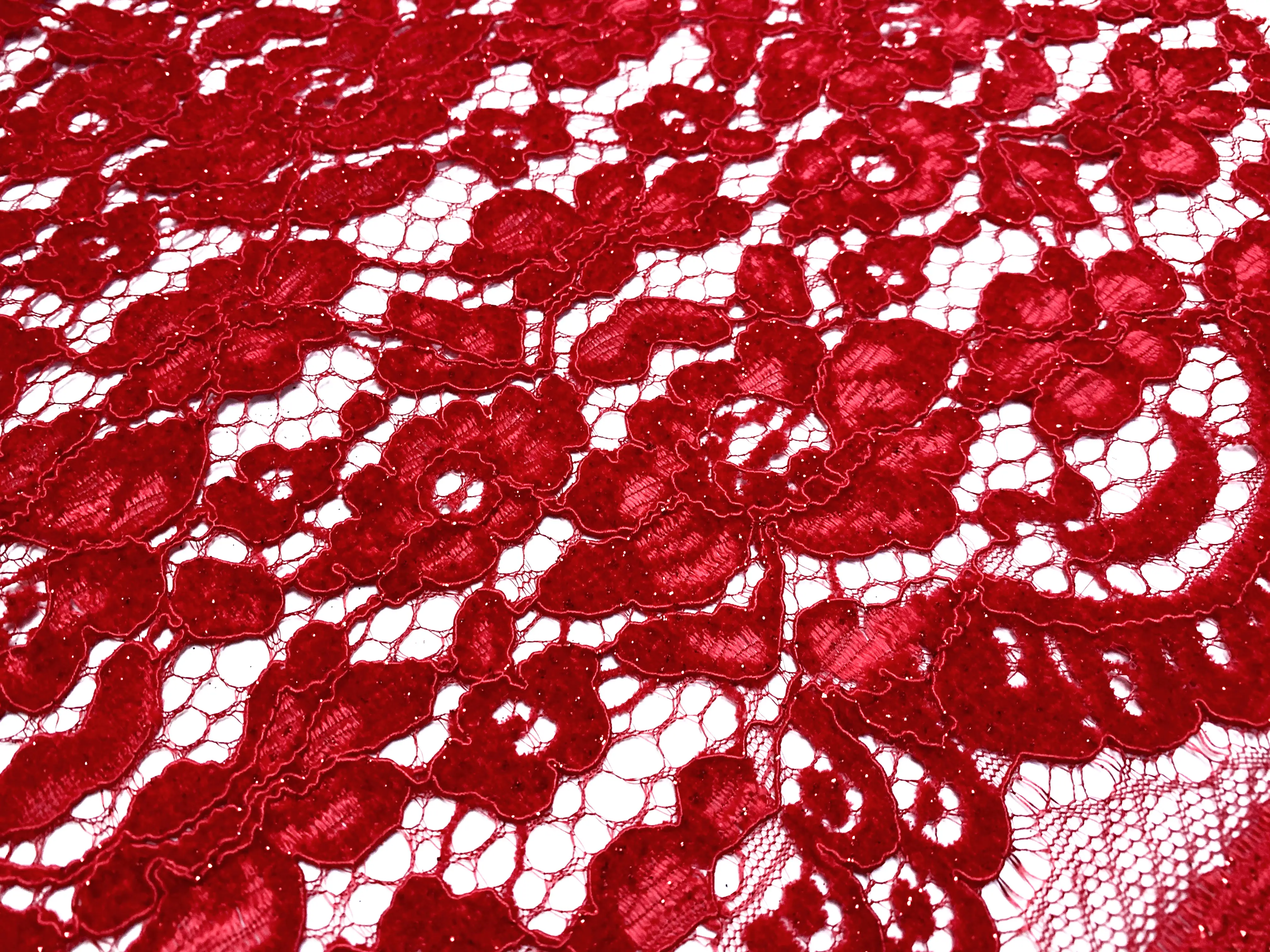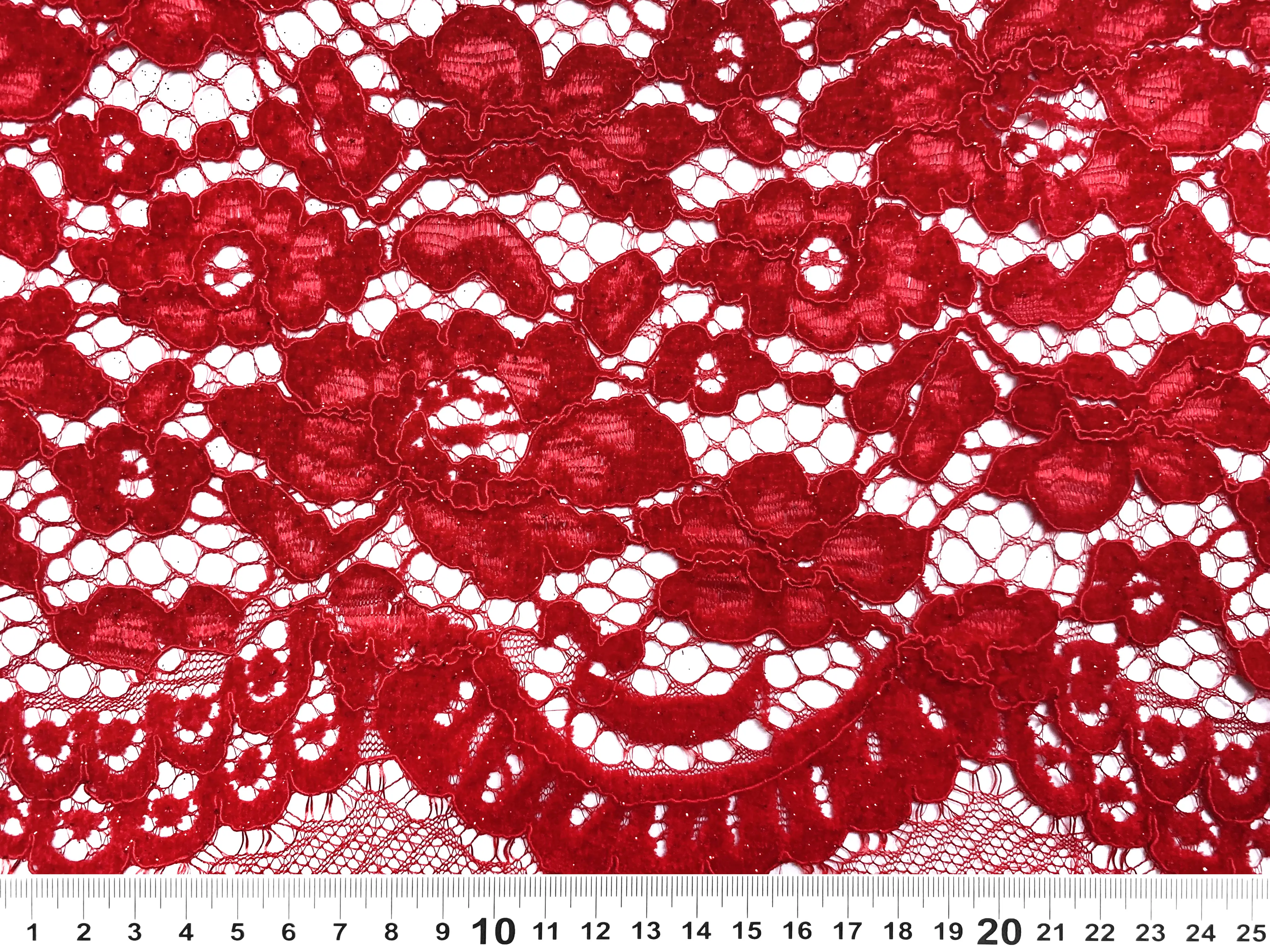 Гіпюр оксамитовий з блиском двосторонній фестон, червоний (відріз 2 м)