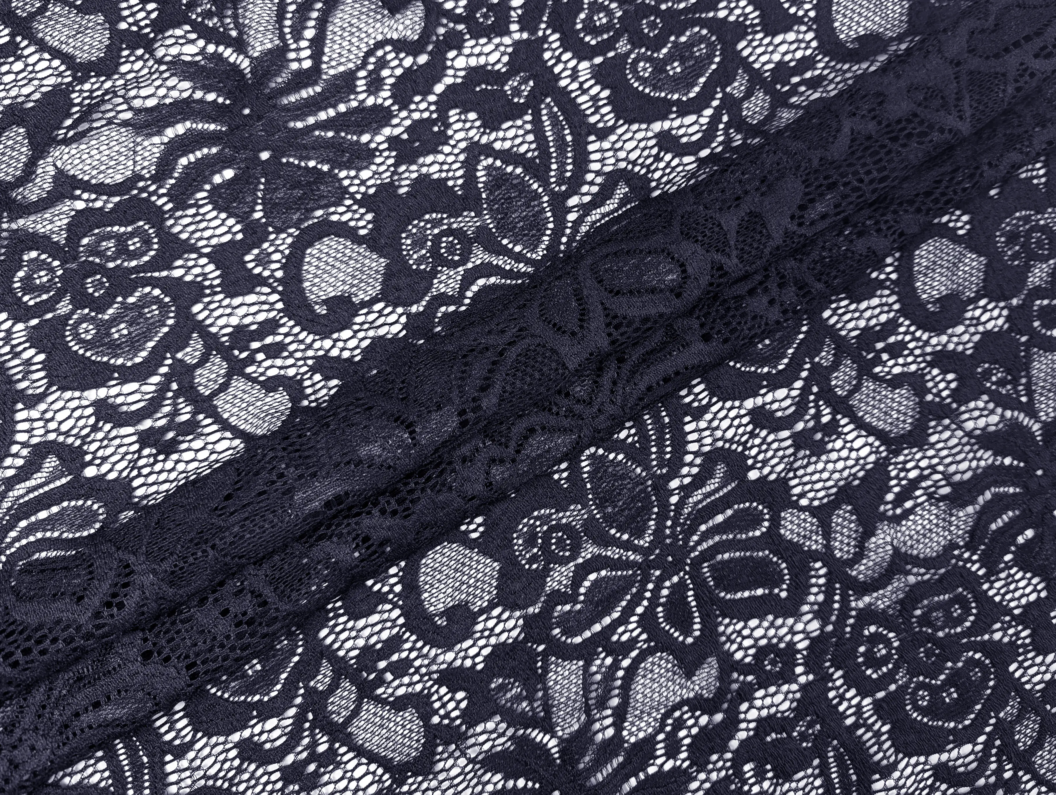 Гіпюр стрейч Класика квіткова фантазія, темно-синій (відріз 1,5 м)