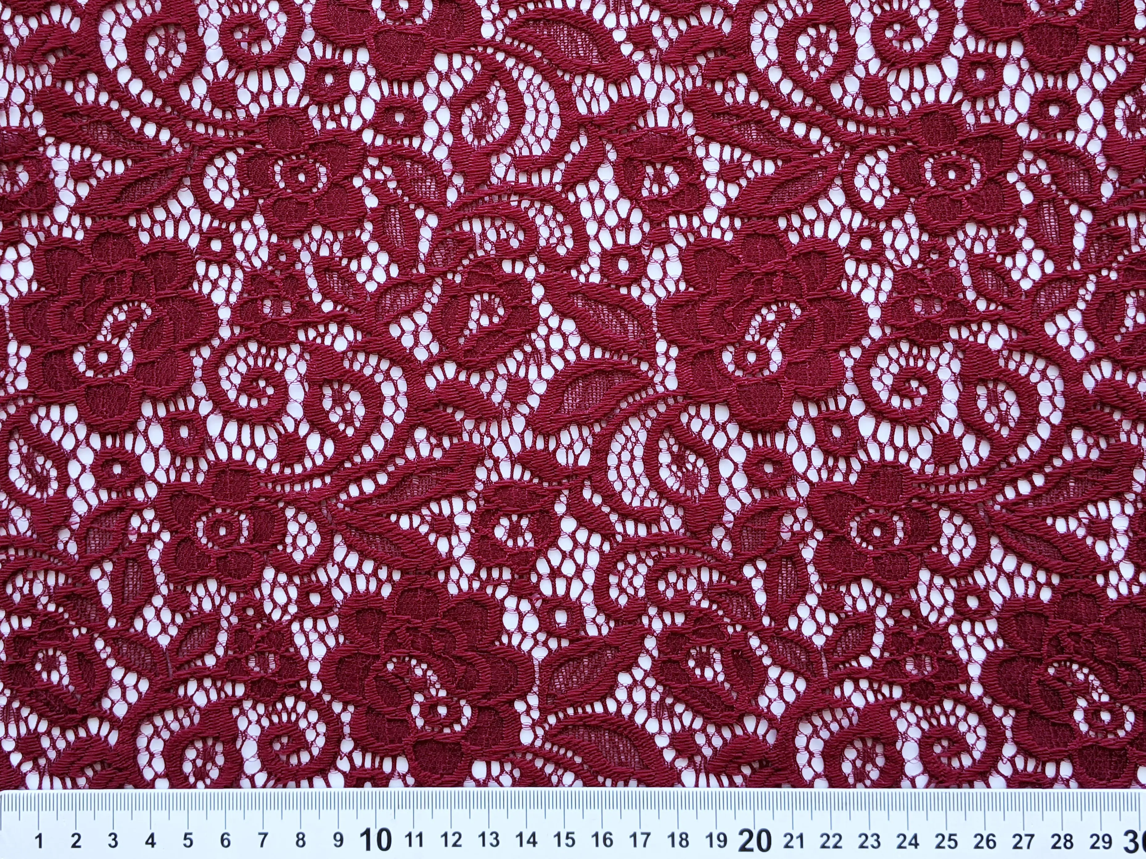 Гіпюр стрейч Класика квіткова ніжність, бордовий (відріз 0,8 м)