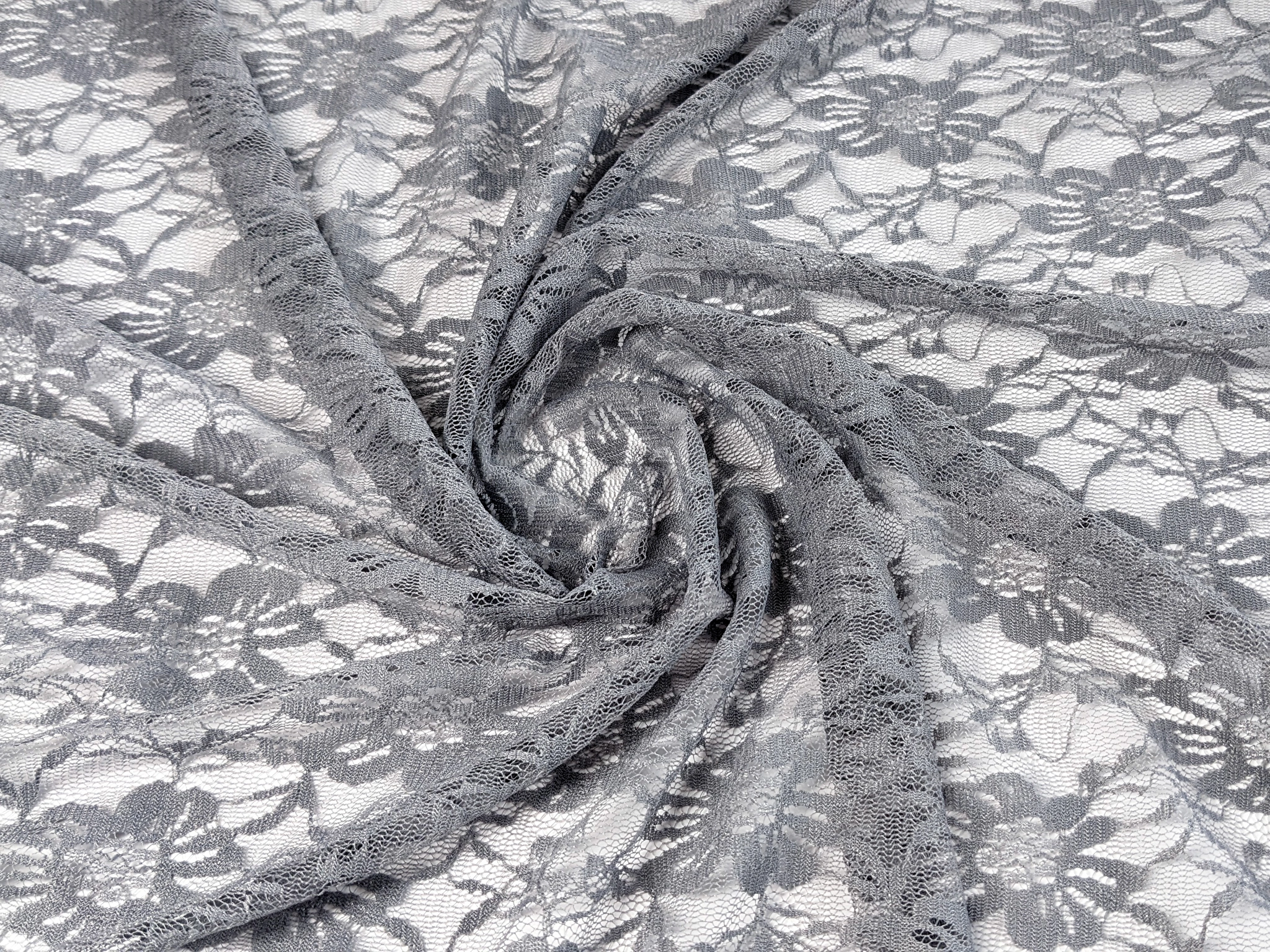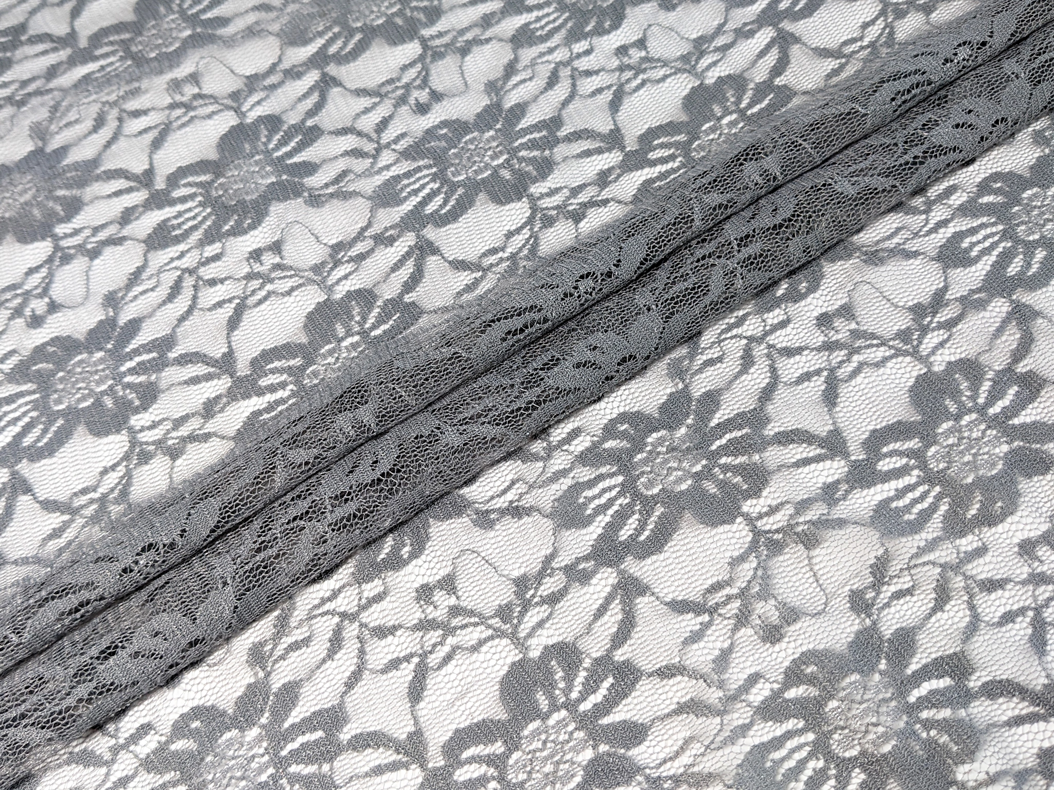 Гіпюр стрейчевий квіткова казка, сірий (відріз 1,3 м)