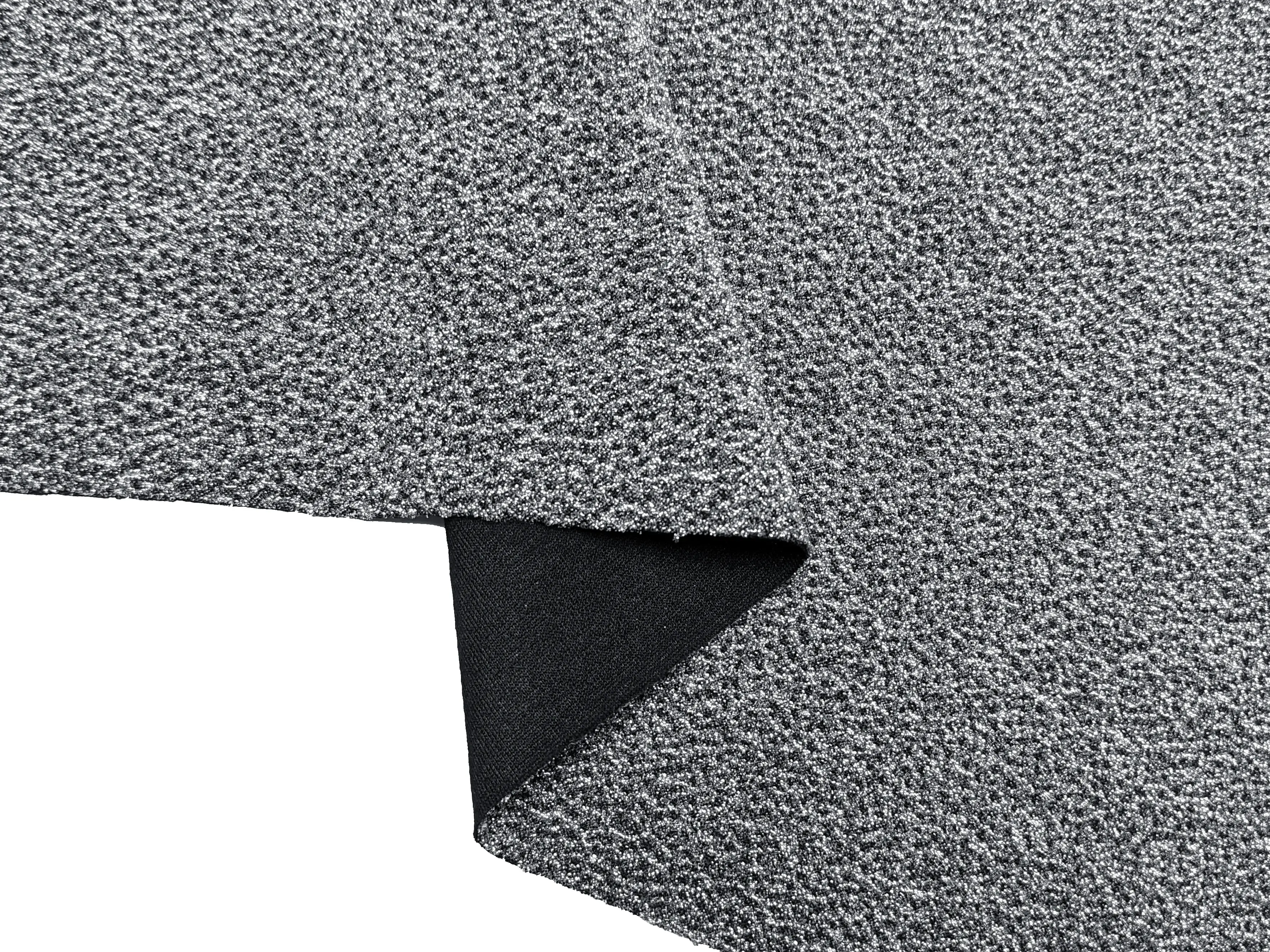 Ківі люрекс – це трикотажне полотно середньої щільності. Лицьова сторона має зернисту структуру через часто вплетені люрексові нитки, які утворюють фактурний ворс і мерехтливий блиск, виворот - гладкий. Тканина еластична, має гарну розтяжність в обидва боки, не мнеться, складки лягають м'яко, непрозора на тілі.