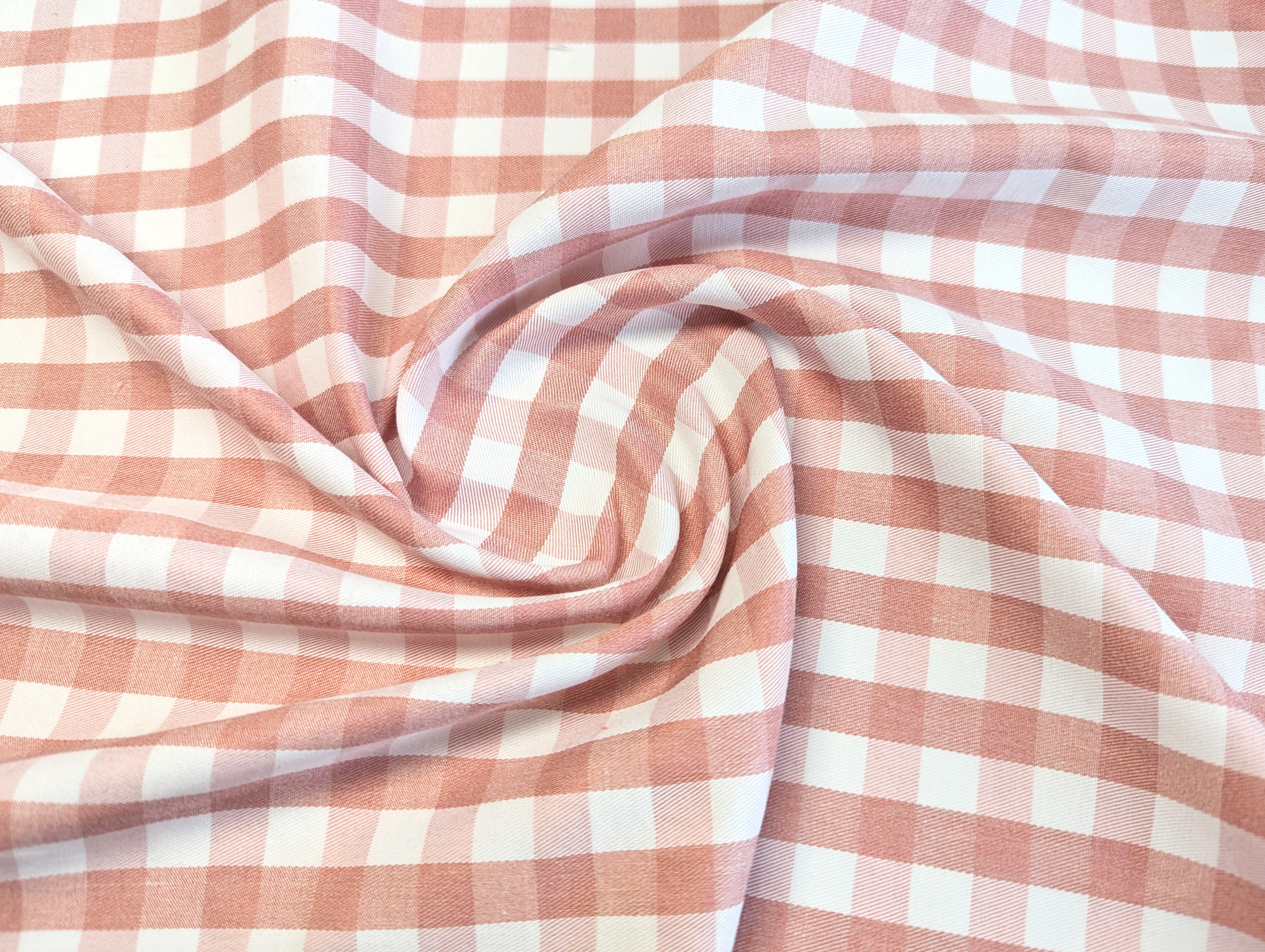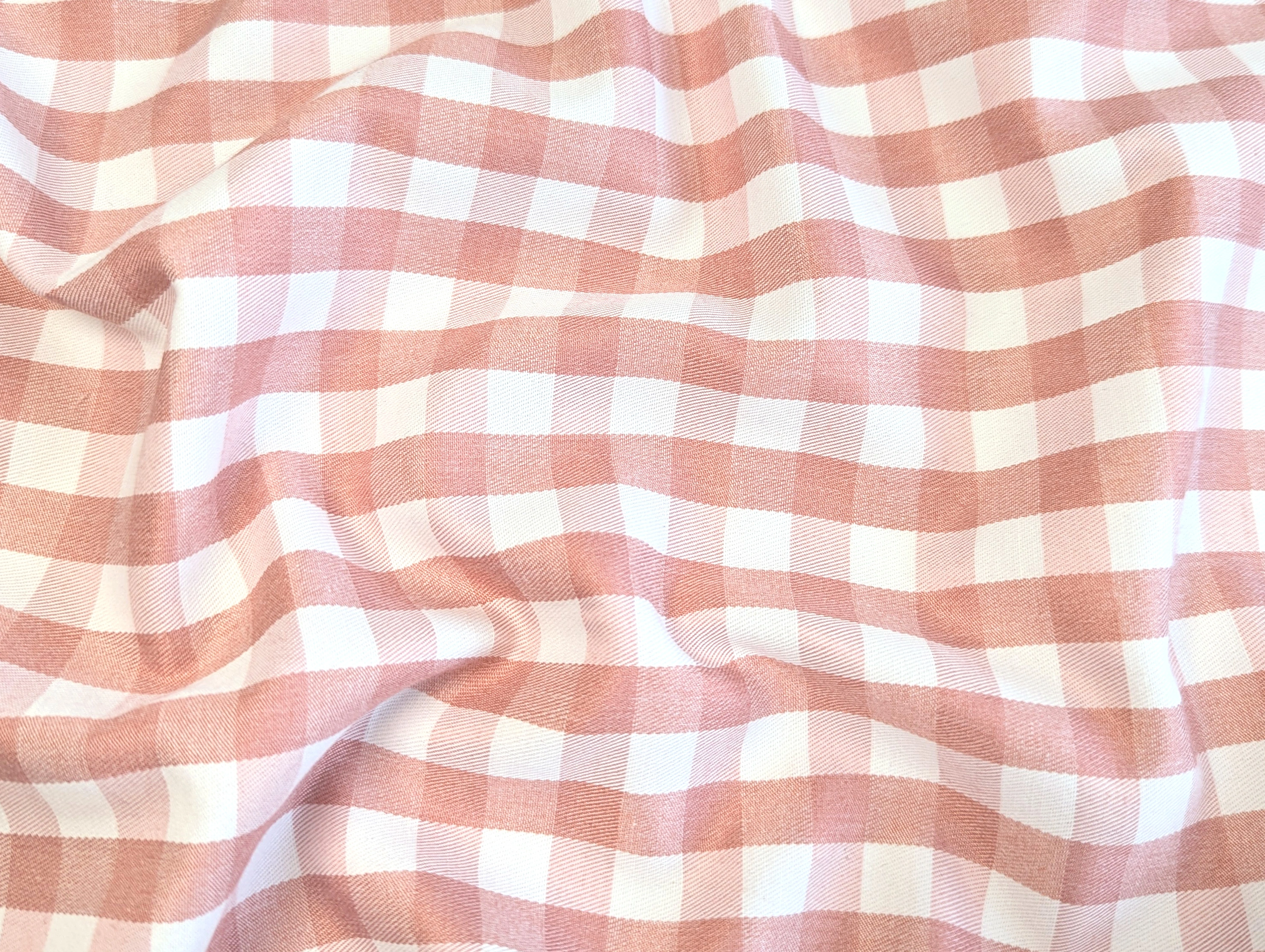 Клітинка сорочкова щільна - це міцна тканина середньої щільності. Лицьова сторона тактильно приємна, м'яка, ніжна, зворотний бік має приємну твілову діагональну структуру. Матеріал майже не заминається, не тягнеться, добре піддається драпіруванню. Тканина не світиться на тілі й не дає силуетного просвіту. По догляду рекомендуємо делікатне прання.
