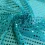 Круглі паєтки нанесені лінією на сітчасту основу по всьому полотну. Тканина не тягнеться, блищить і має просвіт, тому для пошиття суконь або спідниць потрібна додаткова підкладкова тканину. Паєтки щільно прилягають до сітки і не обсипаються. Тканина не мнеться і вимагає делікатного догляду. Застосовується для пошиття виробів танцювально-карнавального напрямку.