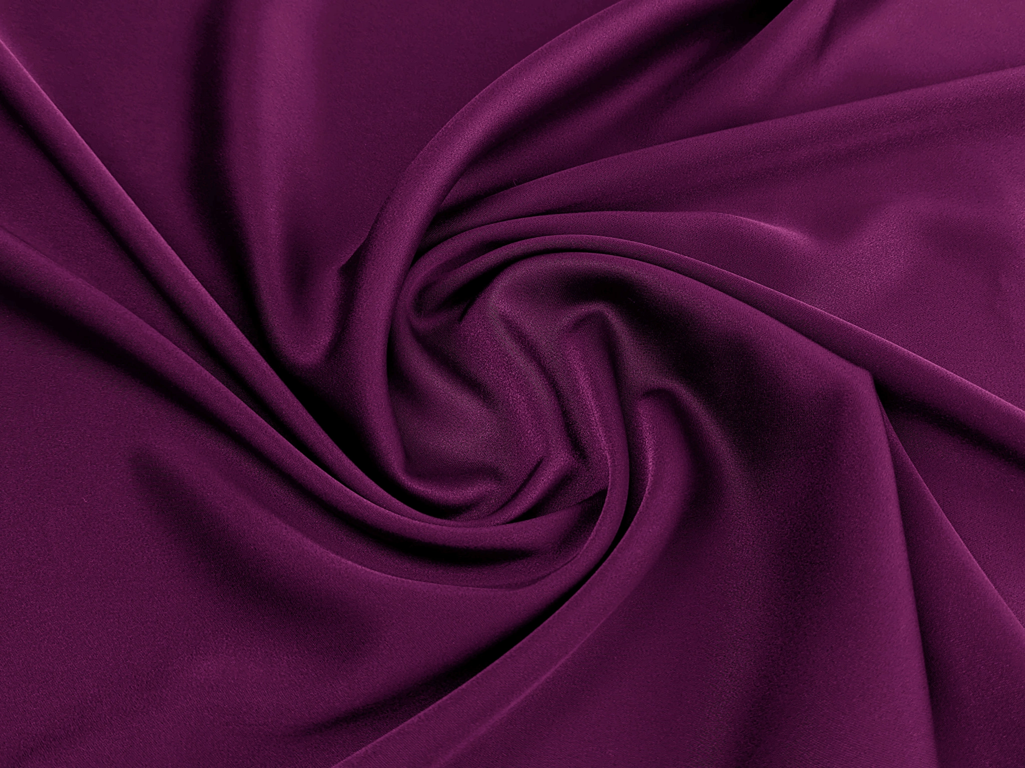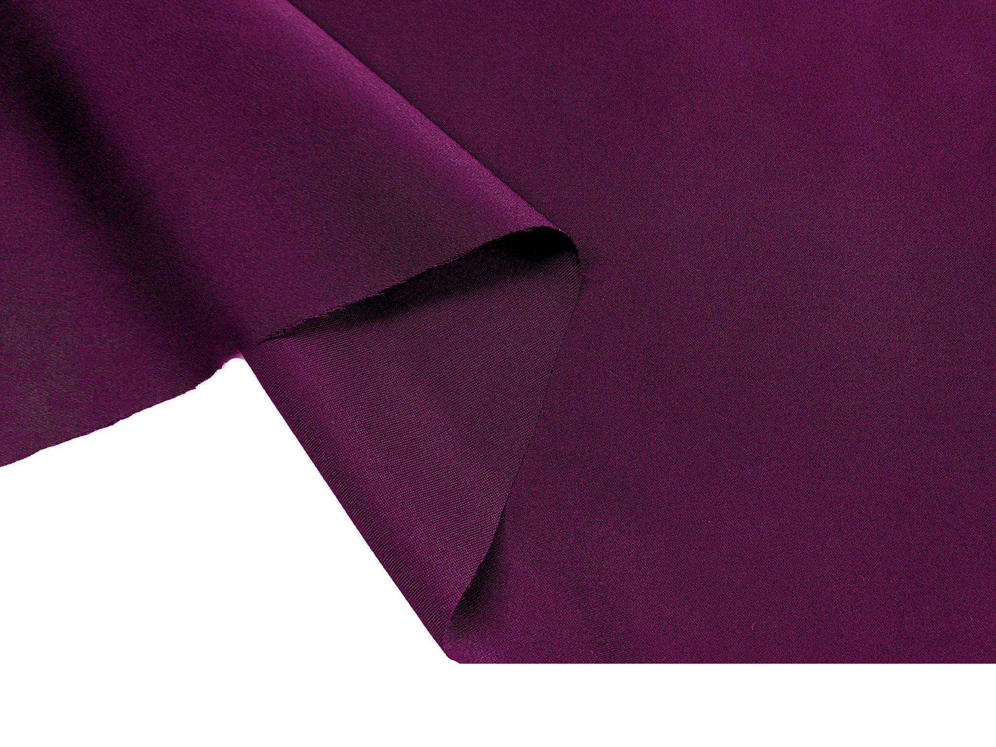 Костюмка Белль - атласний матеріал з гладкою поверхнею та легким, благородним сатиновим блиском. Тканина м'яка на дотик, непрозора на тілі (крім білого та молочного кольорів), не мнеться, легка еластичність присутня по ширині полотна. Матеріал шовковистий, ковзний, легко драпірується, утворюючи м'які складки.