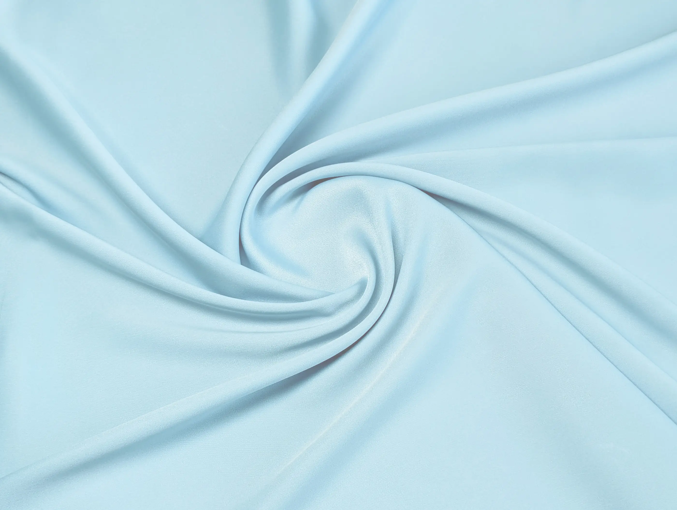 Костюмка Белль - атласний матеріал з гладкою поверхнею та легким, благородним сатиновим блиском. Тканина м'яка на дотик, непрозора на тілі (крім білого та молочного кольорів), не мнеться, легка еластичність присутня по ширині полотна. Матеріал шовковистий, ковзний, легко драпірується, утворюючи м'які складки.