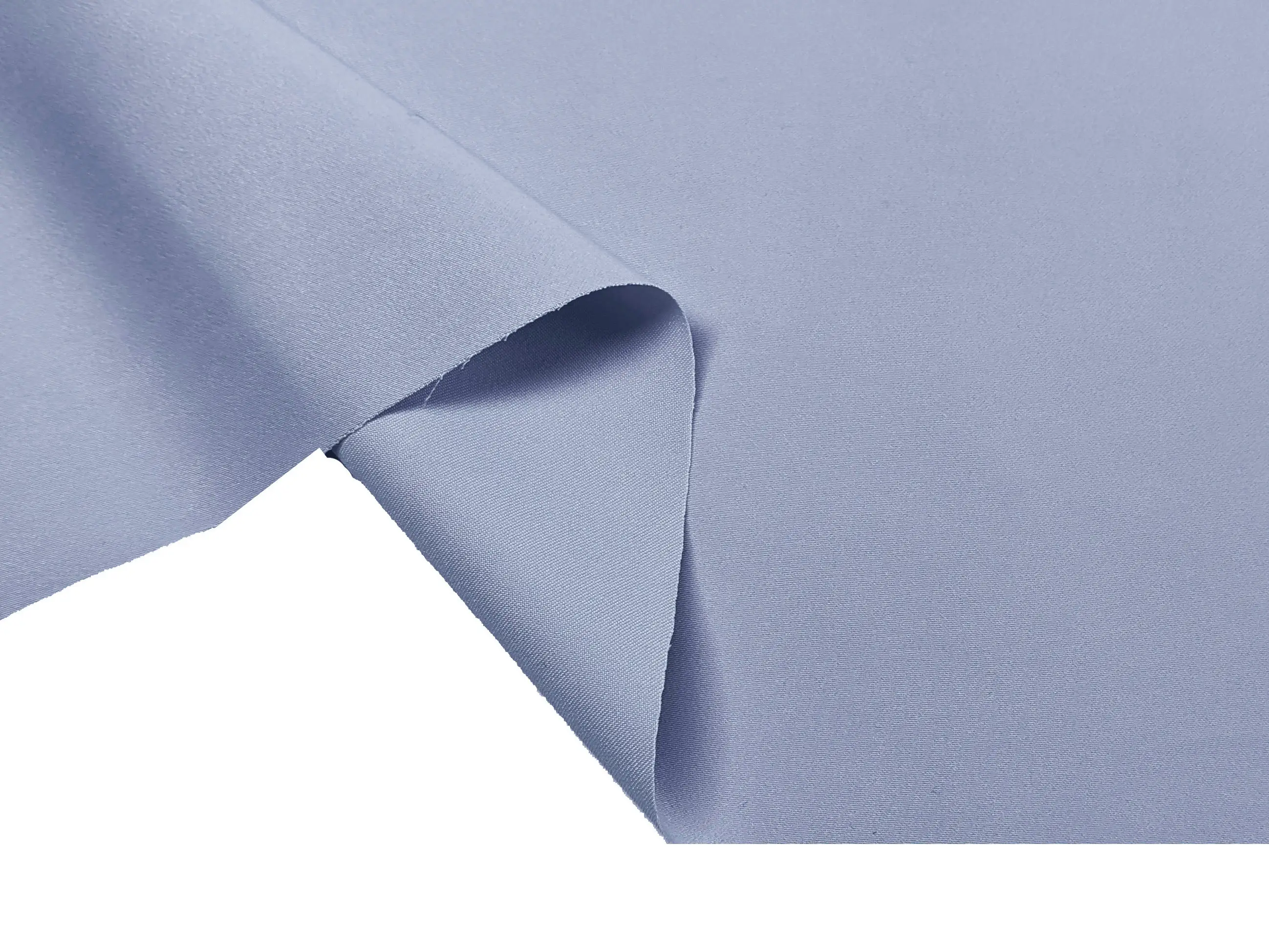 Костюмка Белль - атласний матеріал з гладкою поверхнею та легким, благородним сатиновим блиском. Тканина м'яка на дотик, непрозора на тілі (крім білого та молочного кольорів), не мнеться, легка еластичність присутня по ширині полотна. Матеріал шовковистий, ковзний, легко драпірується, утворюючи м'які складки.