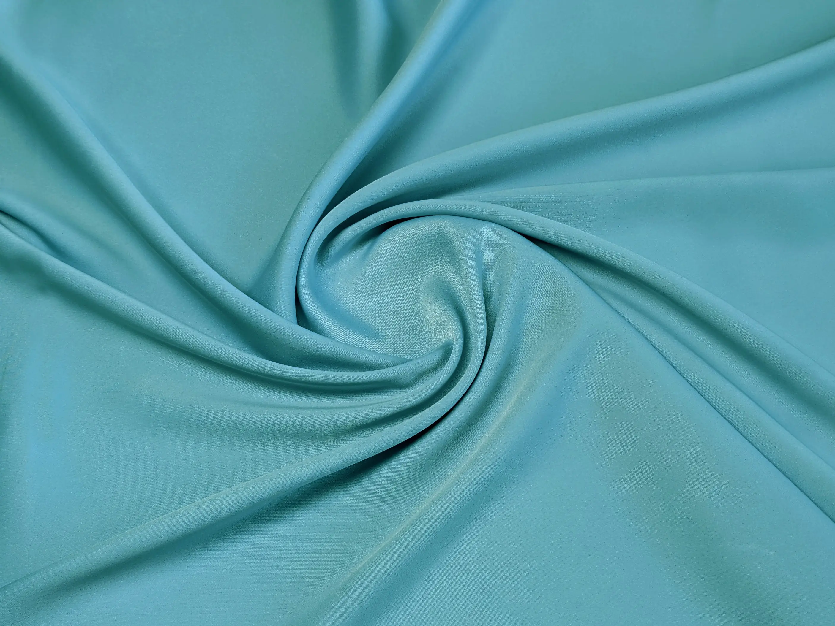 Костюмка Белль - атласний матеріал з гладкою поверхнею та легким, благородним сатиновим блиском. Тканина м'яка на дотик, непрозора на тілі (крім білого та молочного кольорів), не мнеться, легка еластичність присутня по ширині полотна. Матеріал шовковистий, ковзний, легко драпірується, утворюючи м'які складки.