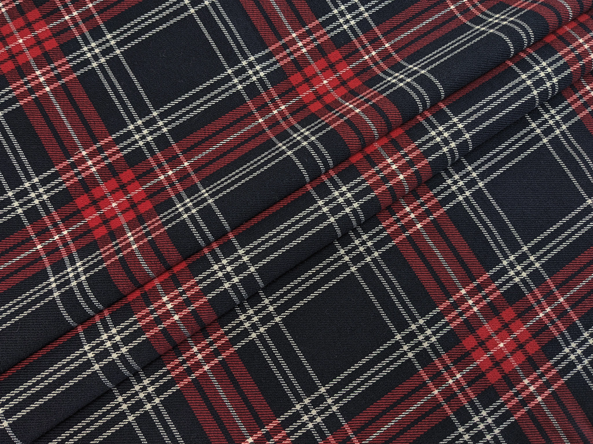 Клітина Шотландія – костюмна тканина середньої щільності. На дотик м'яка, має трохи шорстку фактуру і дрібний діагональний рубчик. У складі матеріалу присутні натуральні та синтетичні волокна. Костюмний тіар має легку еластичність по ширині полотна, не мнеться, добре драпірується.
