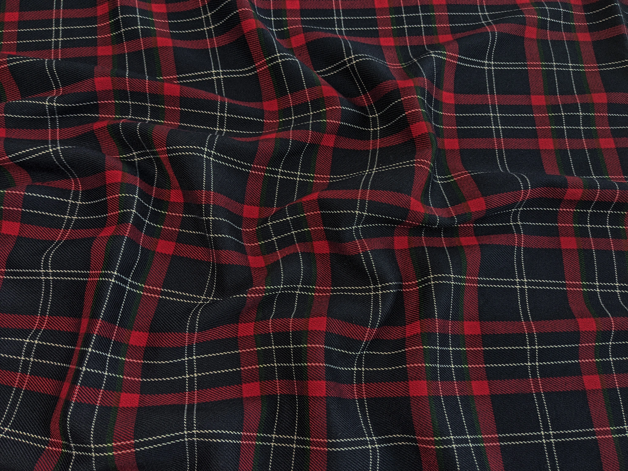 Клітина Шотландія – костюмна тканина середньої щільності. На дотик м'яка, має трохи шорстку фактуру і дрібний діагональний рубчик. У складі матеріалу присутні натуральні та синтетичні волокна. Костюмний тіар має легку еластичність по ширині полотна, не мнеться, добре драпірується.