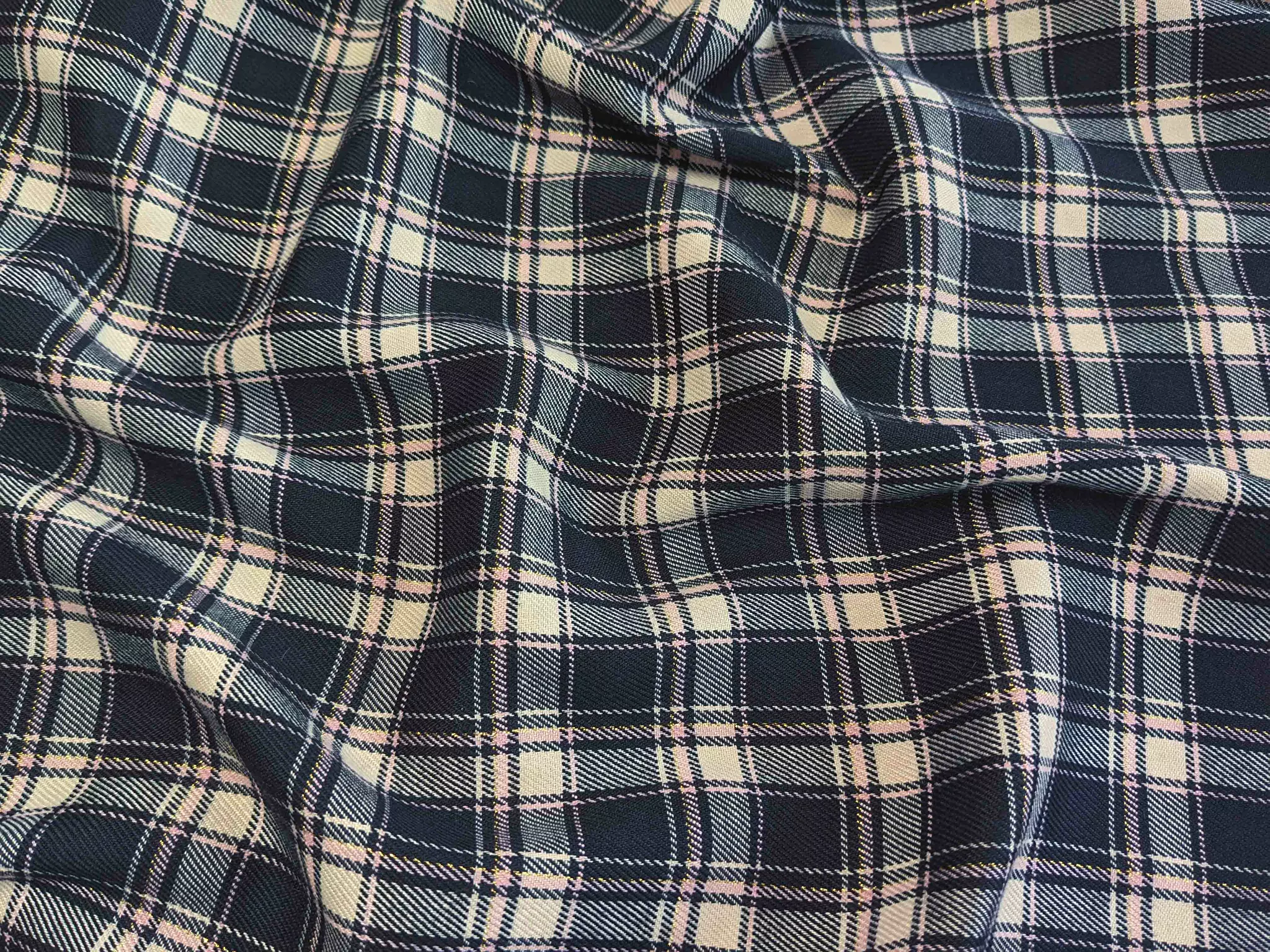 Костюмний тіар клітинка з люрексом, темно-синій з бежевим