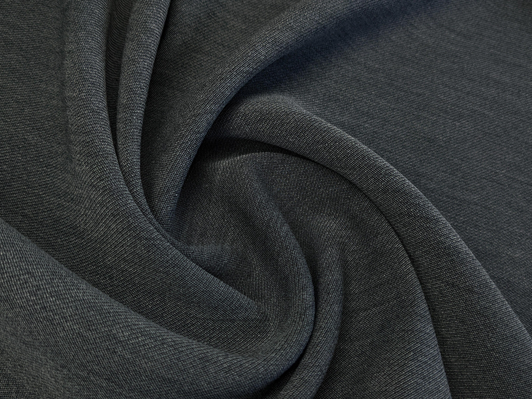 Креп-костюмка Рено має рубчикову структуру з лицьового боку. Тканина щільна, приємна на дотик, добре тримає форму, злегка зминається, трохи тягнеться як по ширині, так і по довжині.