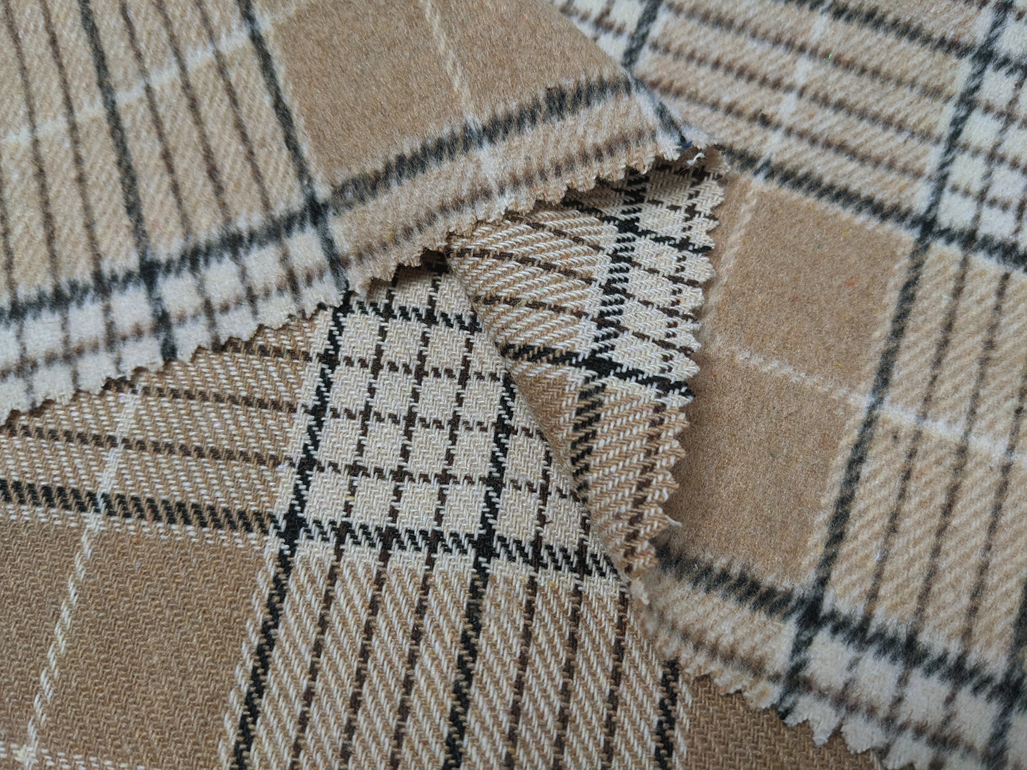 Клітина Шенон – щільне, костюмне полотно, поверхня якого покрита м'яким, ніжним ворсом. Тканина комфортна, не колка, м'яка і приємна на дотик. Матеріал не тягнеться, добре драпірується, трохи зминається.