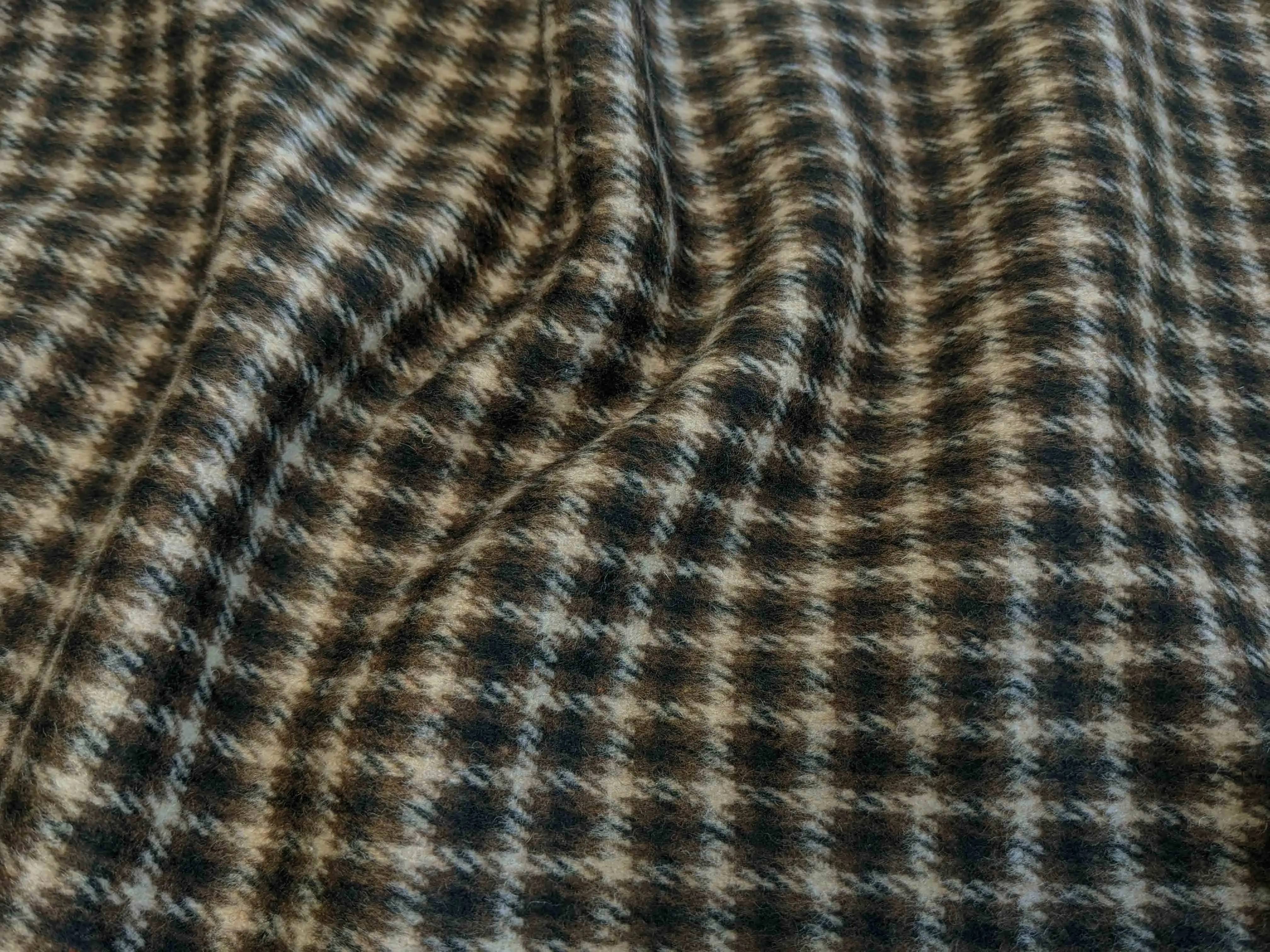 Клітина Шенон – щільне, костюмне полотно, поверхня якого покрита м'яким, ніжним ворсом. Тканина комфортна, не колка, м'яка і приємна на дотик. Матеріал не тягнеться, добре драпірується, трохи зминається.