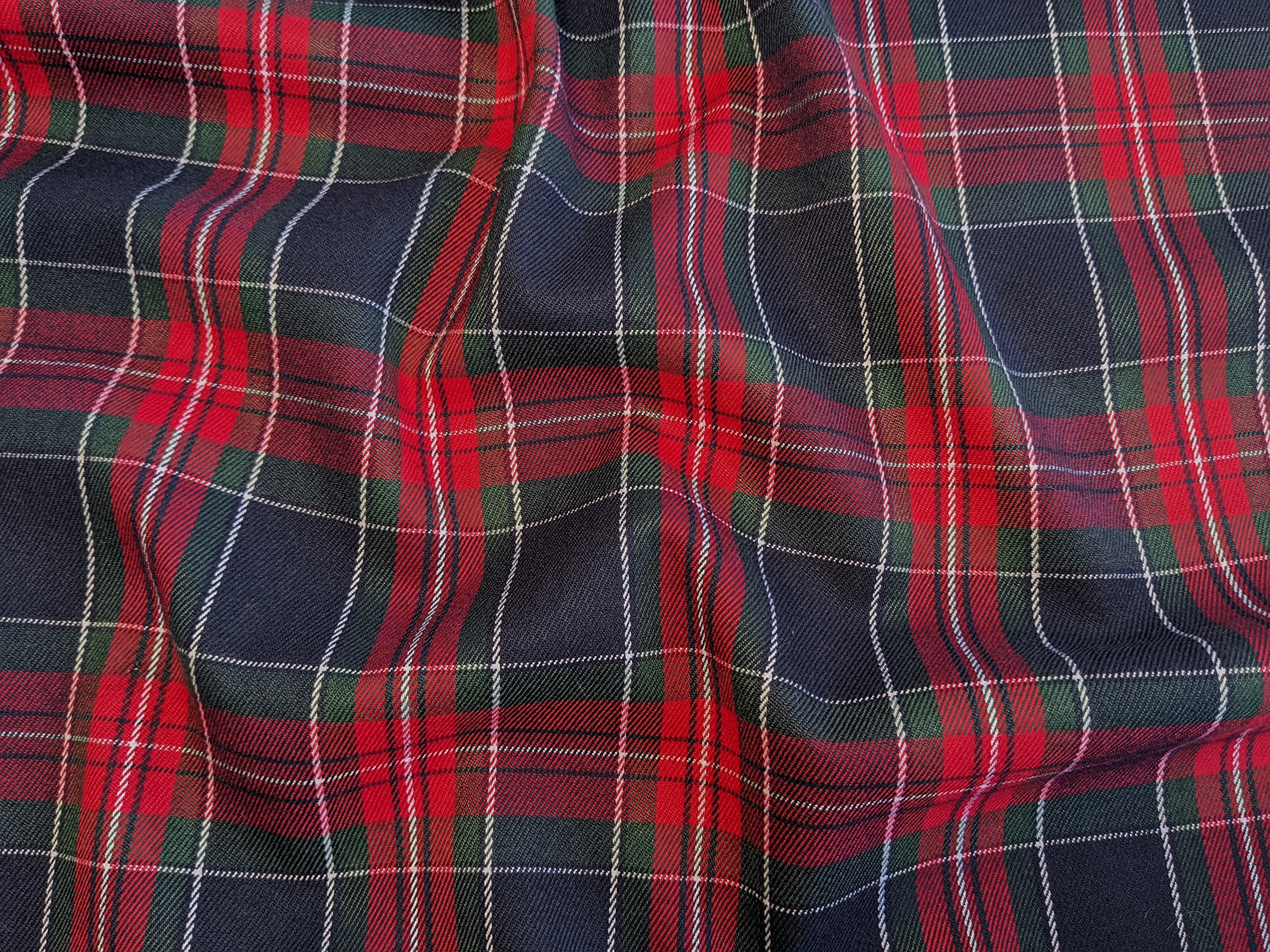 Клітина Шотландія – костюмна тканина середньої щільності. На дотик м'яка, має трохи шорстку фактуру і дрібний діагональний рубчик. У складі матеріалу присутні натуральні та синтетичні волокна. Костюмний тіар має легку еластичність по ширині полотна, не мнеться, добре драпірується.