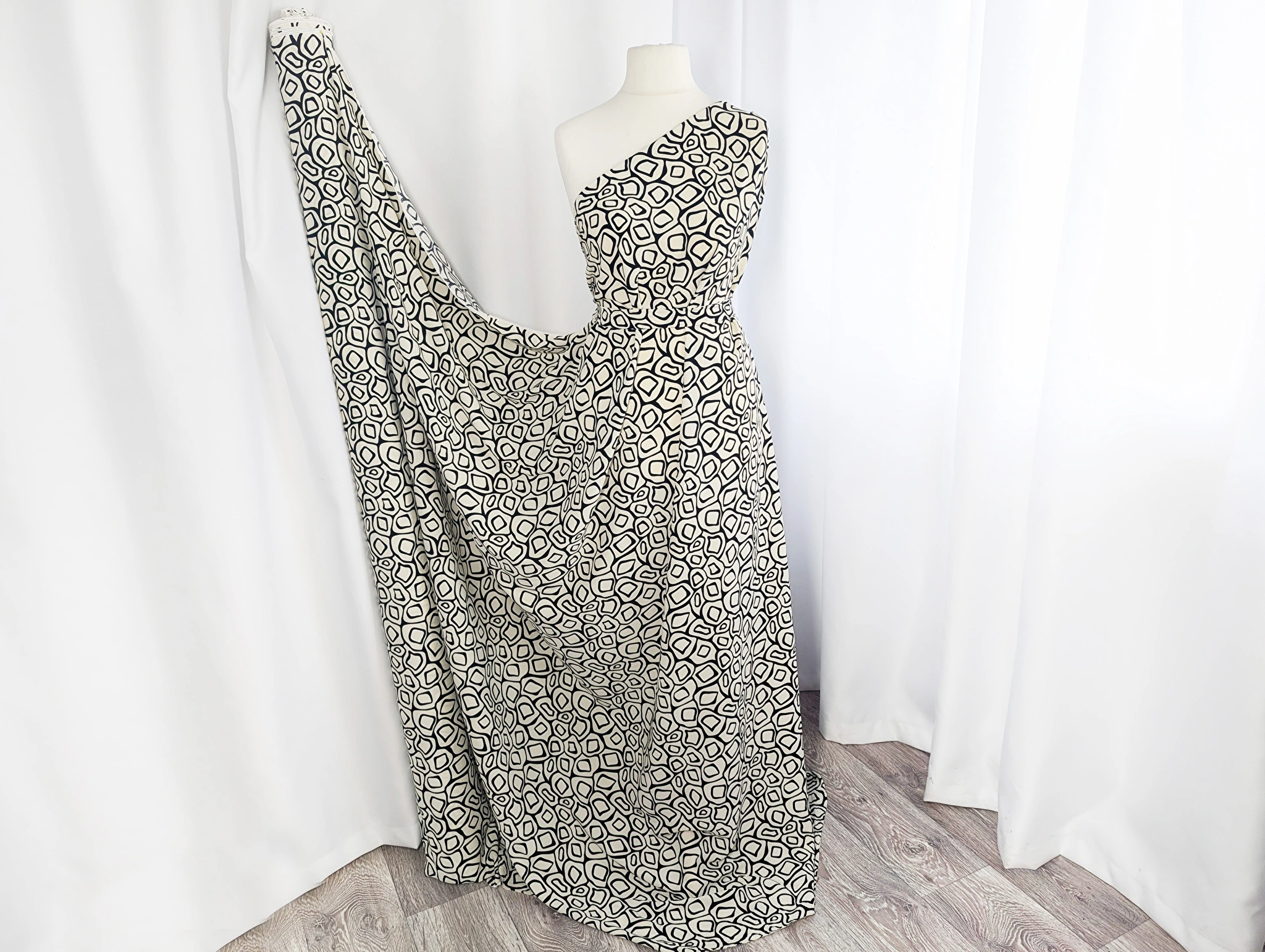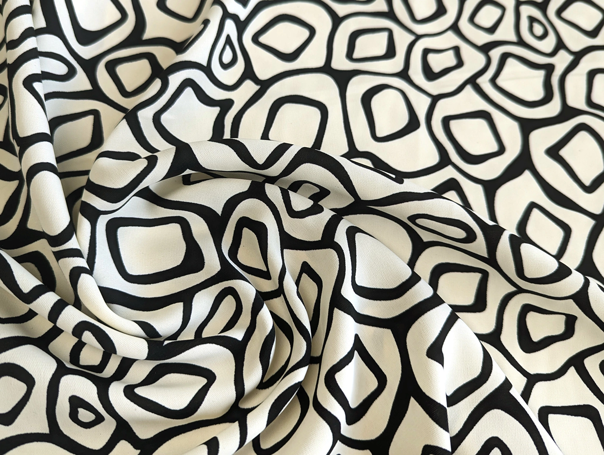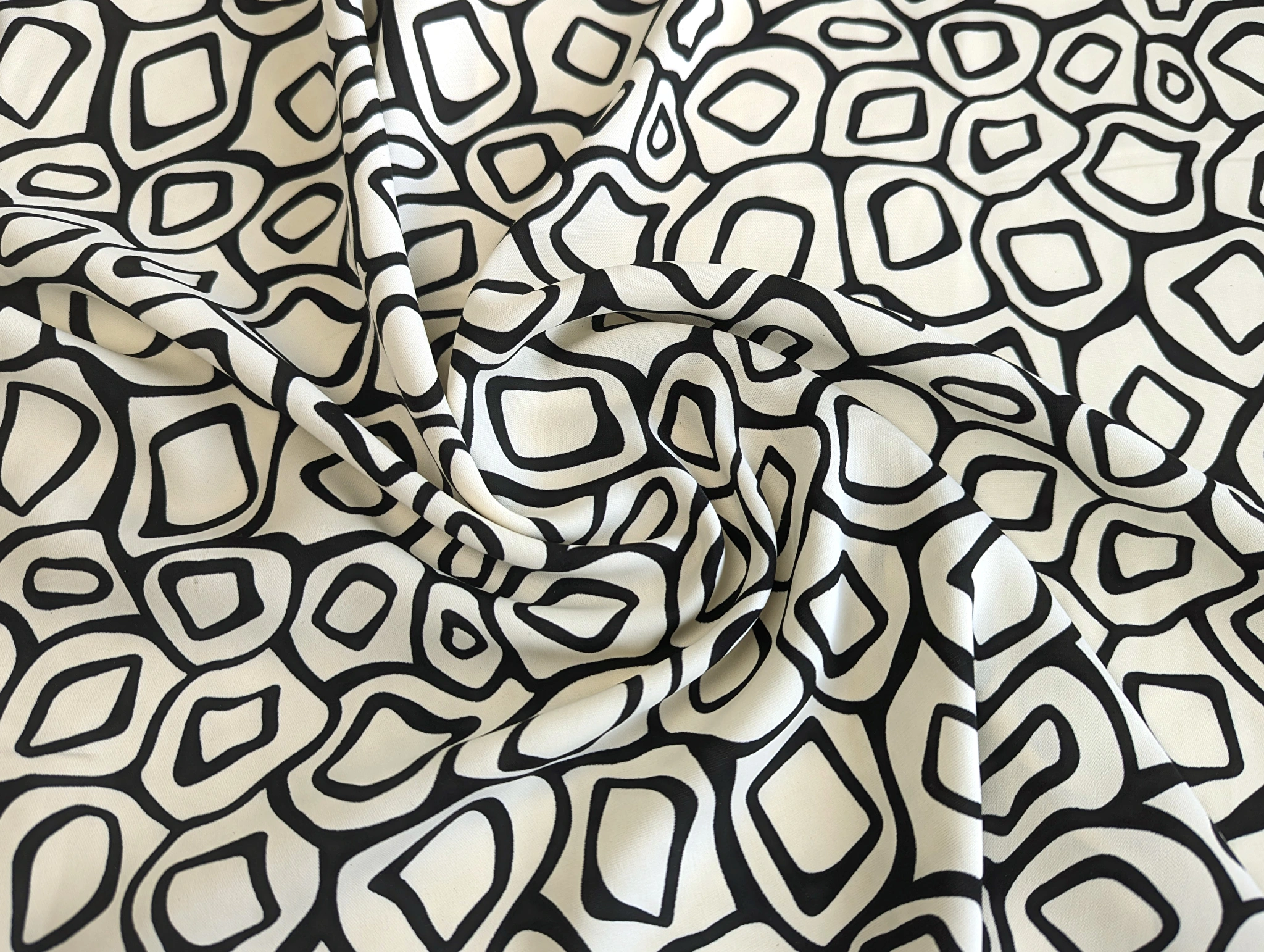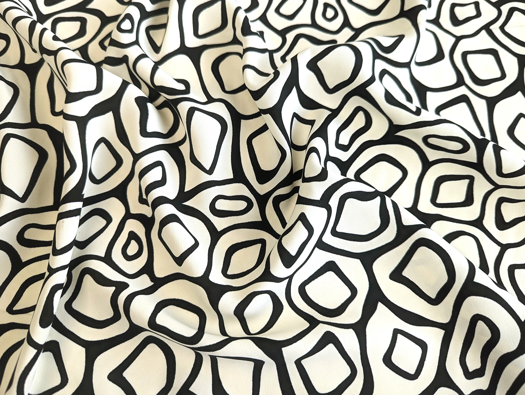 Костюмка шовковиста геометрична сітка, кремовий з чорним