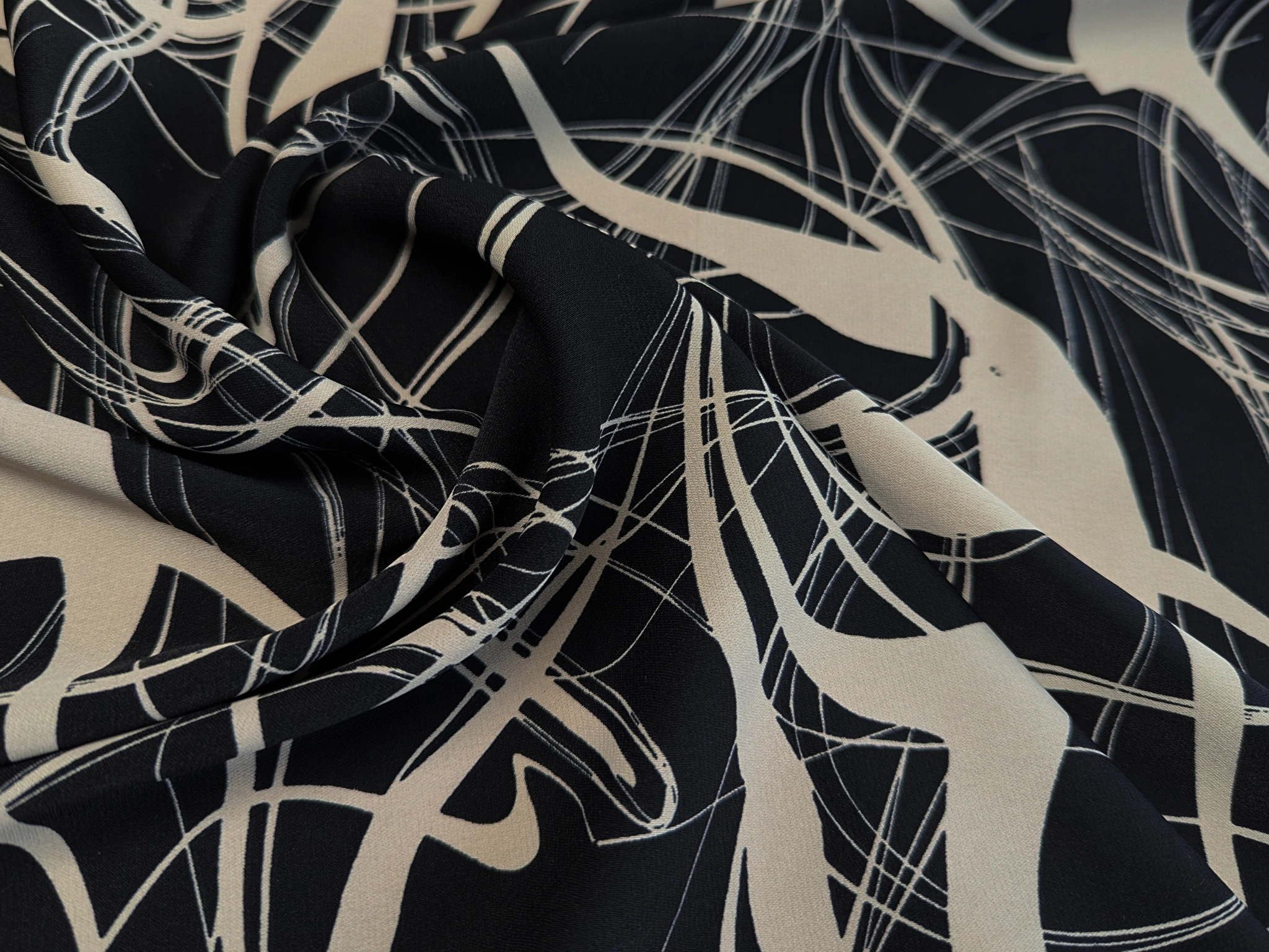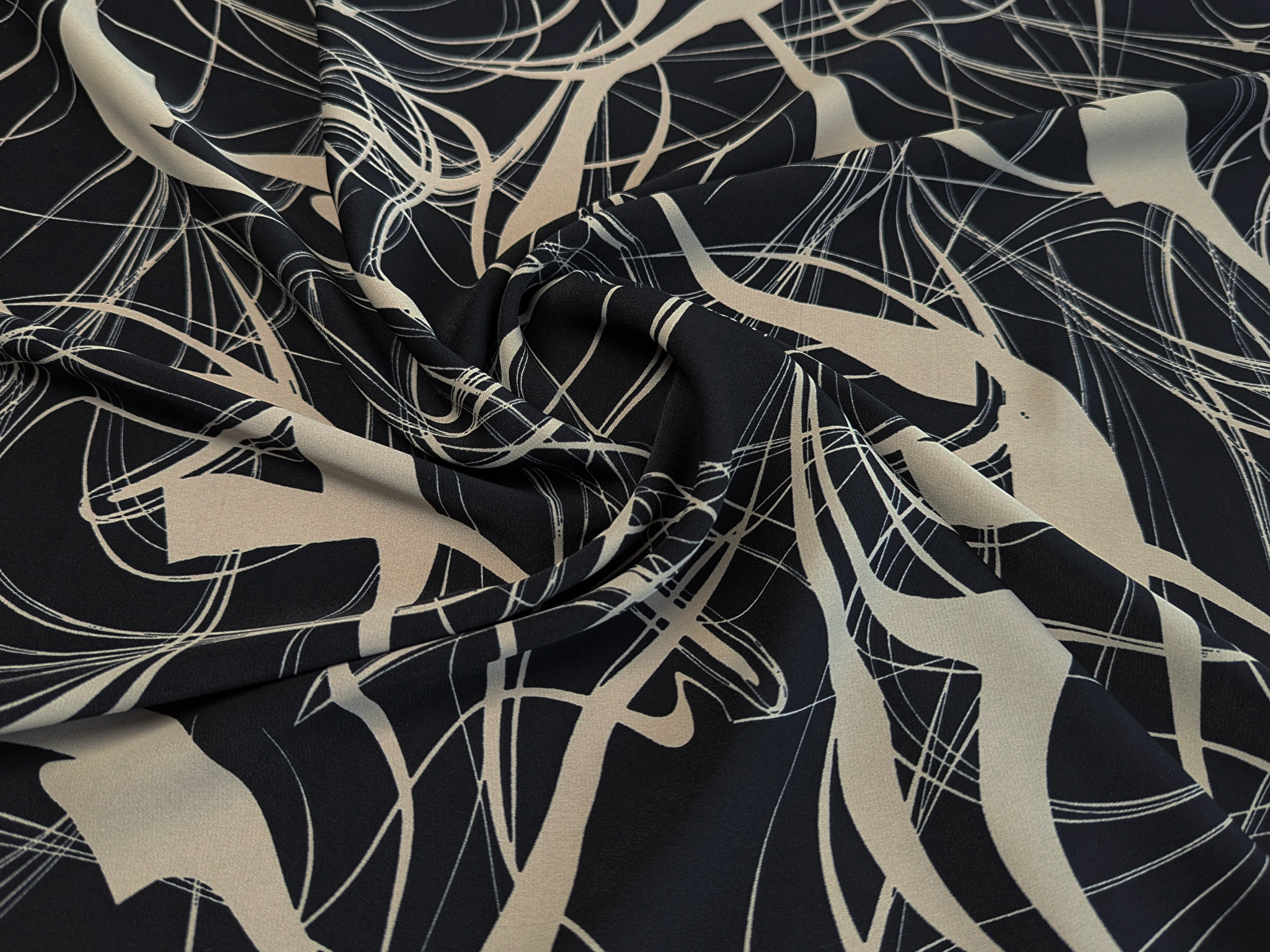 Костюмка шовковиста абстракція, чорний з бежевим