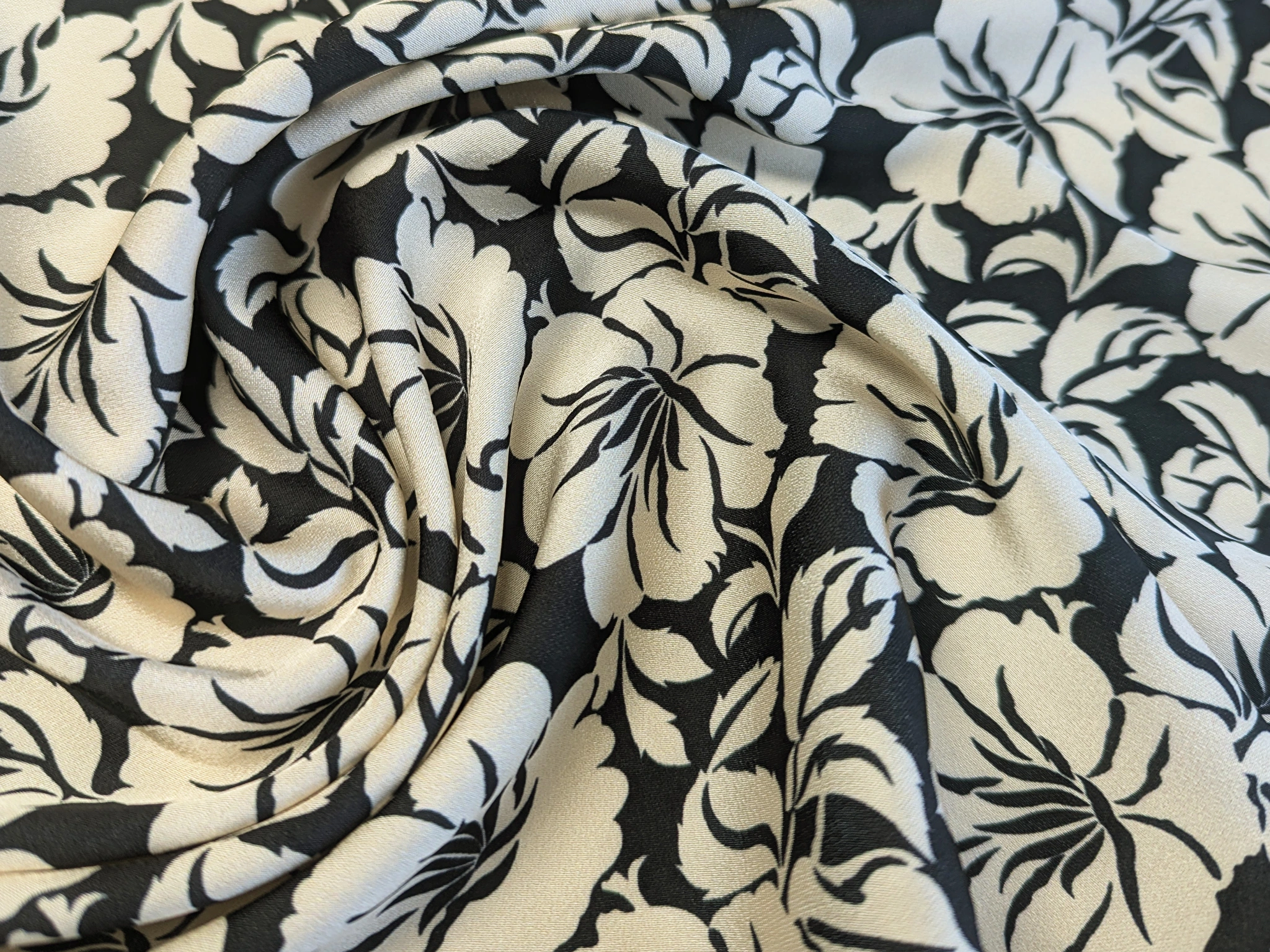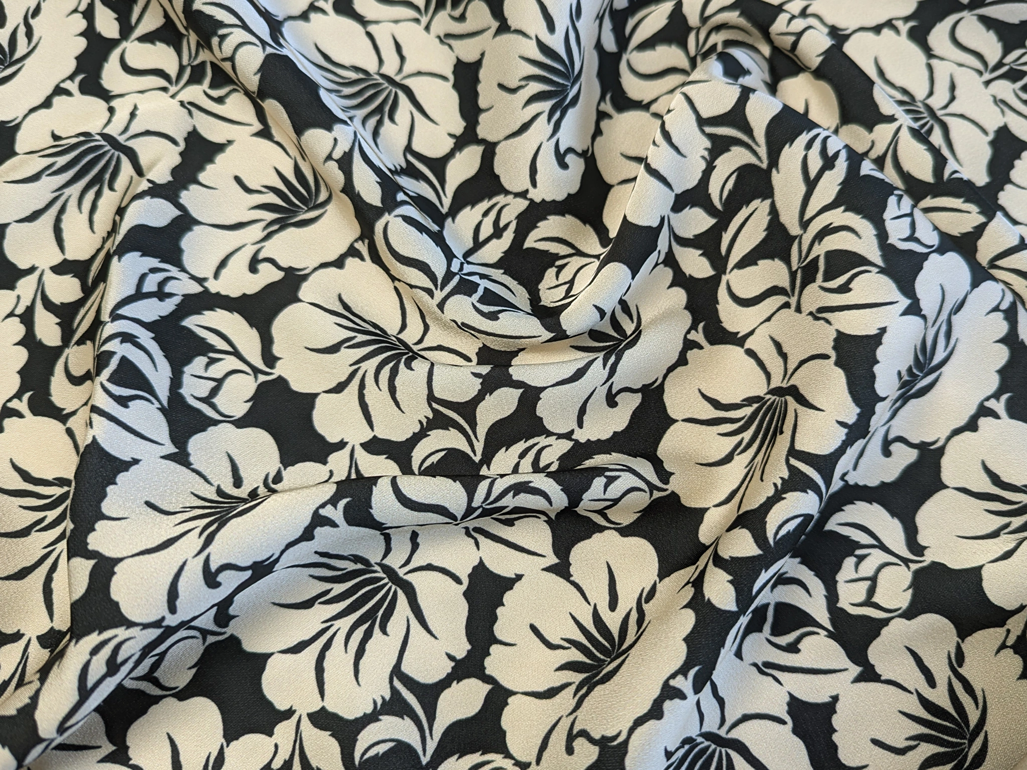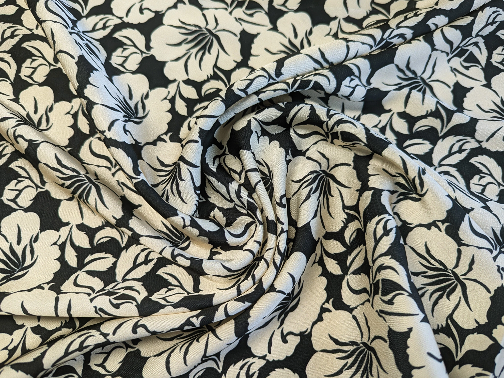 Тканина м'яка на дотик, не прозора на тілі (крім білих та молочних кольорів), не заминається, присутня легка еластичність по ширині полотна. Матеріал ковзний, шовковистий, легко спадає та драпірується, утворюючи легкі складки.