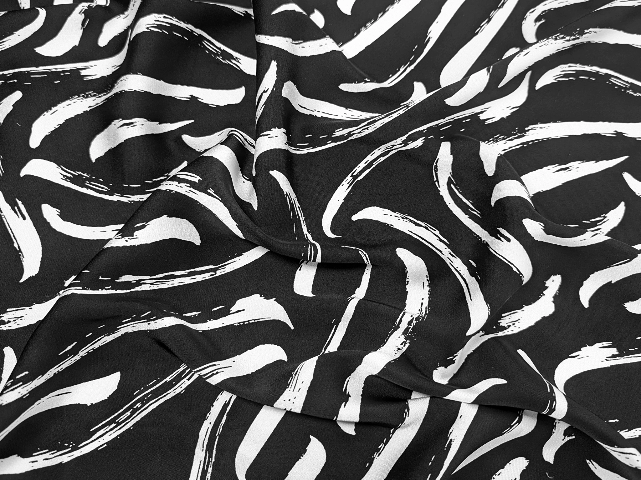 Тканина м'яка на дотик, не прозора на тілі (крім білих та молочних кольорів), не заминається, присутня легка еластичність по ширині полотна. Матеріал ковзний, шовковистий, легко спадає та драпірується, утворюючи легкі складки.
