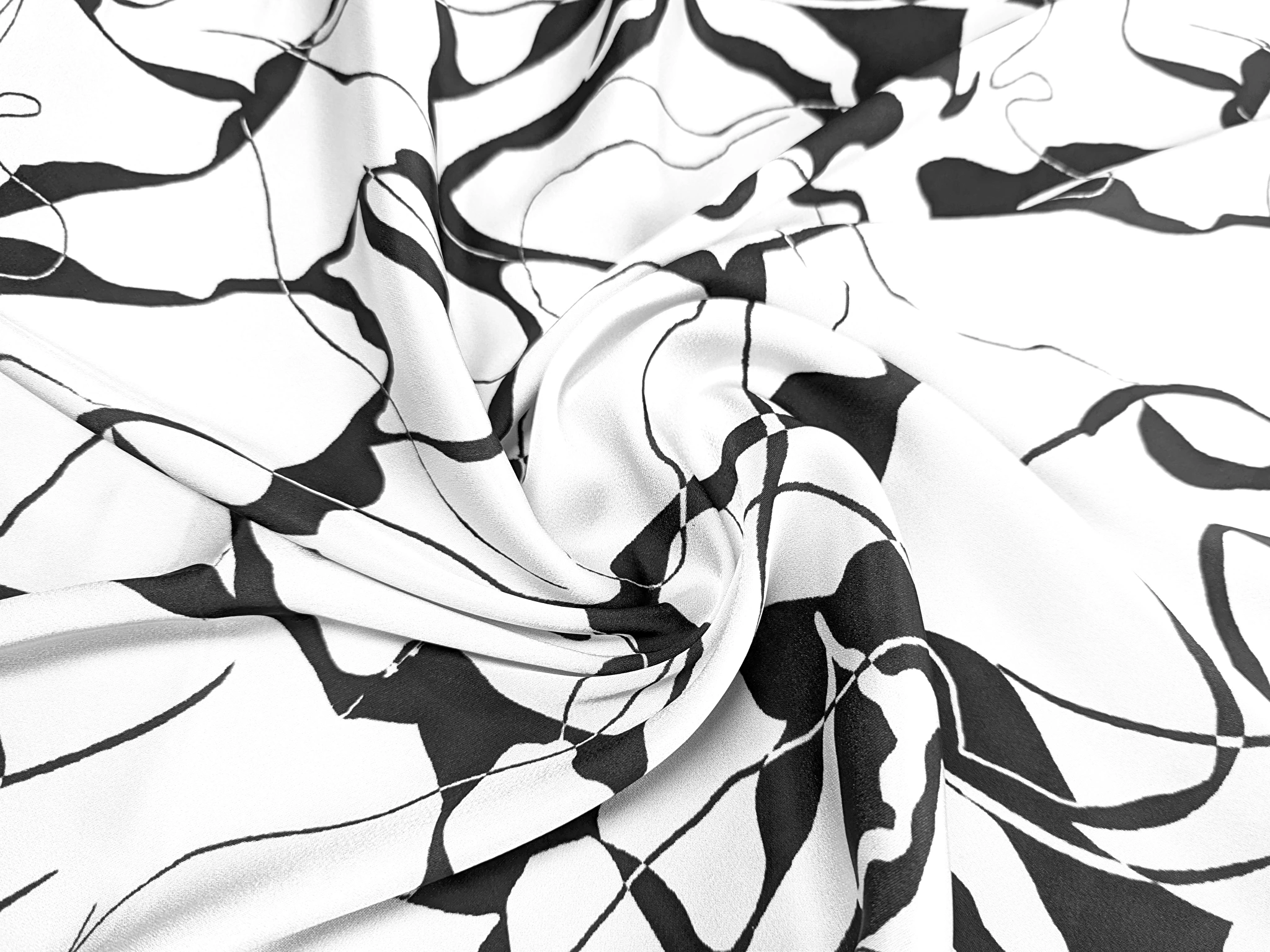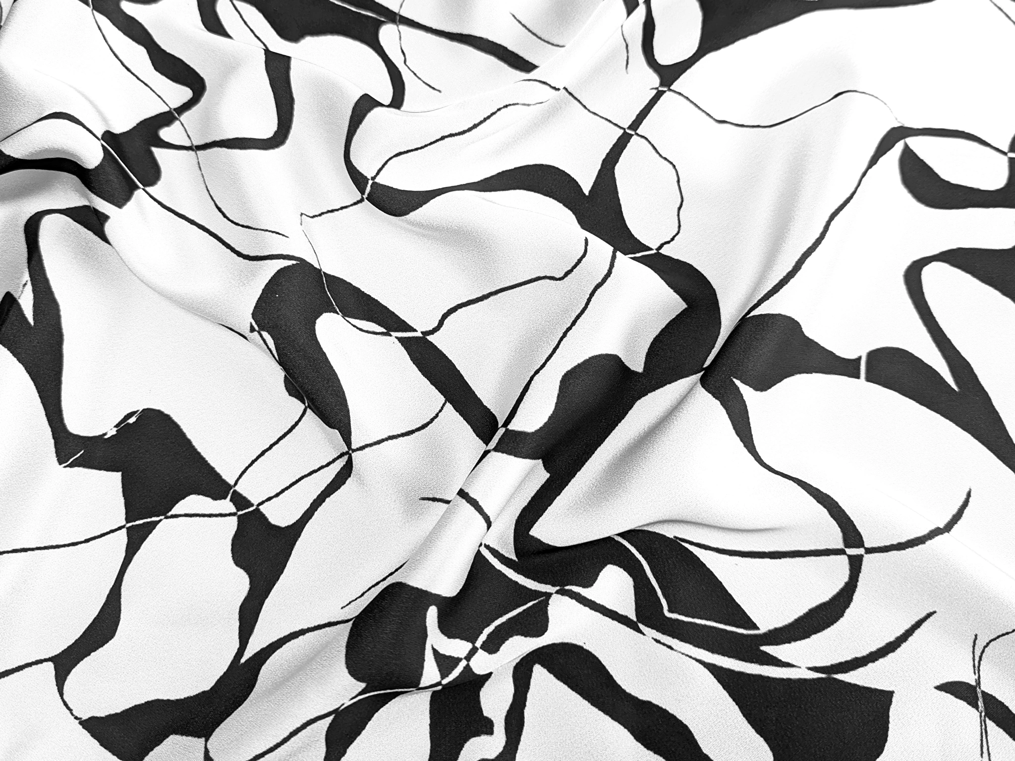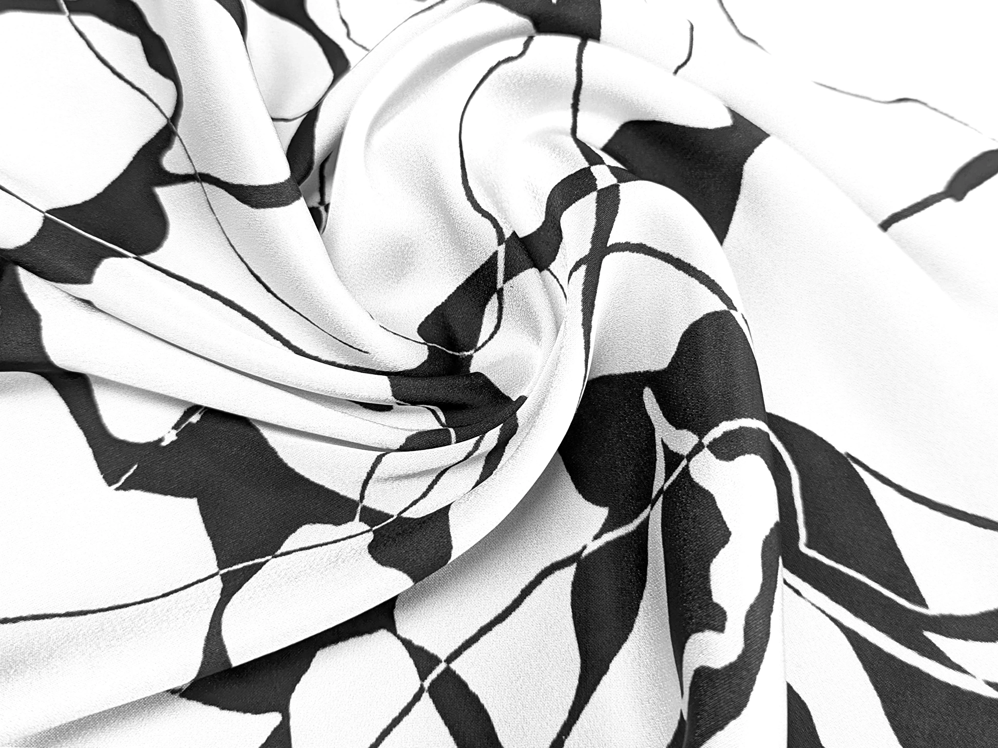 Тканина м'яка на дотик, не прозора на тілі (крім білих та молочних кольорів), не заминається, присутня легка еластичність по ширині полотна. Матеріал ковзний, шовковистий, легко спадає та драпірується, утворюючи легкі складки.