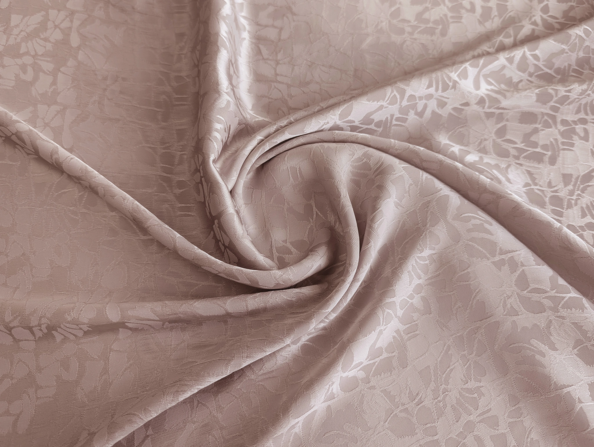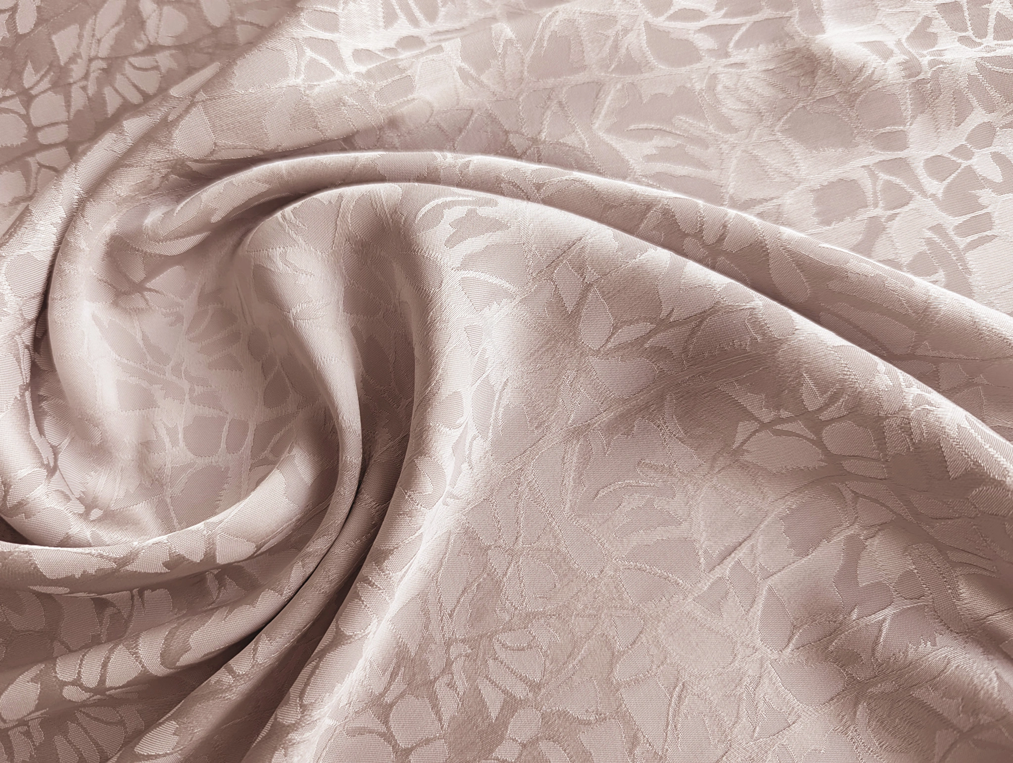 Костюмна Бель жакард - тонкий, струмливий шовковистий жакард з благородним сатиновим блиском. Тканина м'яка на дотик, непрозора на тілі, не мнеться, легка еластичність присутня по ширині полотна. Матеріал ковзний, легко драпірується, утворюючи м'які складки.