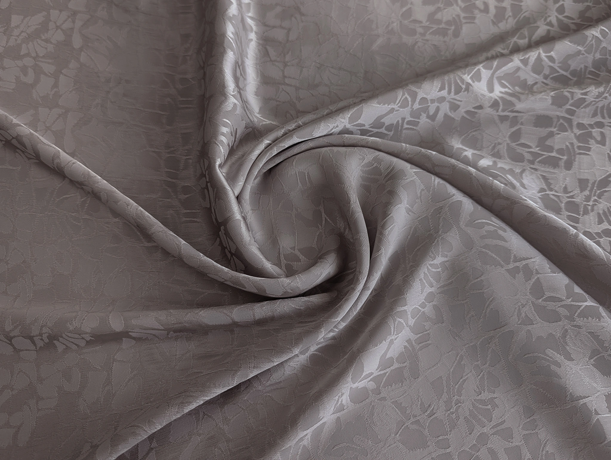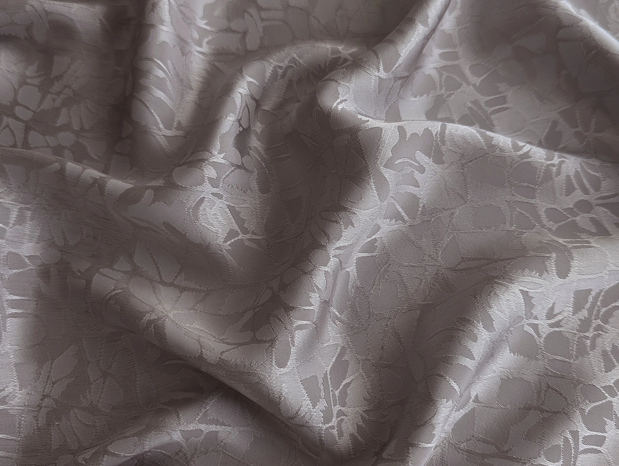 Костюмна Бель жакард - тонкий, струмливий шовковистий жакард з благородним сатиновим блиском. Тканина м'яка на дотик, непрозора на тілі, не мнеться, легка еластичність присутня по ширині полотна. Матеріал ковзний, легко драпірується, утворюючи м'які складки.