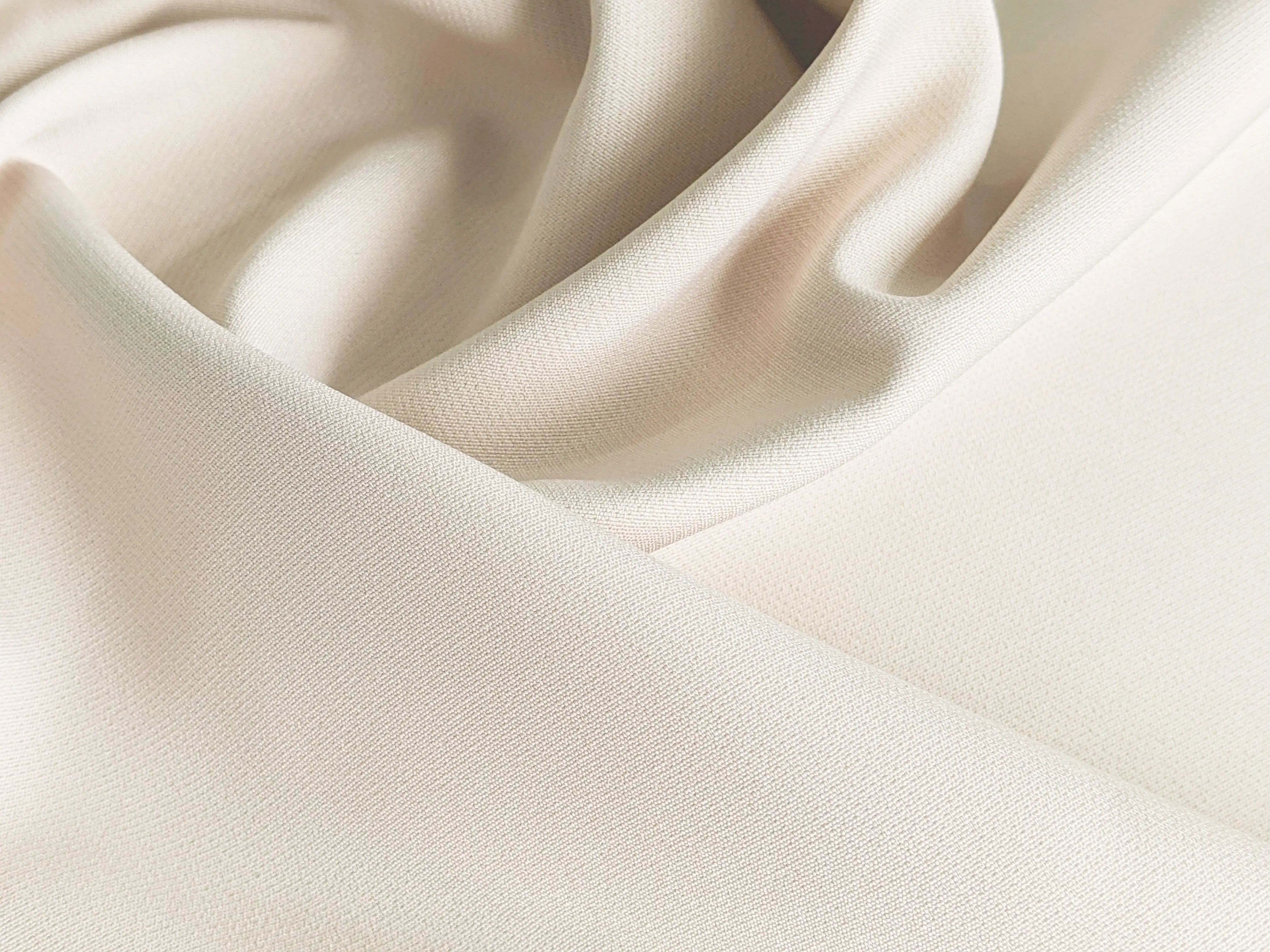 Креп-костюмка Біанка має ледь помітну рубчікову структуру по лицьовій стороні. Тканина середньої щільності, трохи еластична, не просвічується, добре лягає в складки і тримає форму, практично не мнеться. Застосовується для пошиття комбінезонів, костюмів, суконь, брюк, спідниць та шкільної форми.