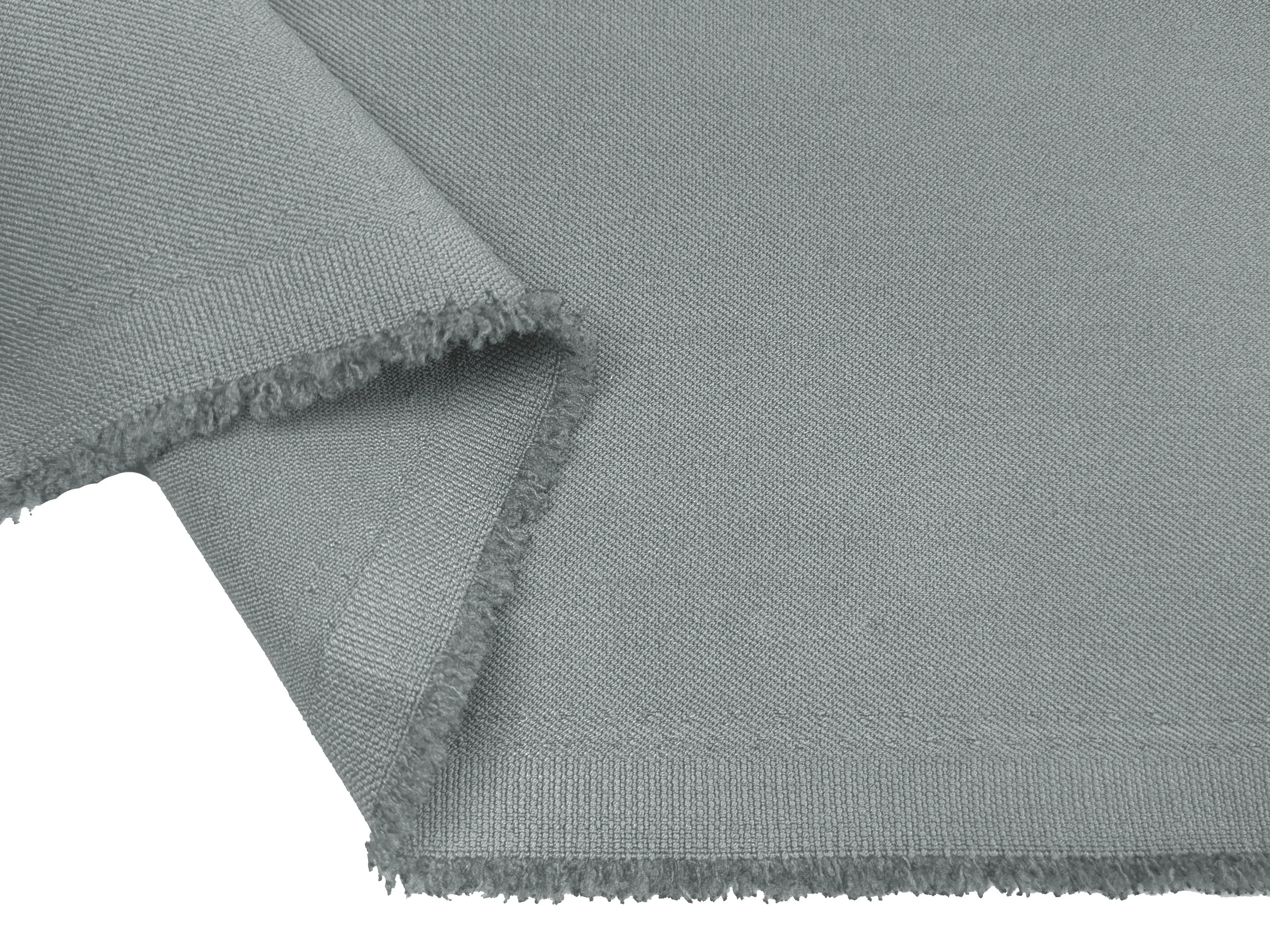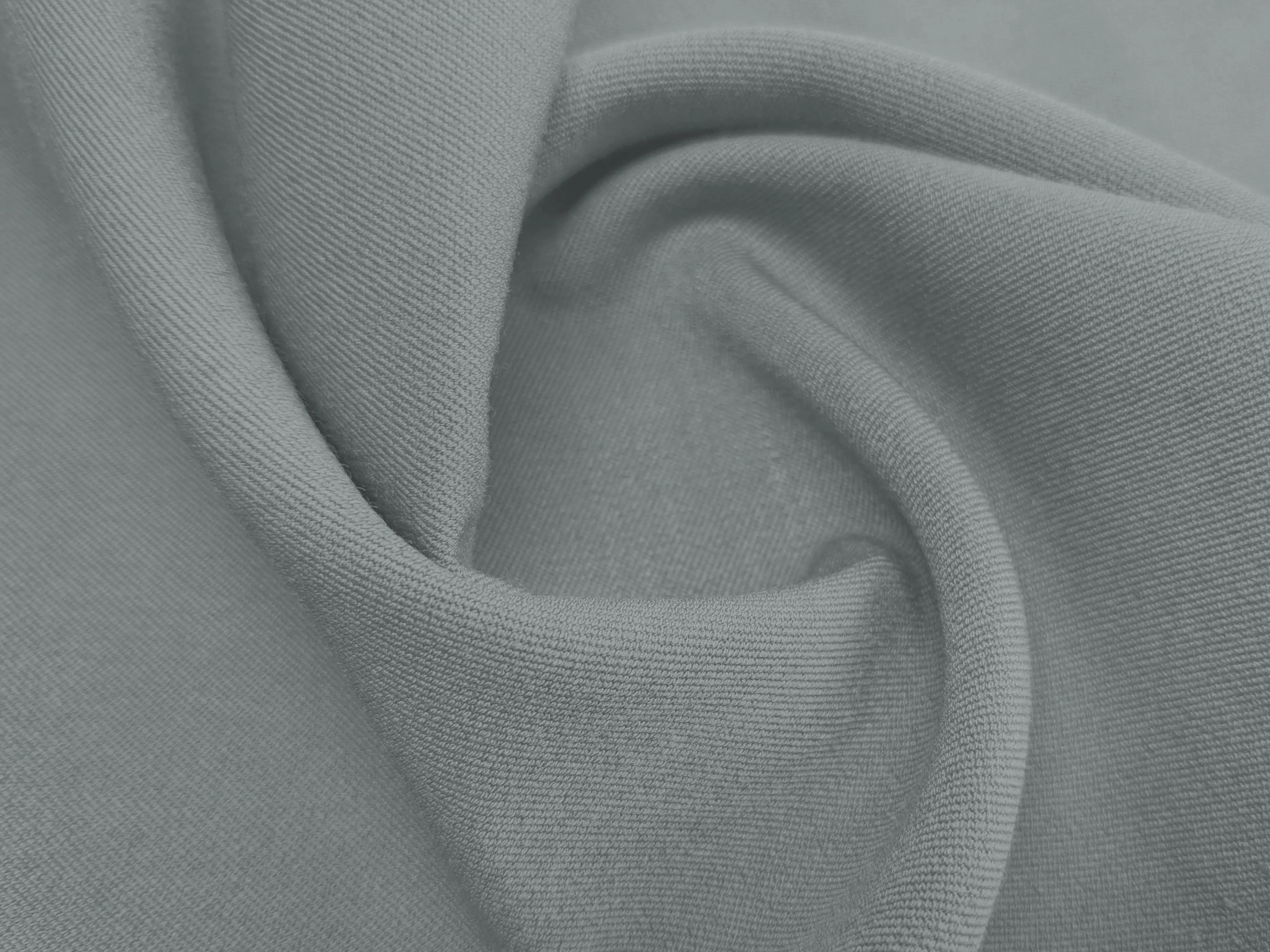 Тіар Дорі - сумішева костюмна тканина, що поєднує в собі натуральні та синтетичні волокна. На дотик матеріал м'який, комфортний, з помірною еластичністю, злегка мнеться, добре драпірується, лягаючи в м'які складки. Текстура: гладка поверхня з ледь помітним діагональним рубчиком і легким оксамитовим ефектом.