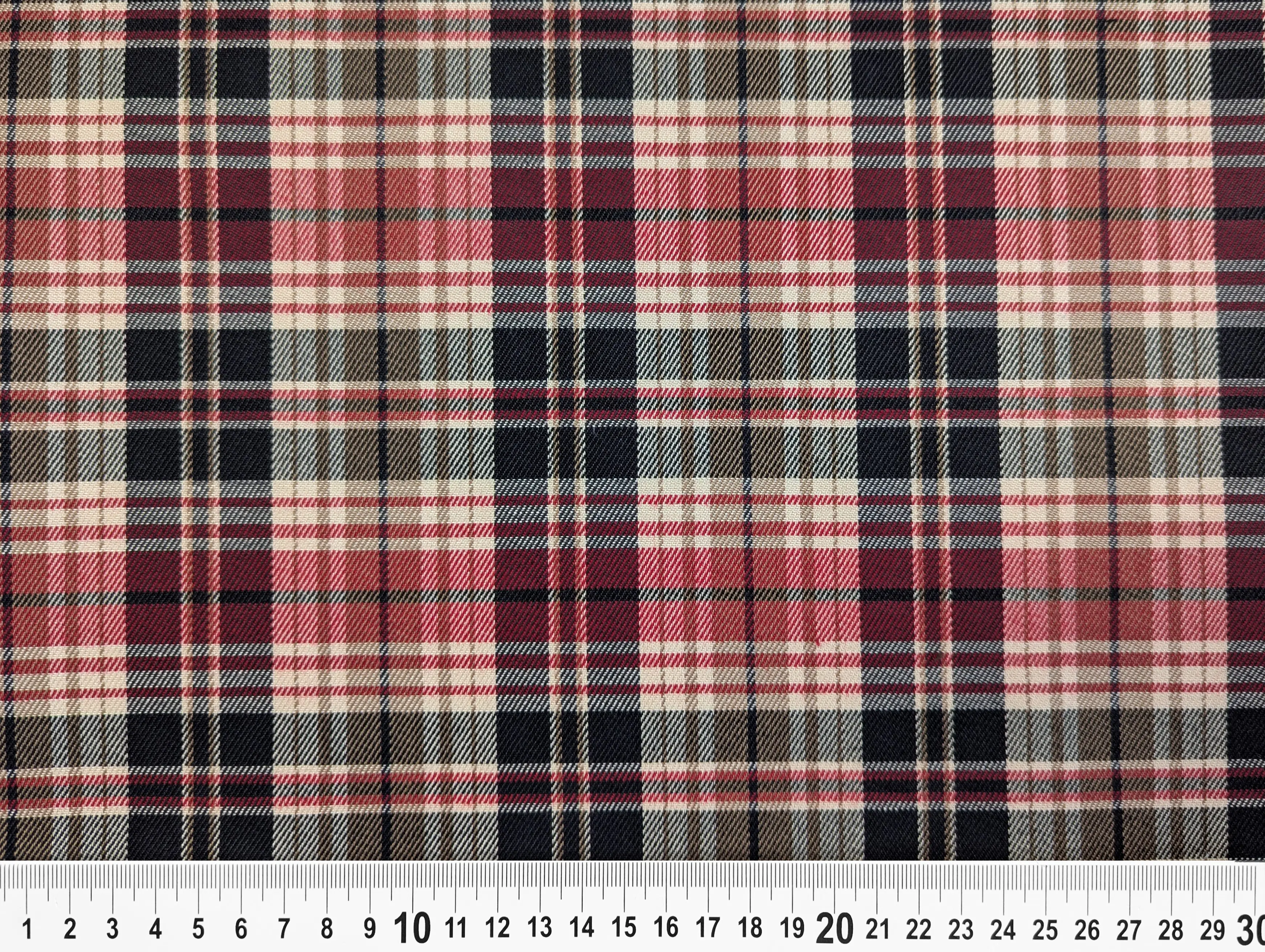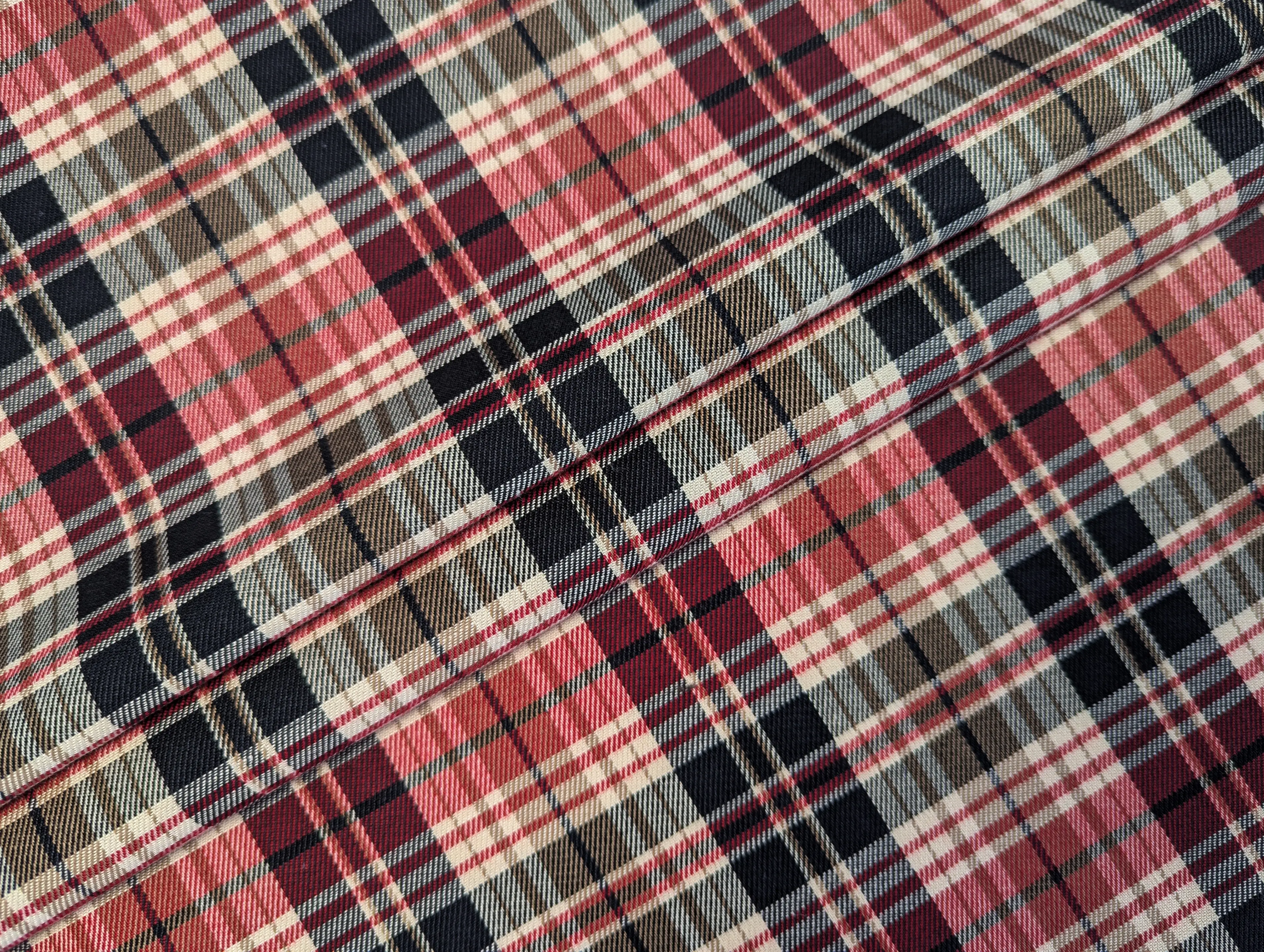 Клітина Шотландія – костюмна тканина середньої щільності. На дотик м'яка, має трохи шорстку фактуру і дрібний діагональний рубчик. У складі матеріалу присутні натуральні та синтетичні волокна. Костюмний тіар має легку еластичність по ширині полотна, не мнеться, добре драпірується.